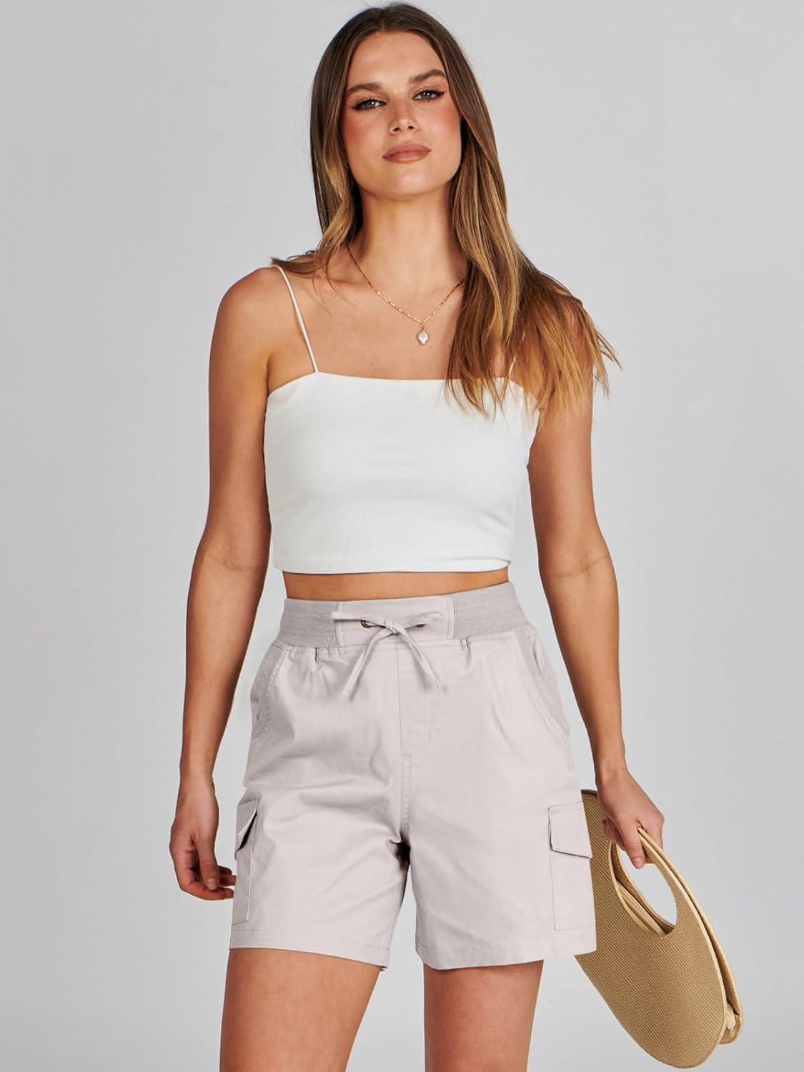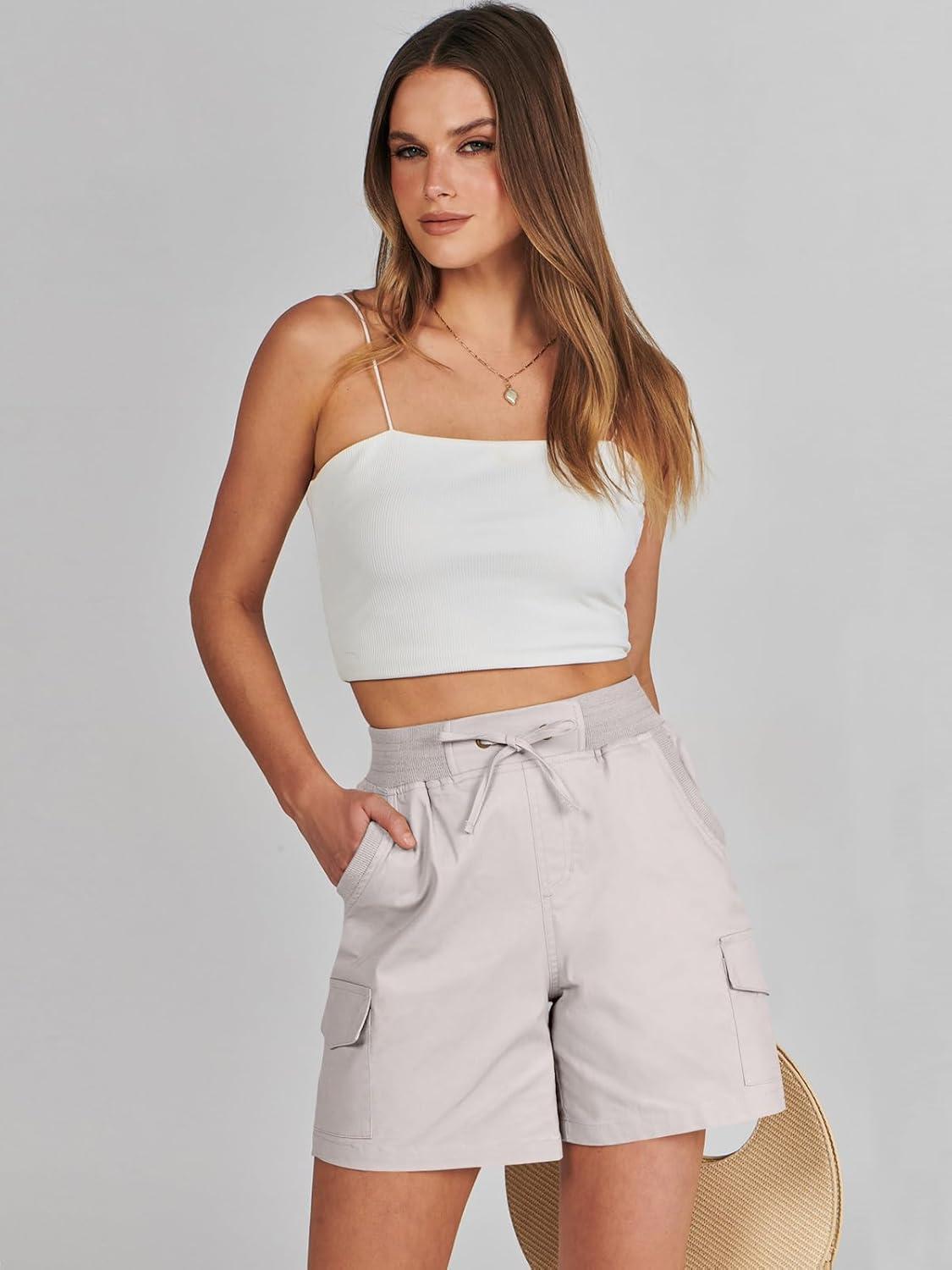 ANRABESS Womens Summer Shorts 2025 Dressy Casual Hiking Cargo Shorts Trendy Outdoor Outfits 6 Pockets(Beige)