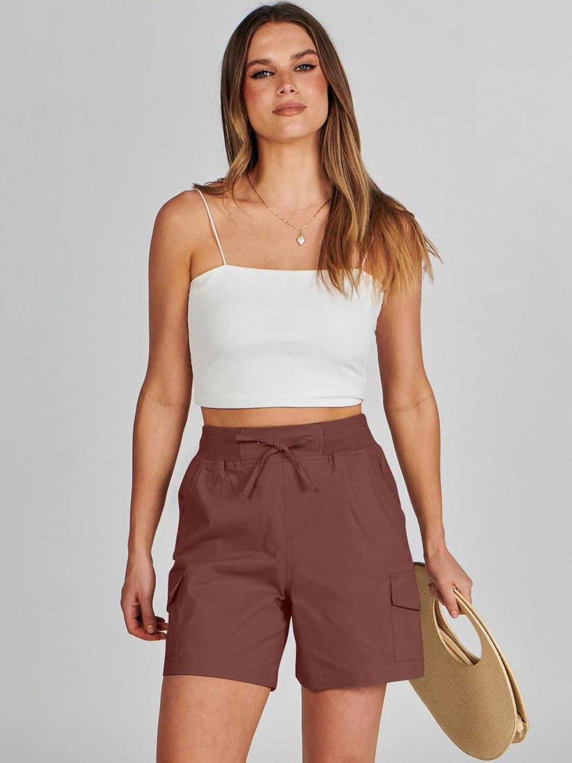 ANRABESS Womens Summer Shorts 2025 Dressy Casual Hiking Cargo Shorts Trendy Outdoor Outfits 6 Pockets(Brown Red)