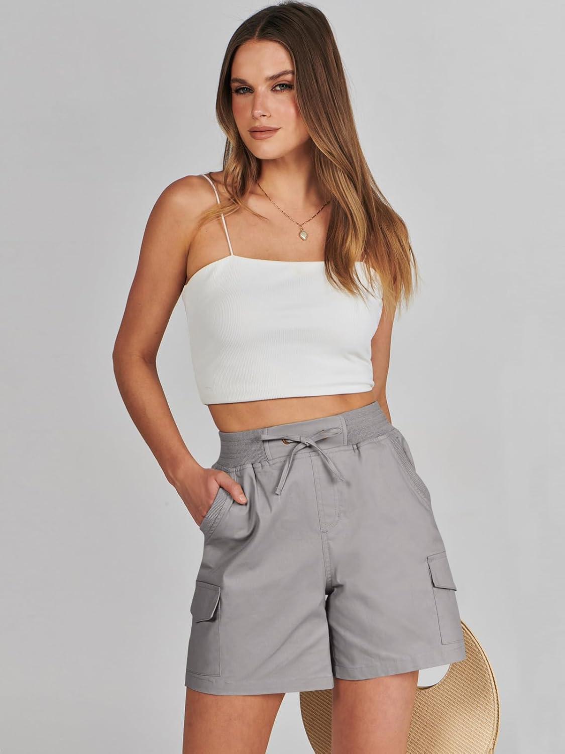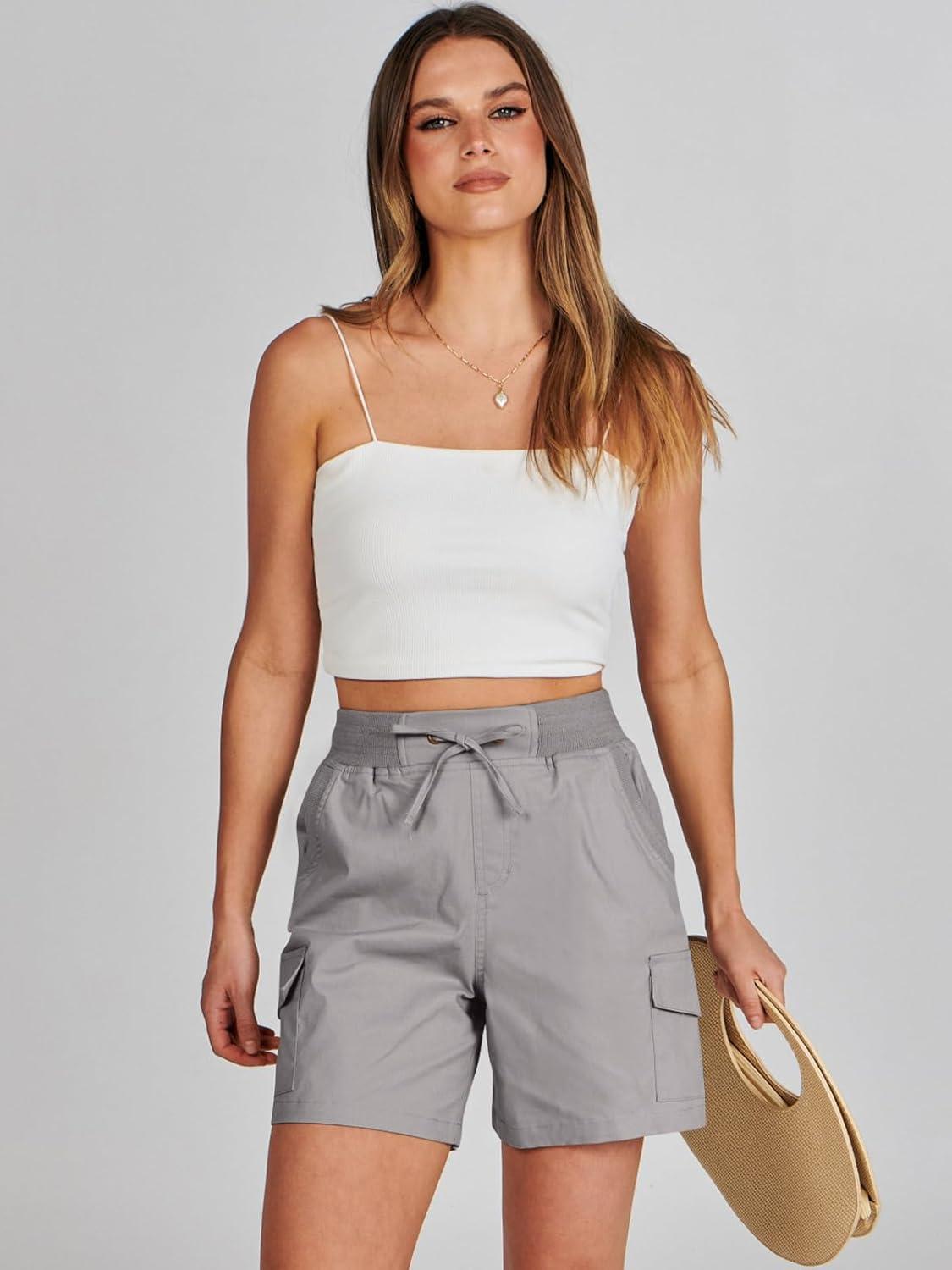 ANRABESS Womens Summer Shorts 2025 Dressy Casual Hiking Cargo Shorts Trendy Outdoor Outfits 6 Pockets(Gray)