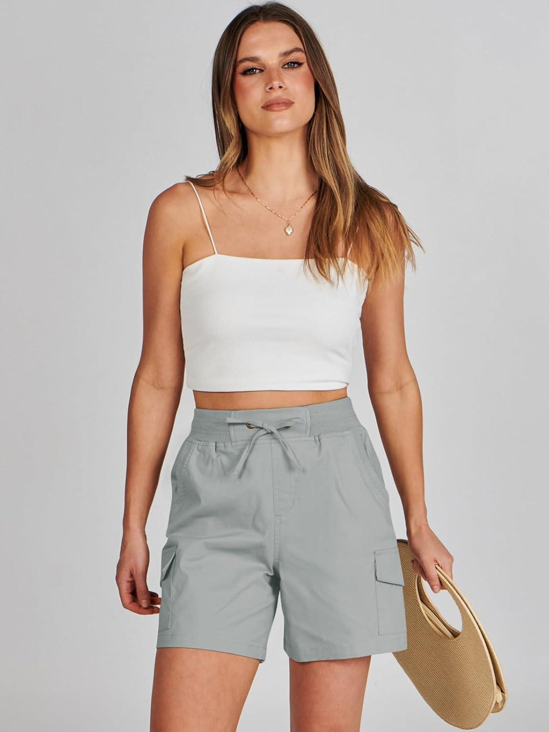 ANRABESS Womens Summer Shorts 2025 Dressy Casual Hiking Cargo Shorts Trendy Outdoor Outfits 6 Pockets(Grey Blue)