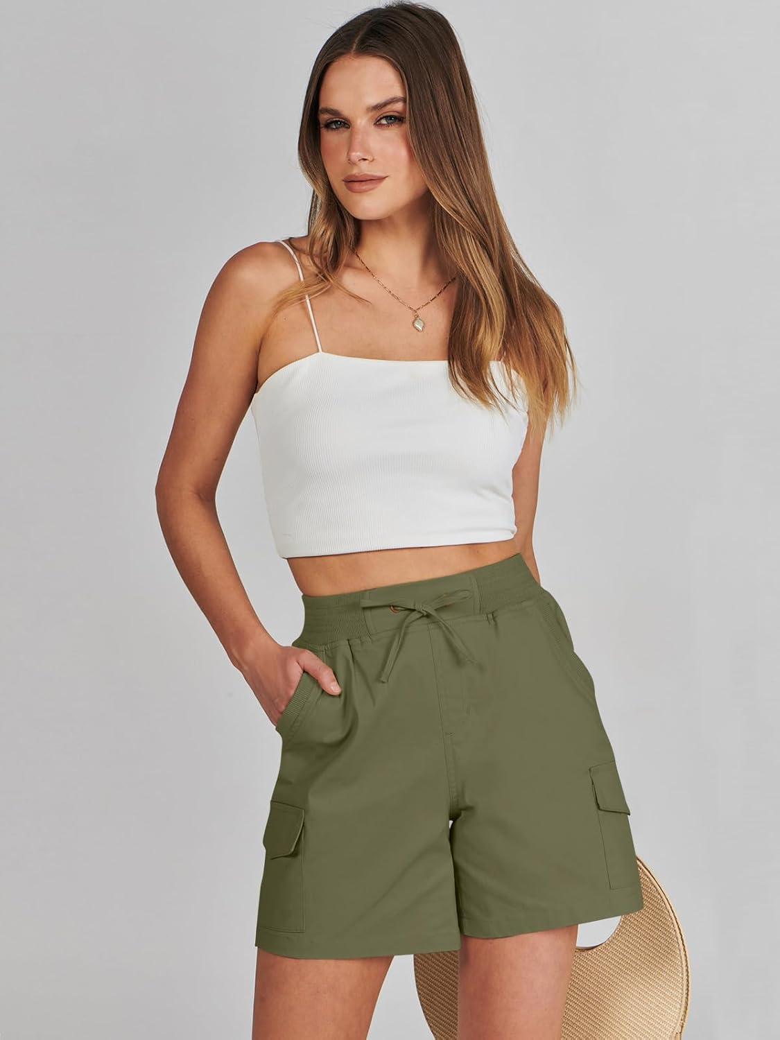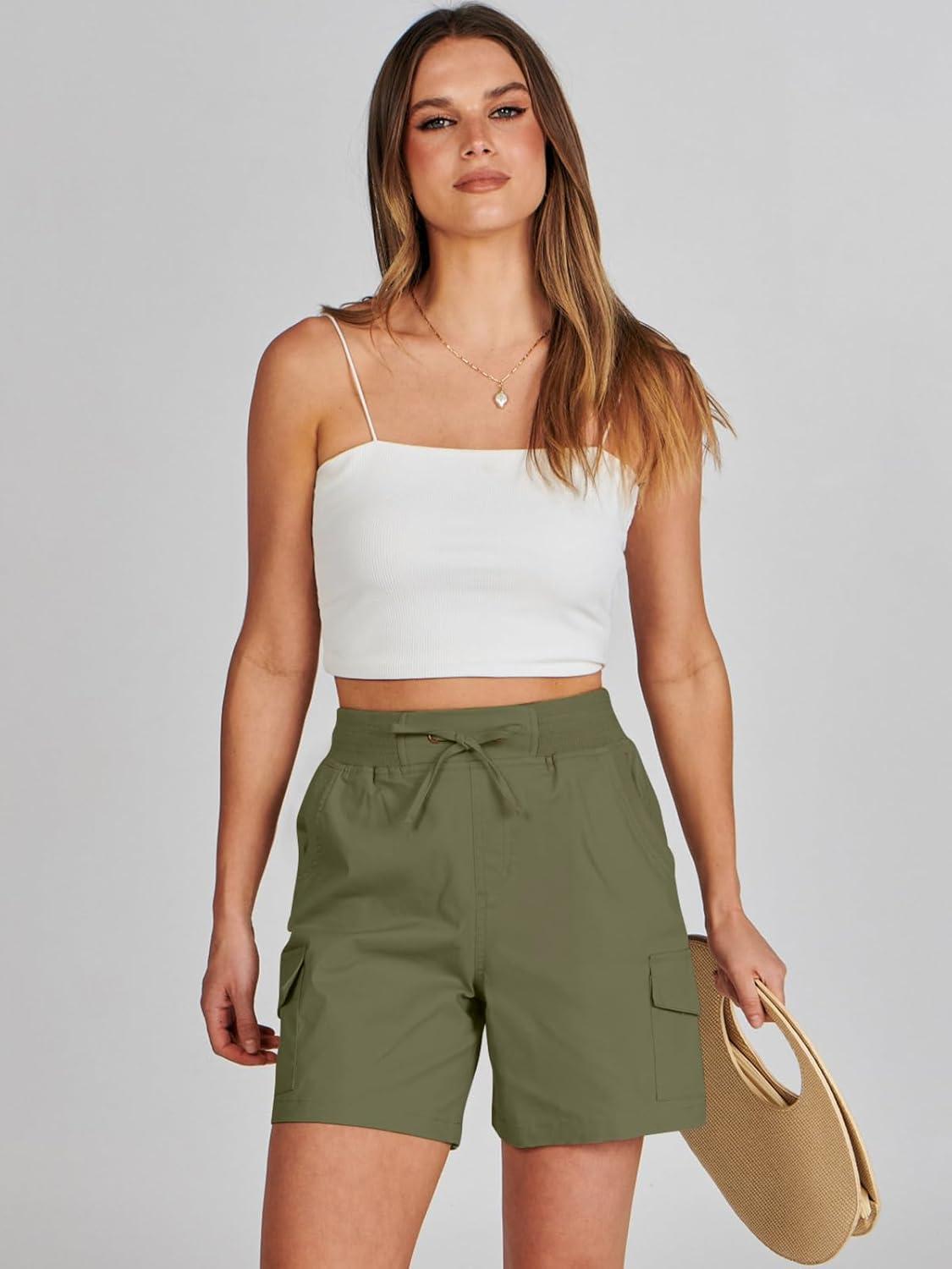 ANRABESS Womens Summer Shorts 2025 Dressy Casual Hiking Cargo Shorts Trendy Outdoor Outfits 6 Pockets(Olive)