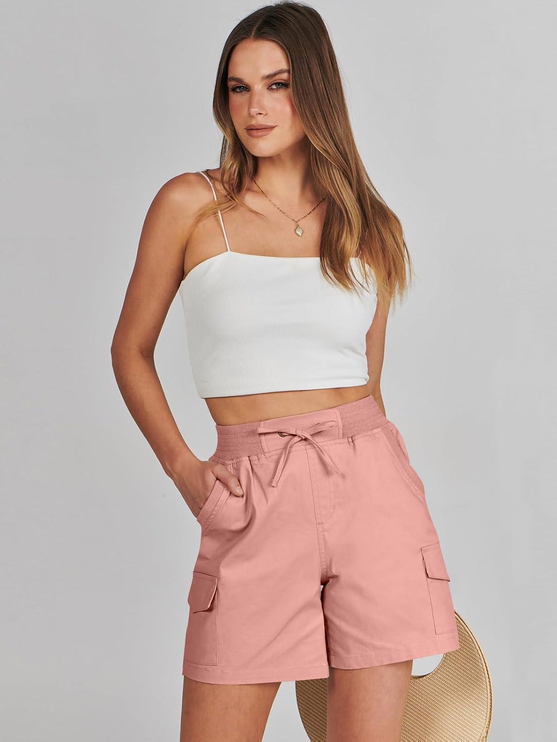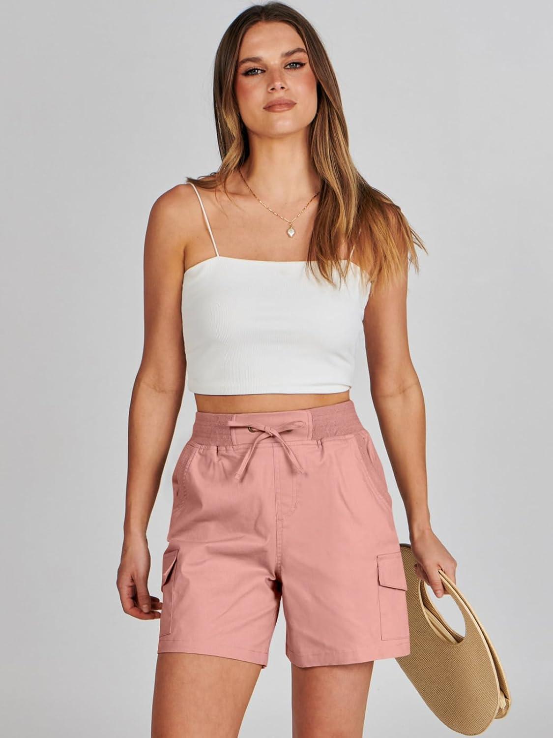 ANRABESS Womens Summer Shorts 2025 Dressy Casual Hiking Cargo Shorts Trendy Outdoor Outfits 6 Pockets(Pink)