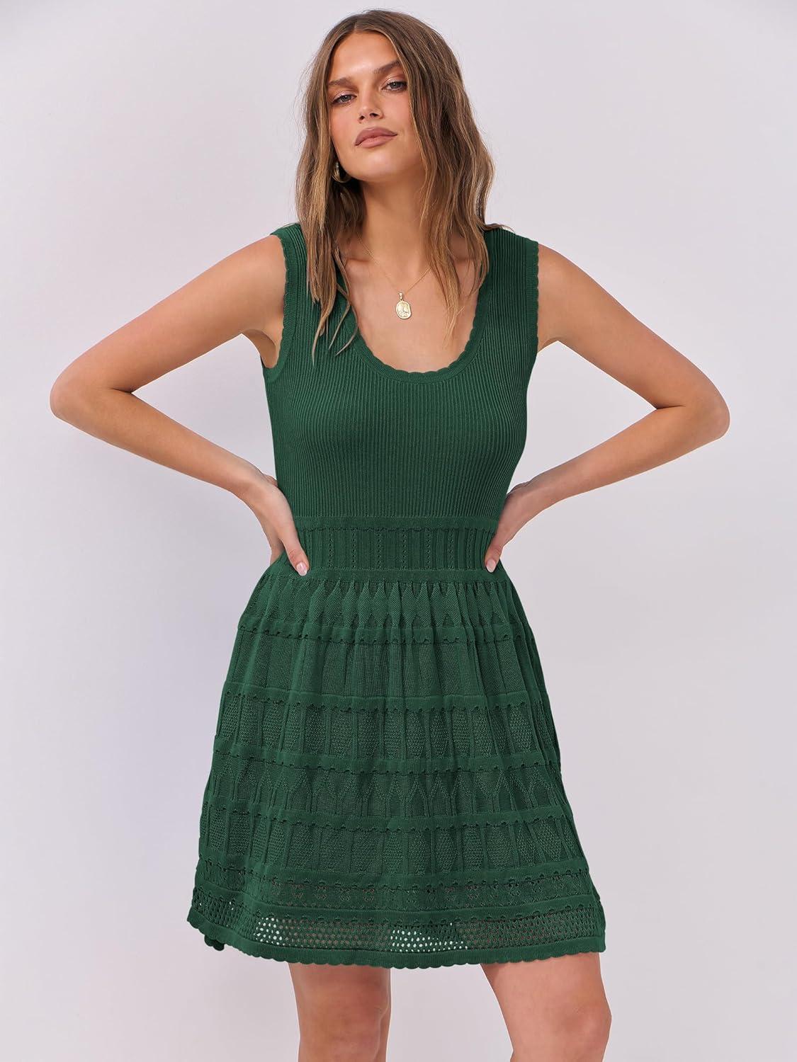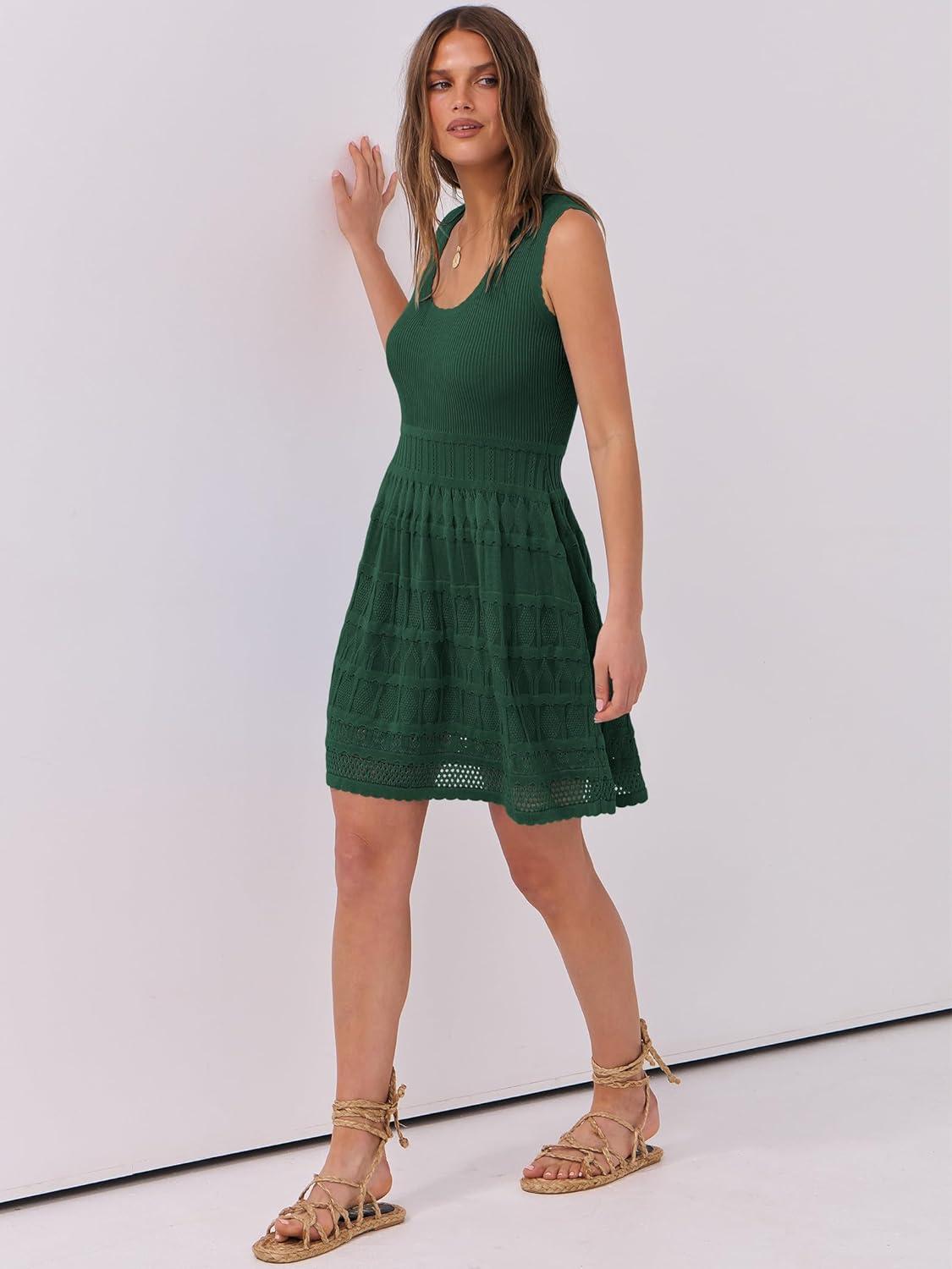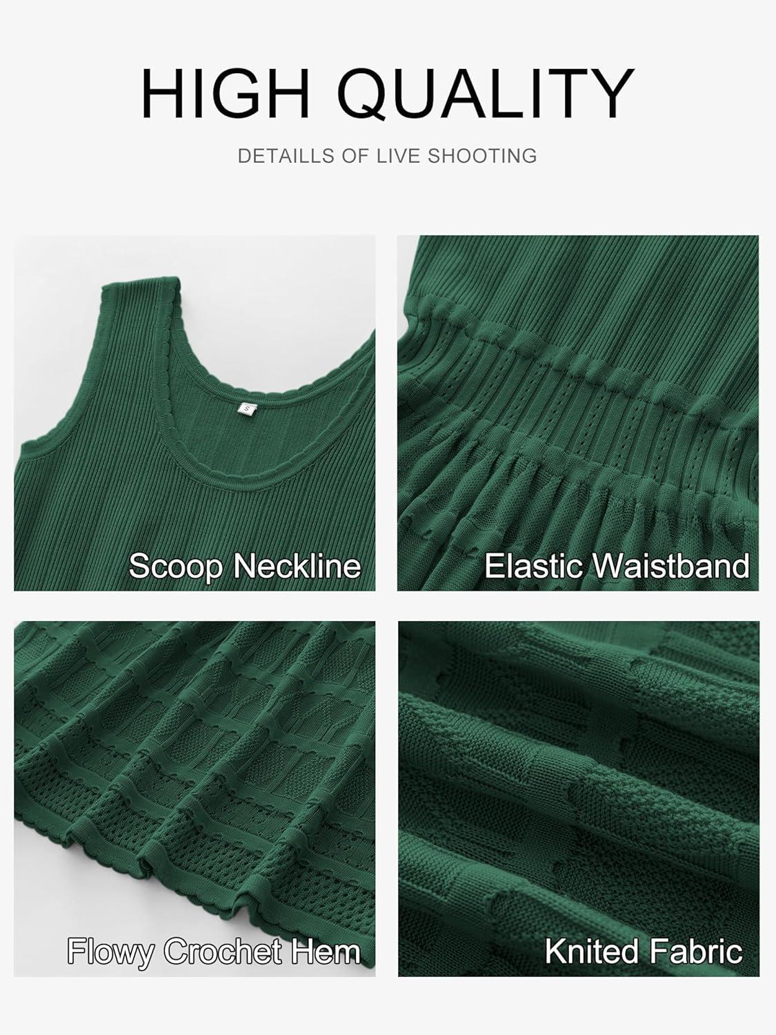 ANRABESS Womens Sundress Beach Vacation Mini Tank Dresses Summer Casual Crochet Knit Scoop Neck Sleeveless Dress(Dark Green)