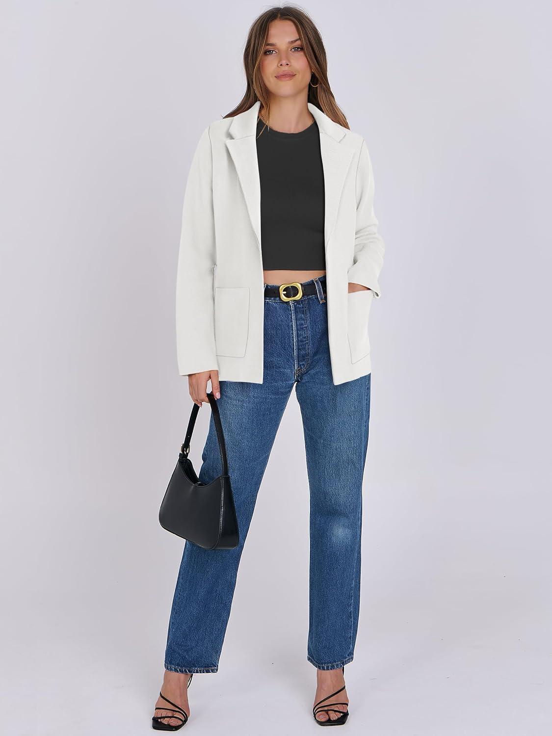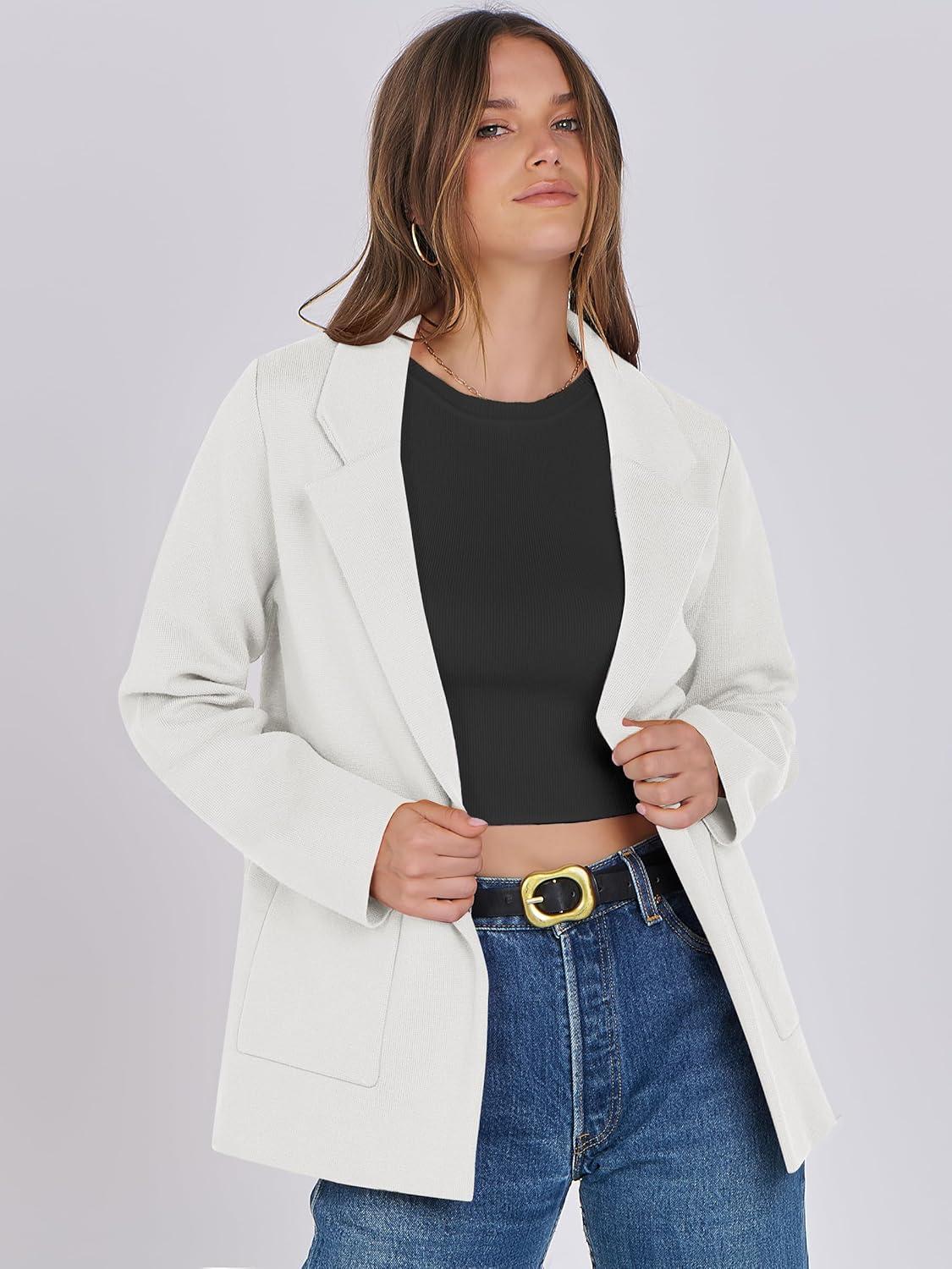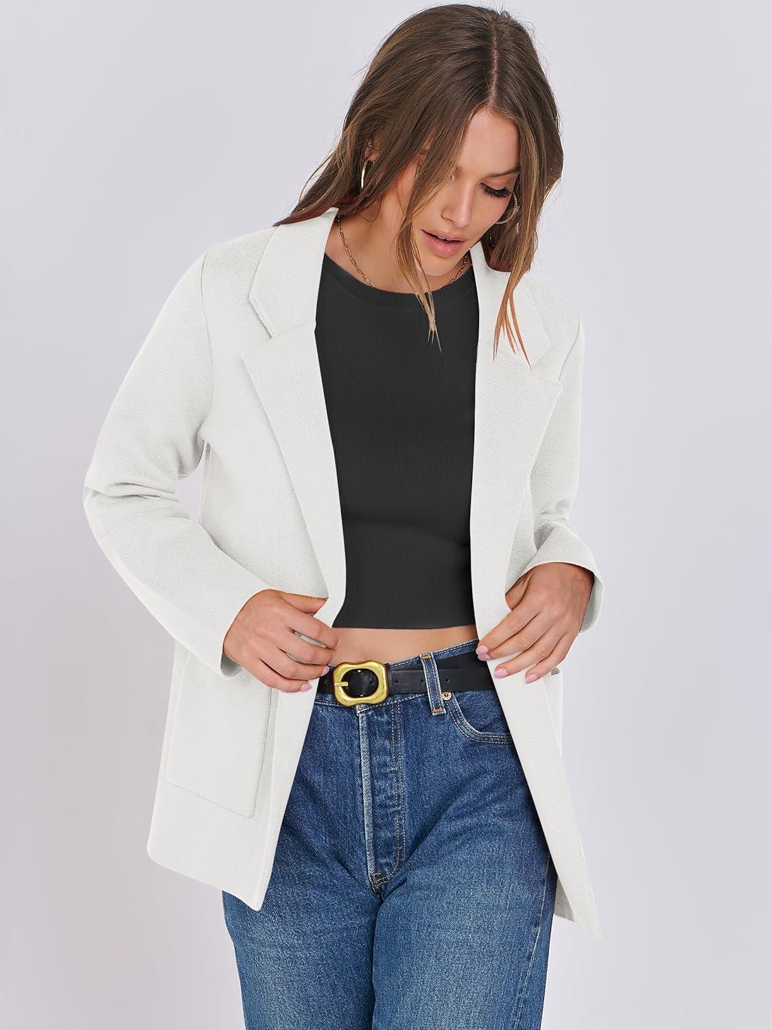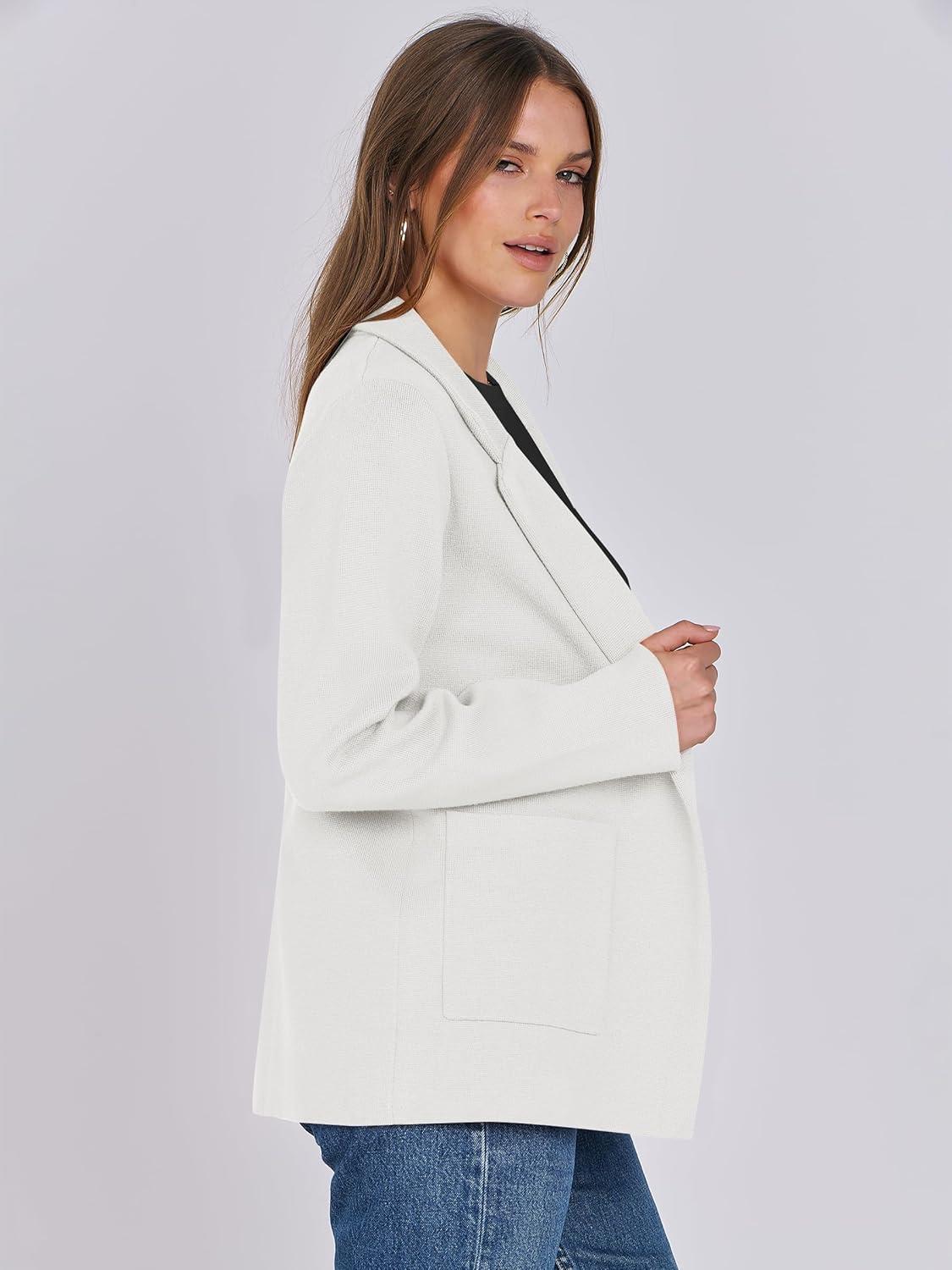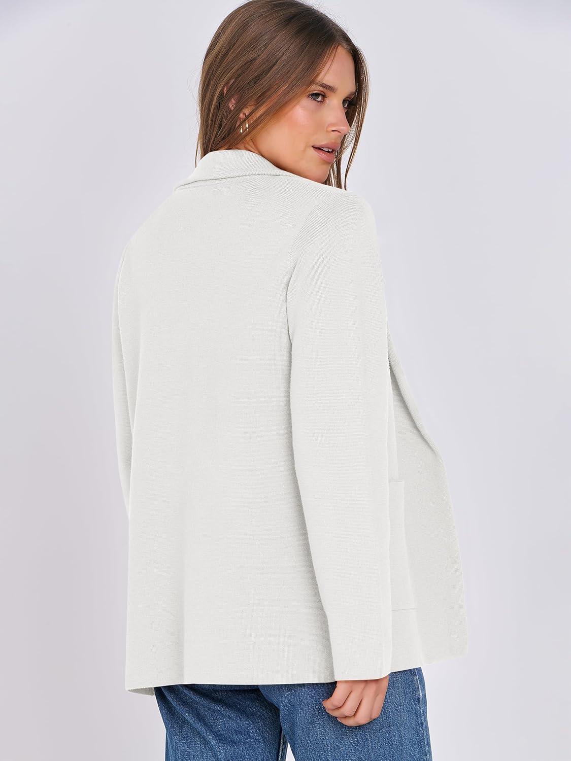 ANRABESS Womens Sweater Blazer 2025 Fall Cardigan Chunky Knit Jacket Coats(White)