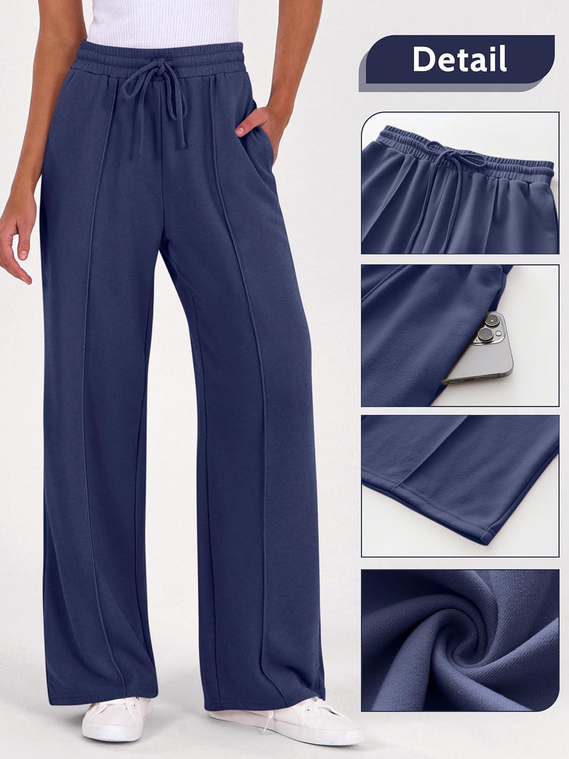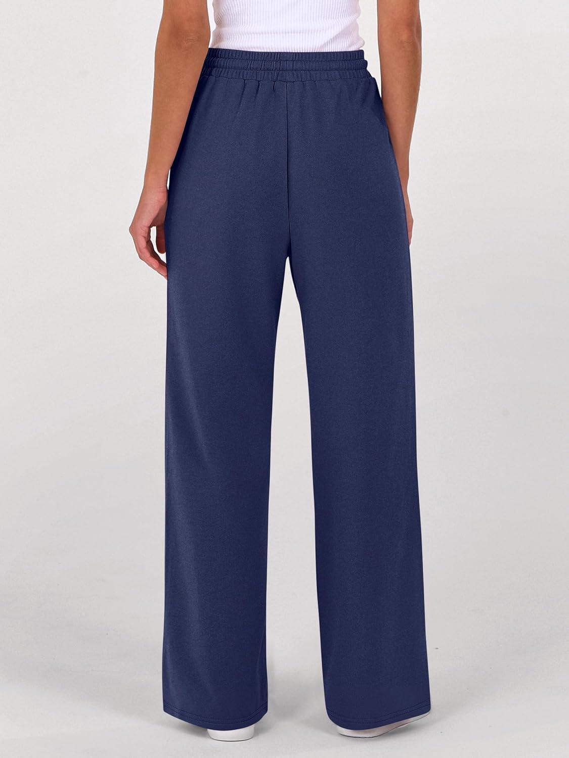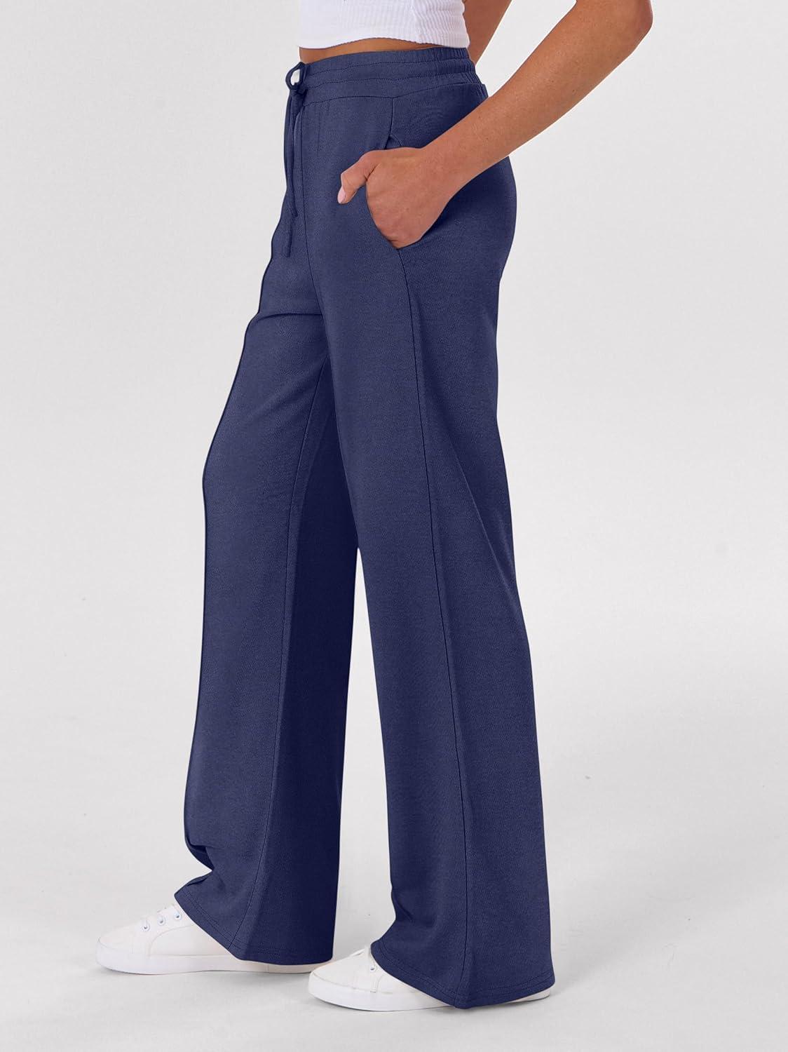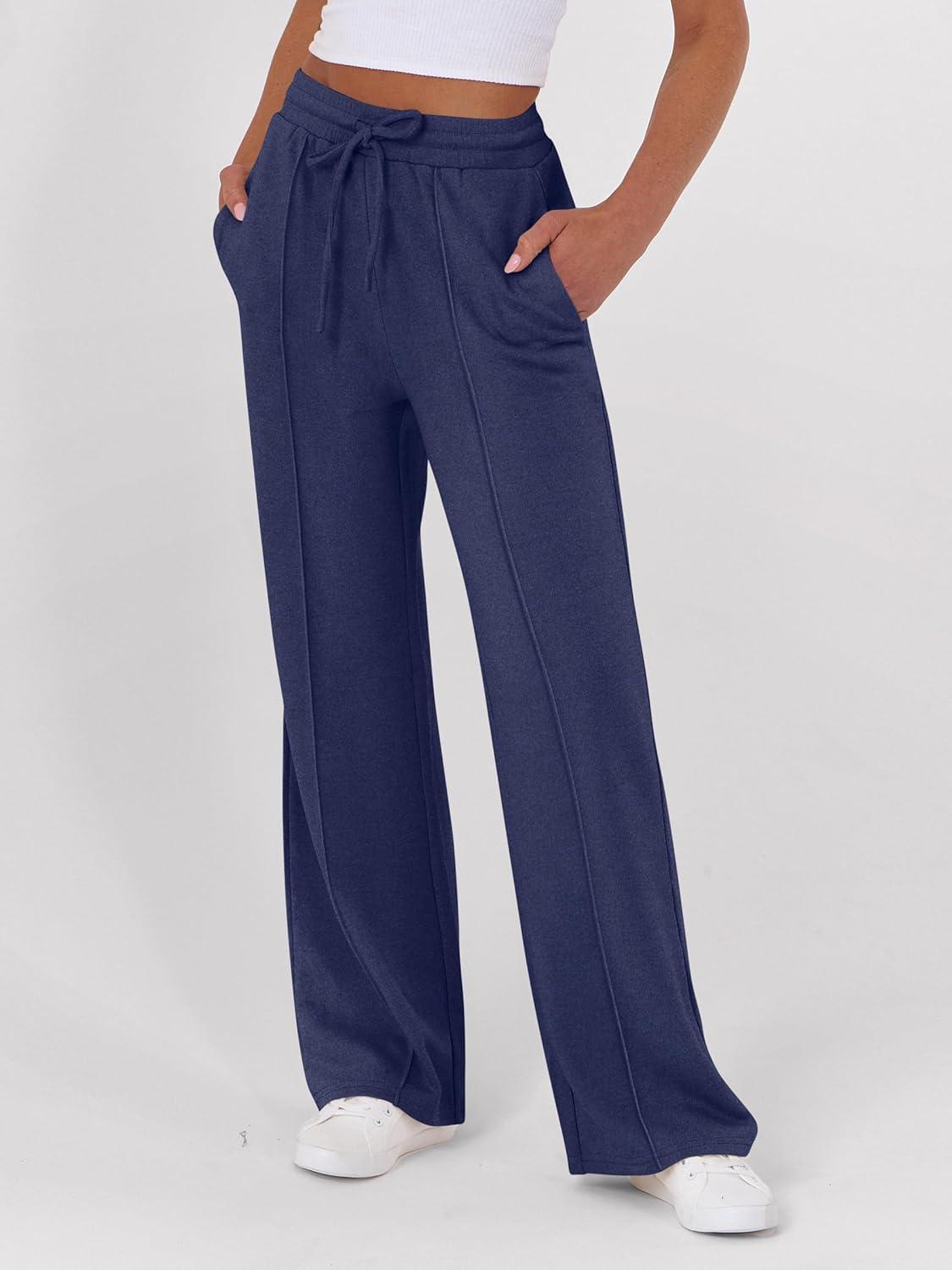 ANRABESS Womens Sweatpants Wide Leg Casual Loose Baggy Lounge Travel Pants 2025 Fall Drawstring Joggers with Pockets(Navy Blue)