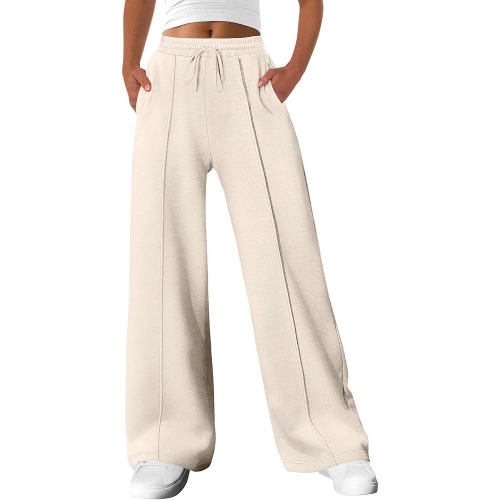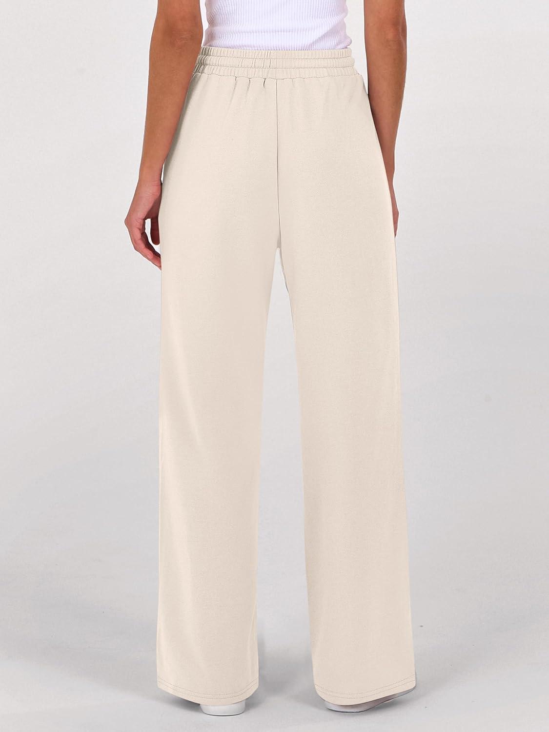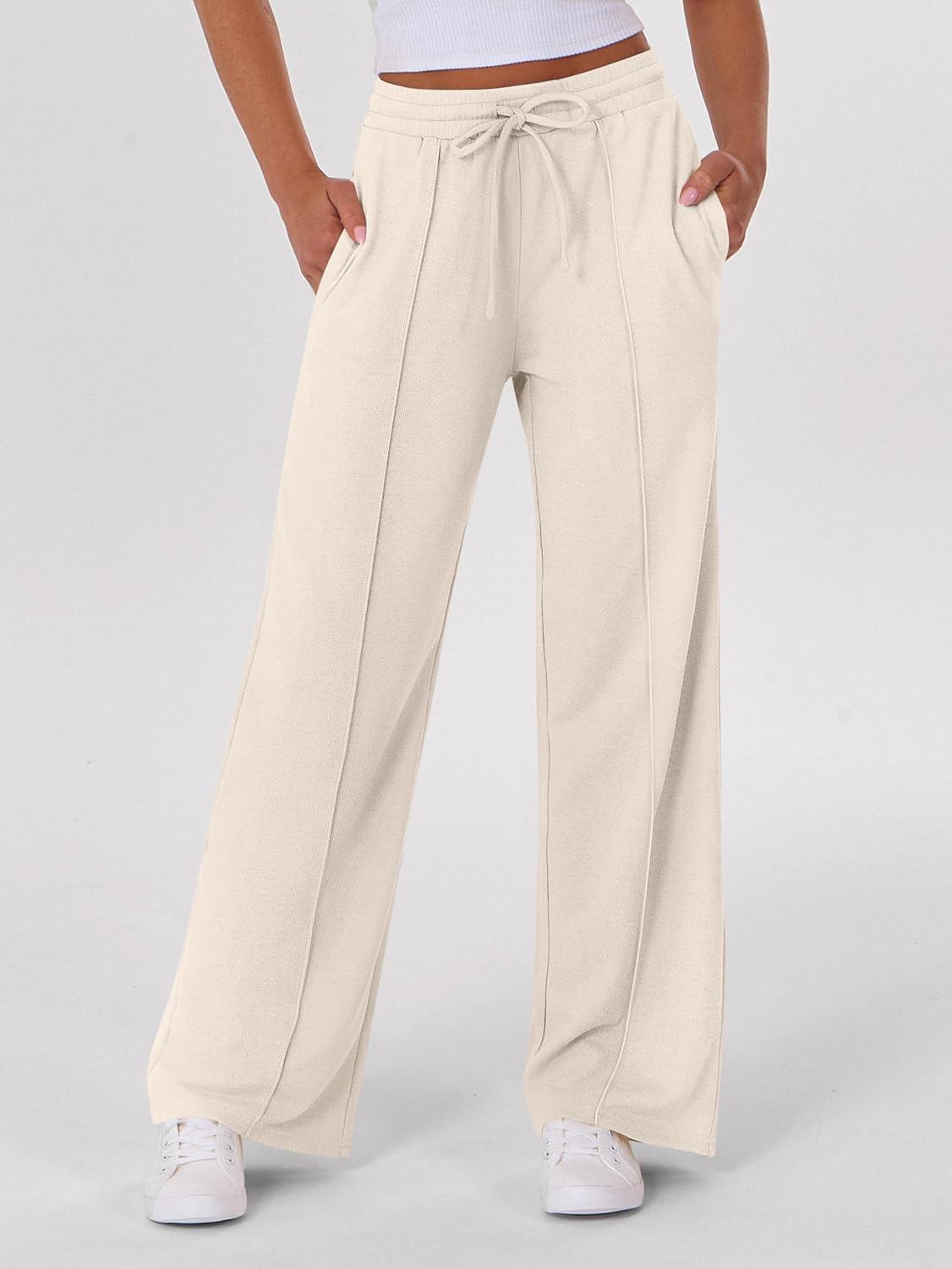 ANRABESS Womens Sweatpants Wide Leg Casual Loose Baggy Lounge Travel Pants 2025 Fall Drawstring Joggers with Pockets(Parchment)