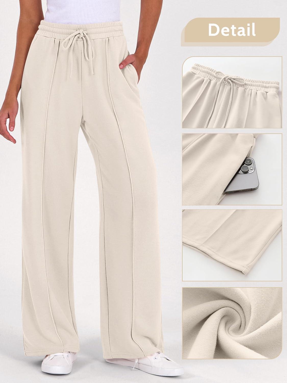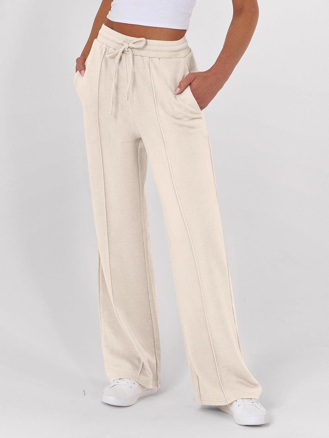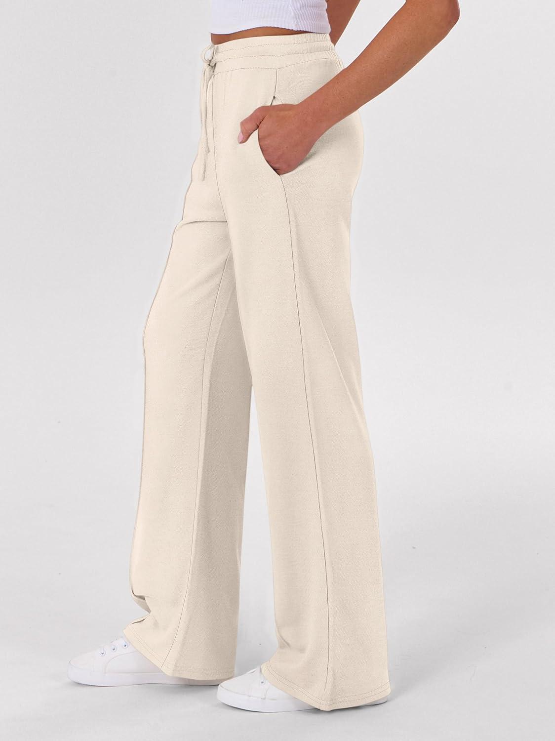ANRABESS Womens Sweatpants Wide Leg Casual Loose Baggy Lounge Travel Pants 2025 Fall Drawstring Joggers with Pockets(Parchment)