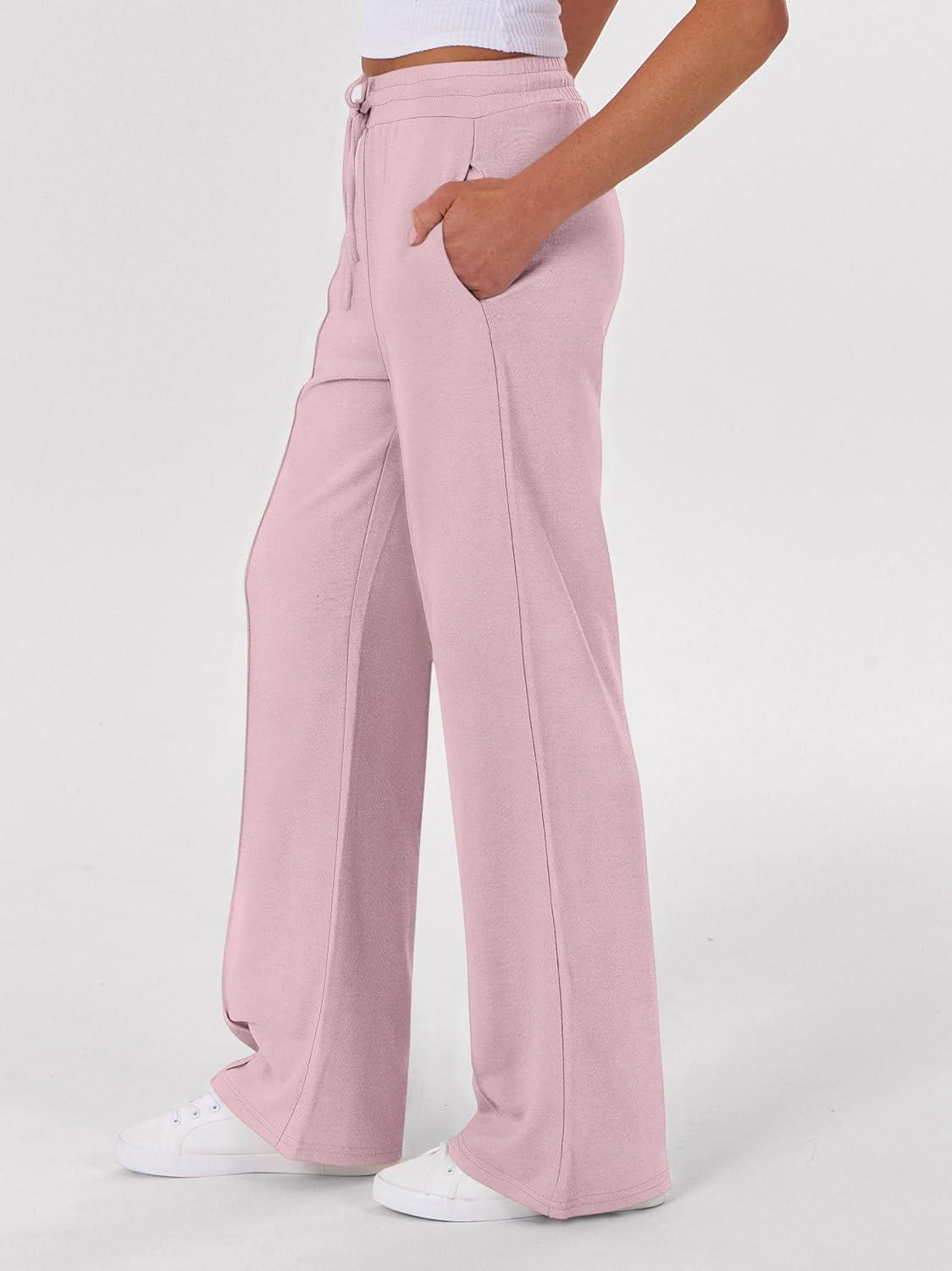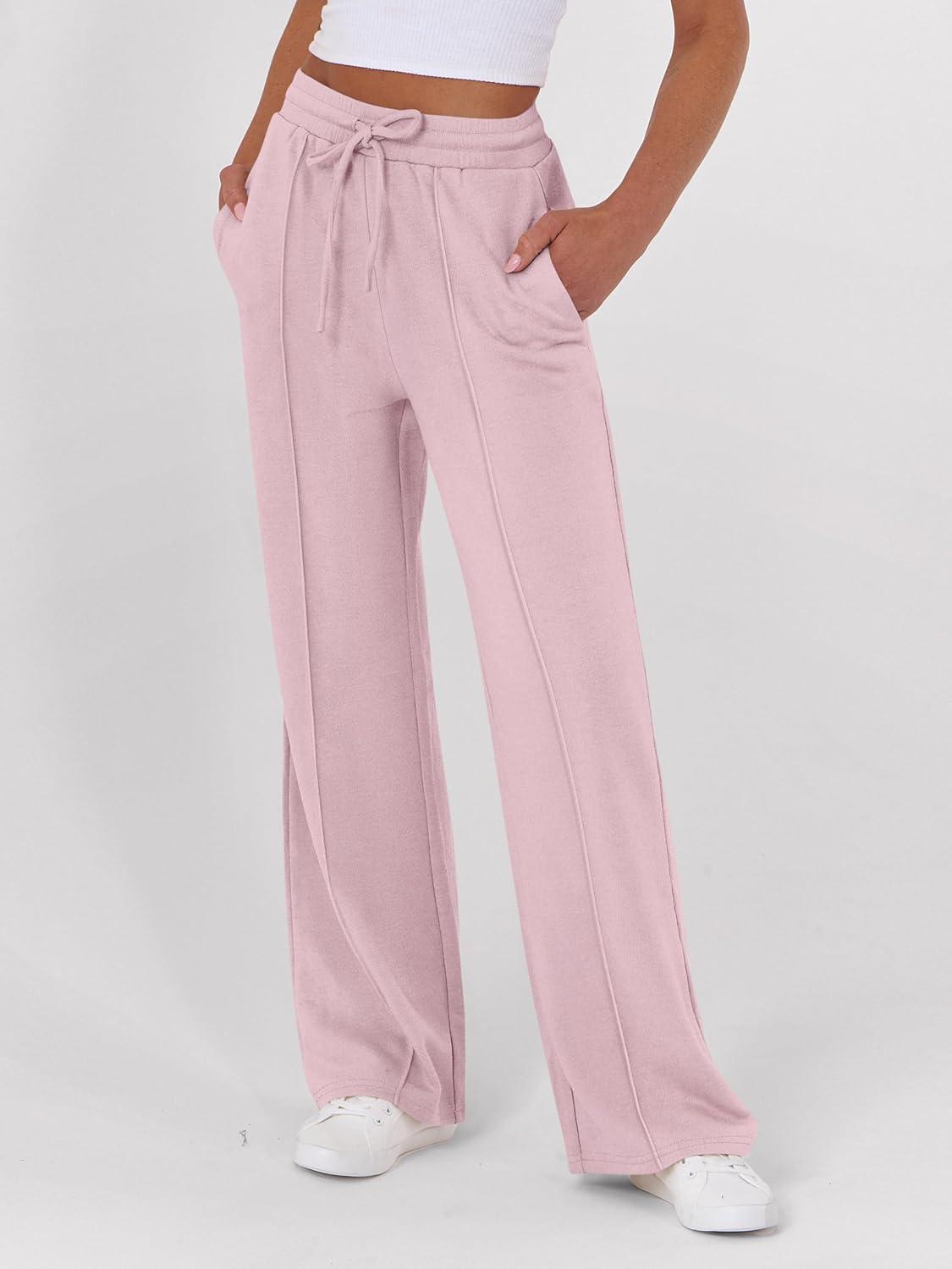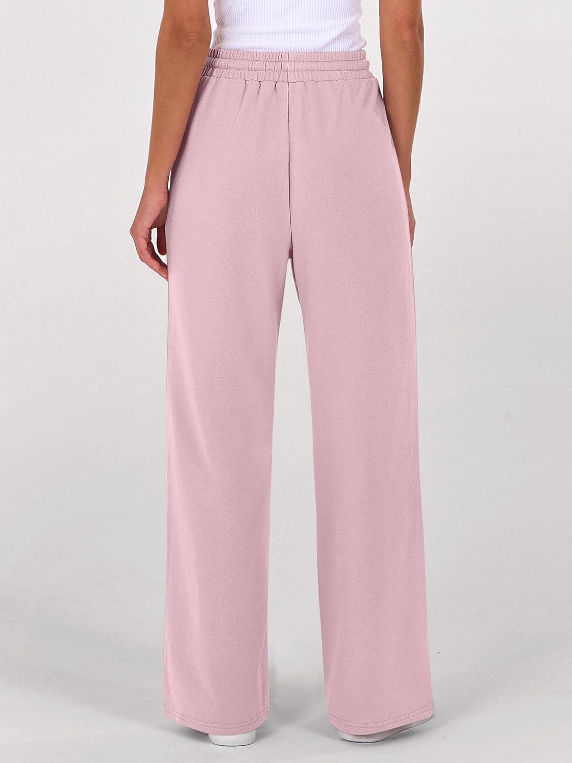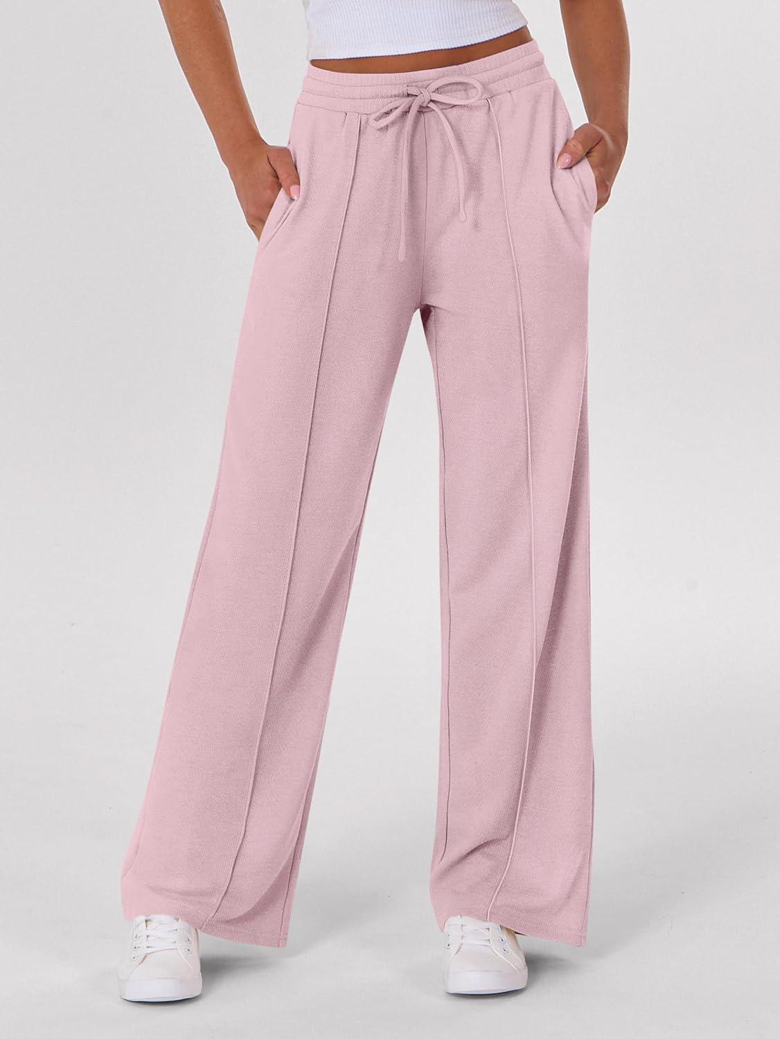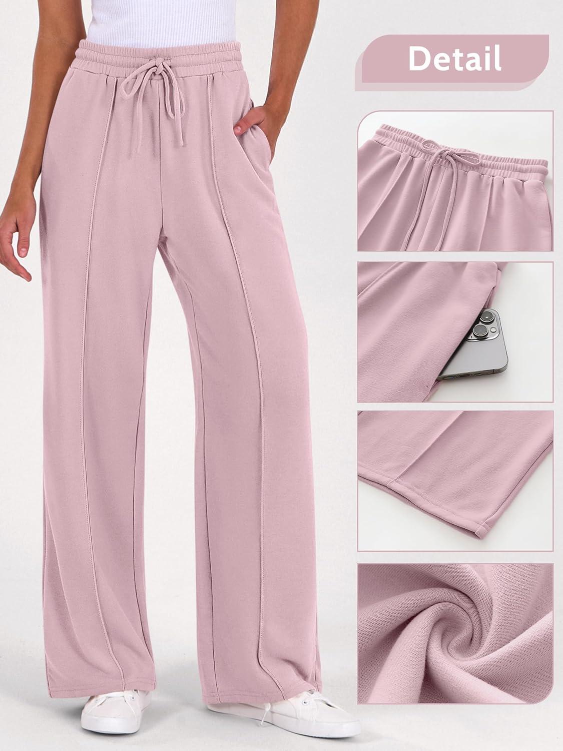 ANRABESS Womens Sweatpants Wide Leg Casual Loose Baggy Lounge Travel Pants 2025 Fall Drawstring Joggers with Pockets(Pink)