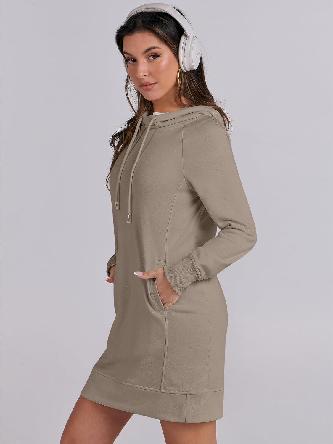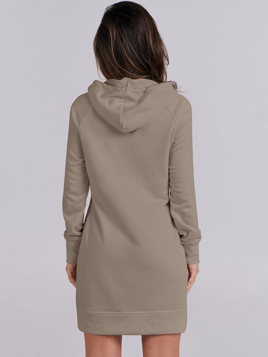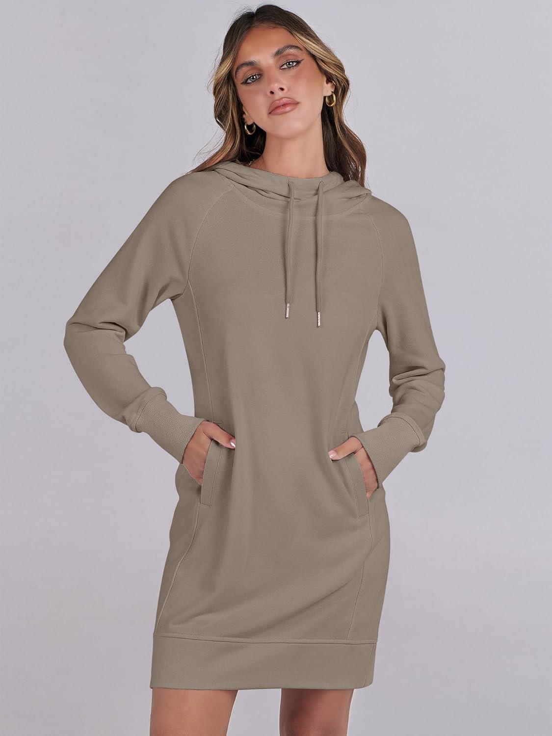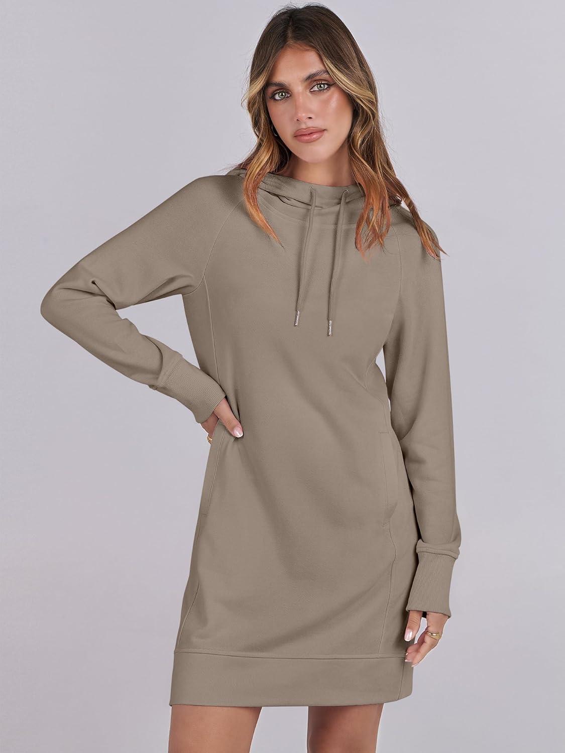 ANRABESS Womens Sweatshirt Dress Long Sleeve Hoodies Mini Dresses Fleece Casual Hoodie with Pockets 2025 Fall Fashion(Beige)