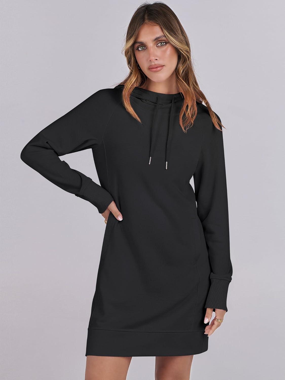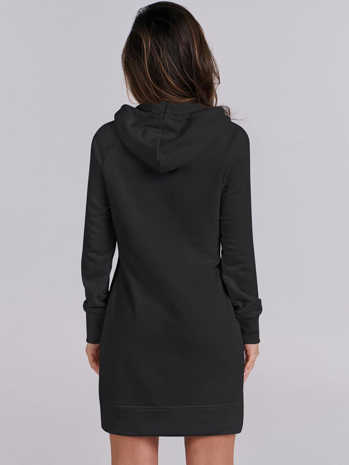 ANRABESS Womens Sweatshirt Dress Long Sleeve Hoodies Mini Dresses Fleece Casual Hoodie with Pockets 2025 Fall Fashion(Black)