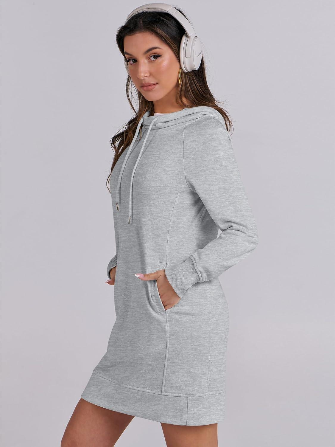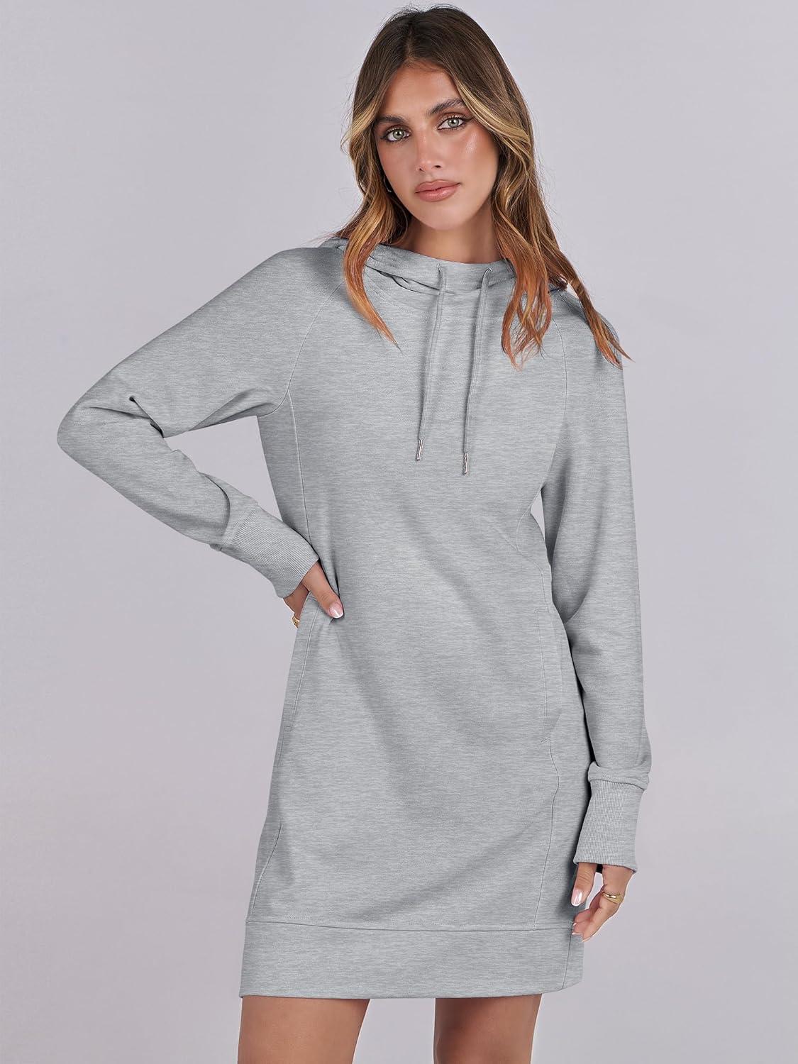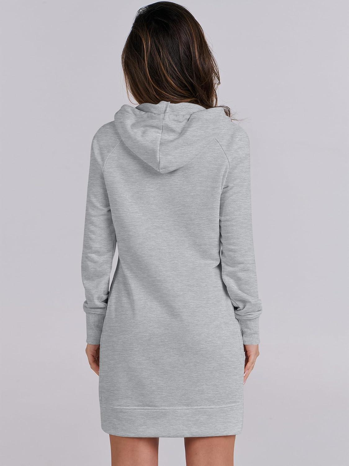 ANRABESS Womens Sweatshirt Dress Long Sleeve Hoodies Mini Dresses Fleece Casual Hoodie with Pockets 2025 Fall Fashion(Grey)