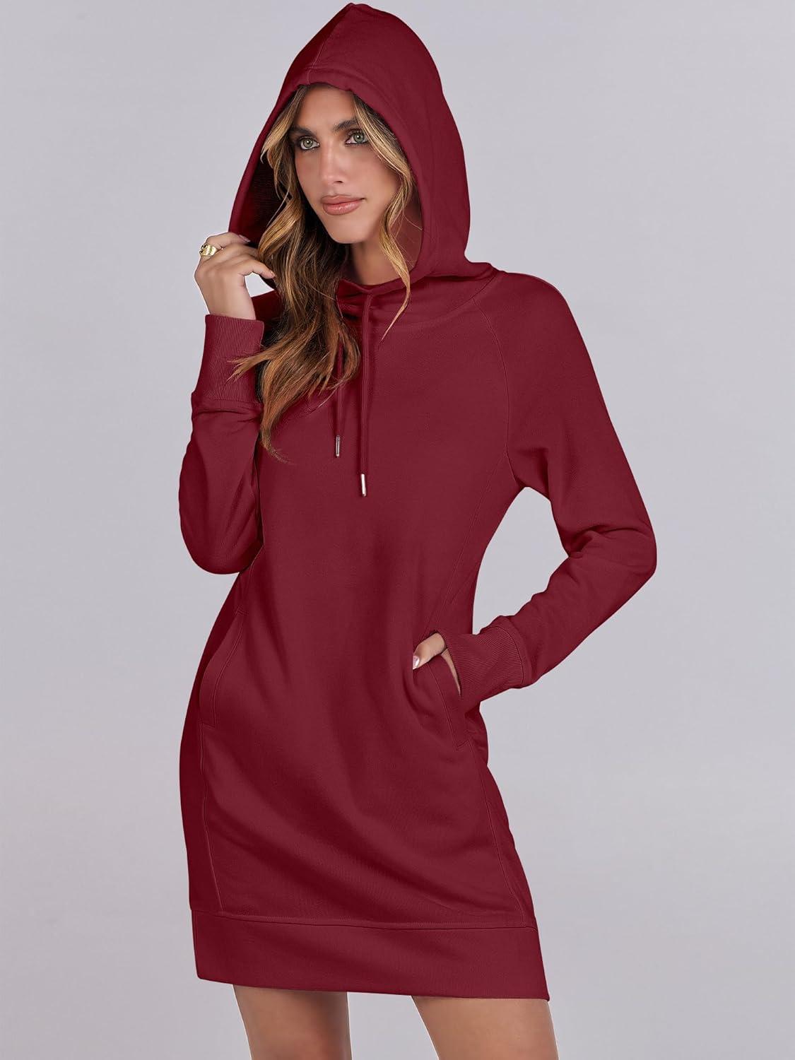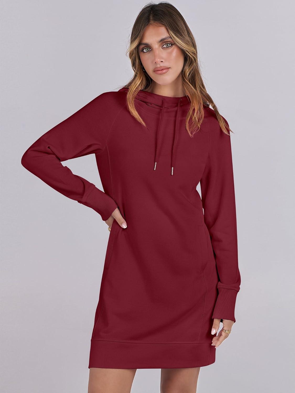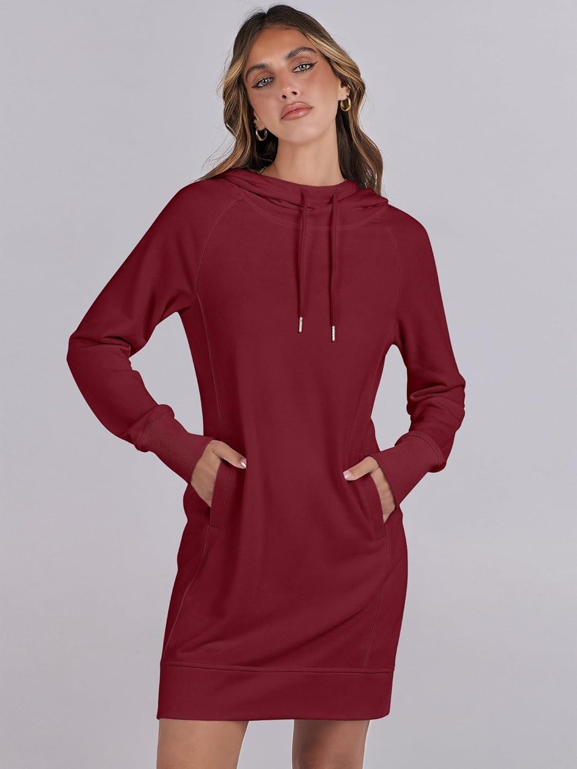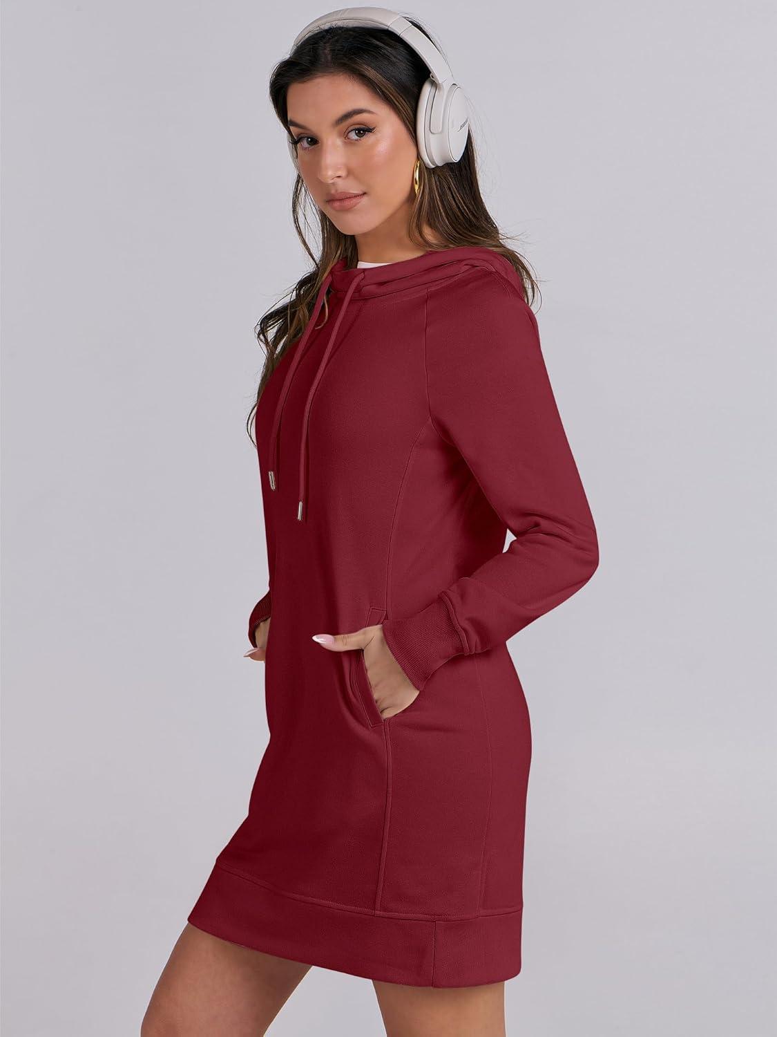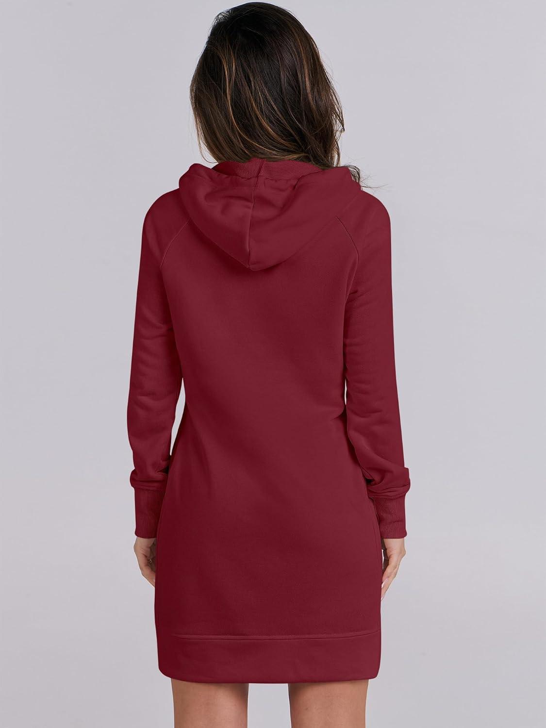 ANRABESS Womens Sweatshirt Dress Long Sleeve Hoodies Mini Dresses Fleece Casual Hoodie with Pockets 2025 Fall Fashion(Red)
