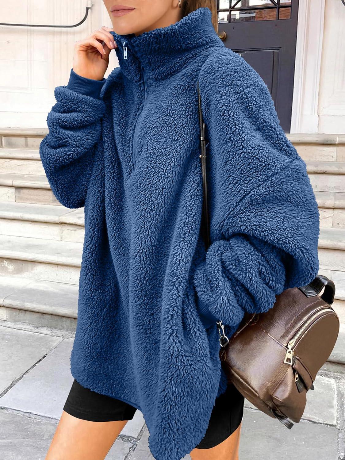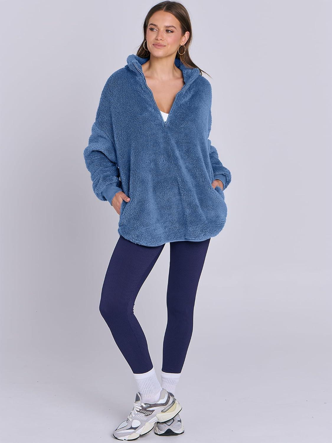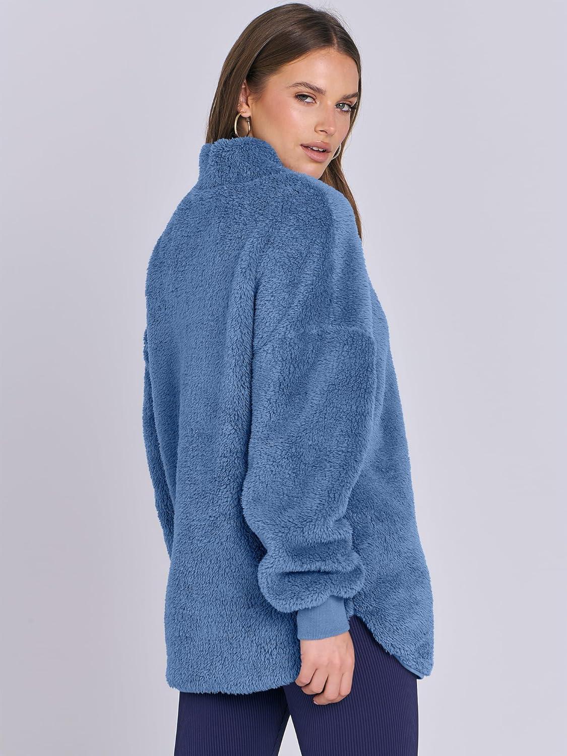 ANRABESS Women’s Sweatshirt Sherpa Fuzzy Fleece Zip Up Hoodies Cozy Pullover Soft Sweaters Tops 2025 Fall Trendy Clothes(Deep Blue)