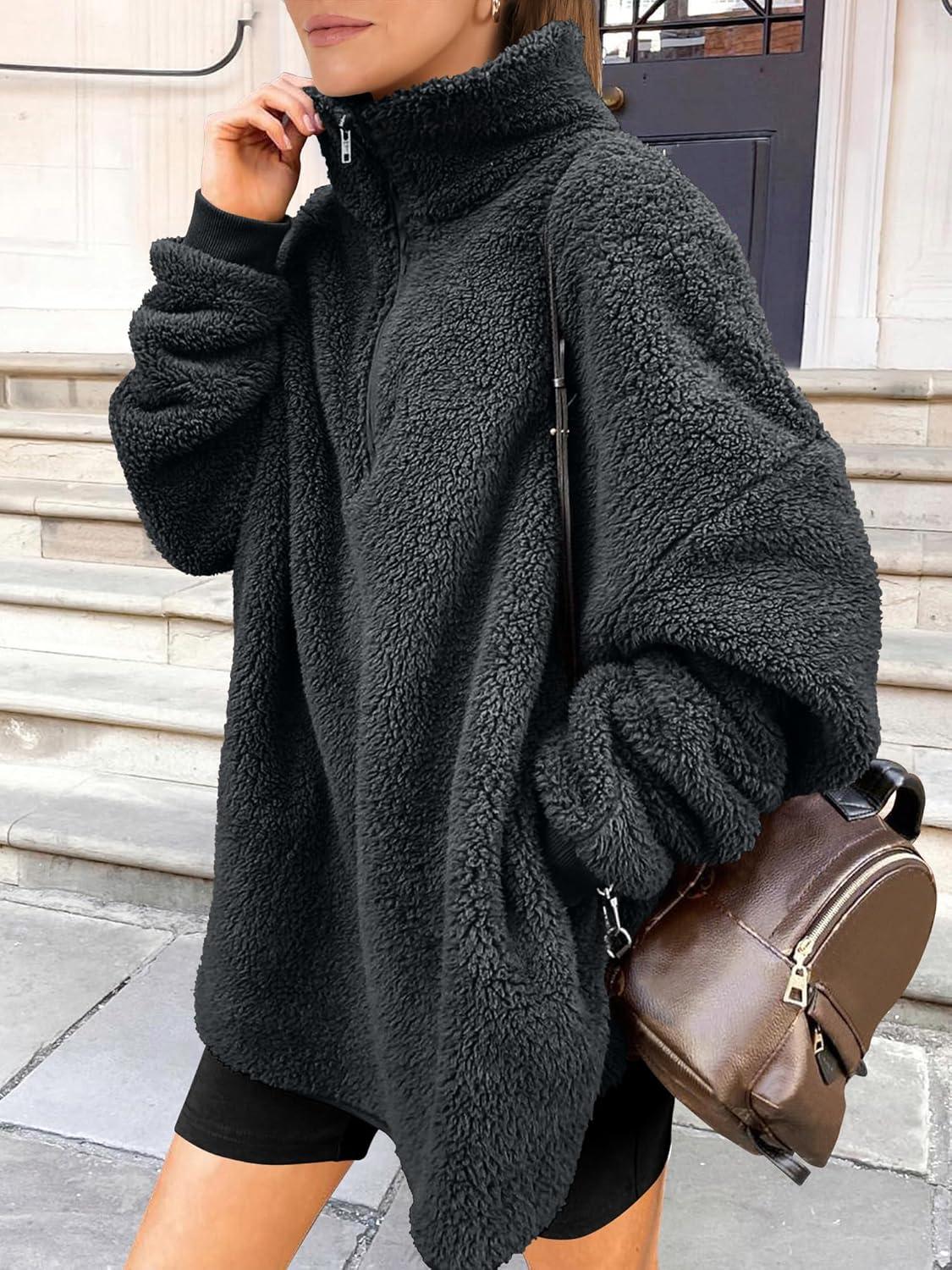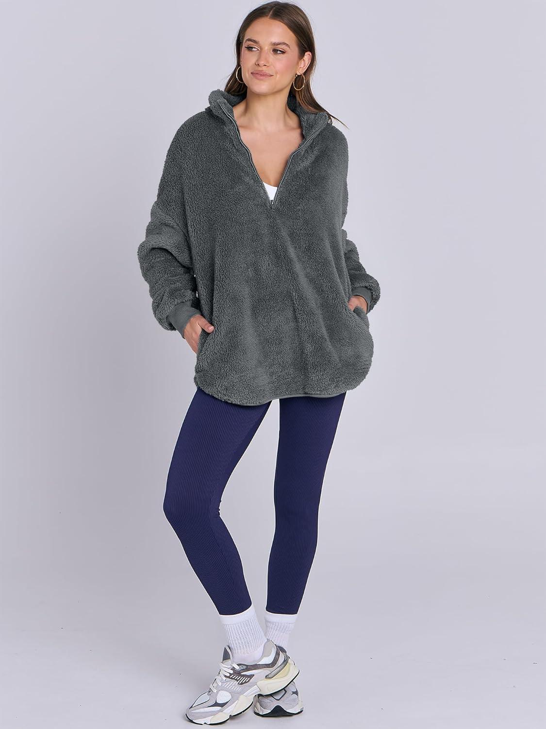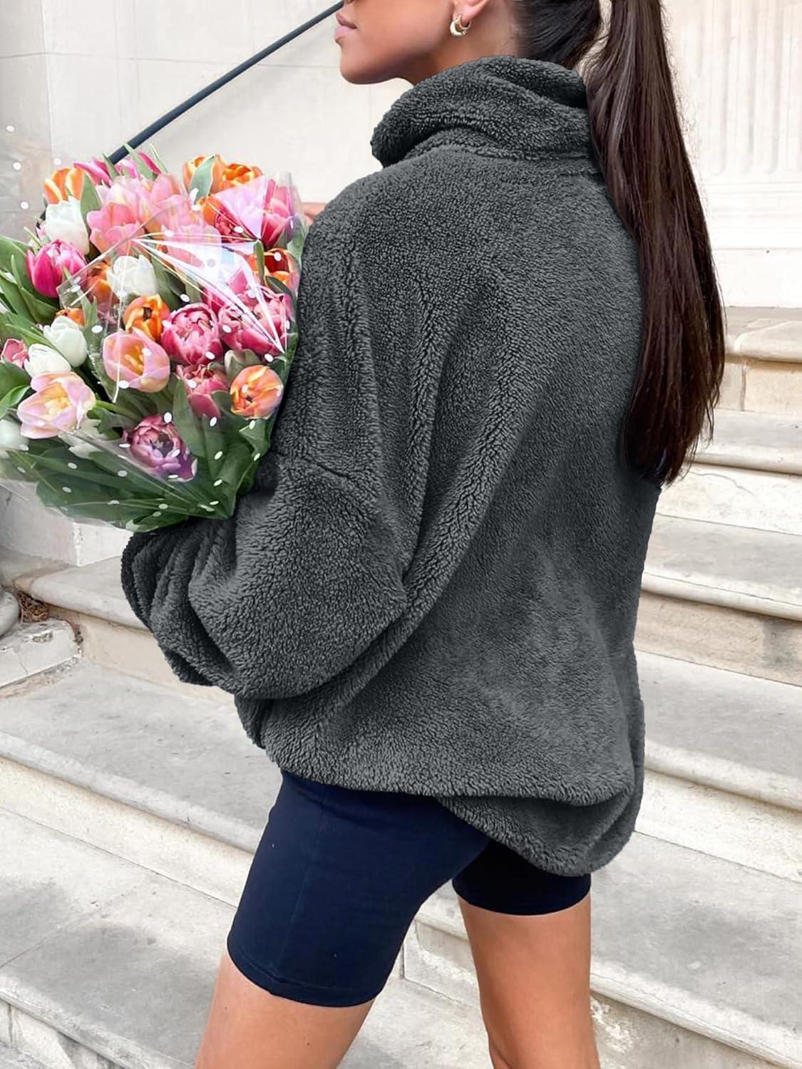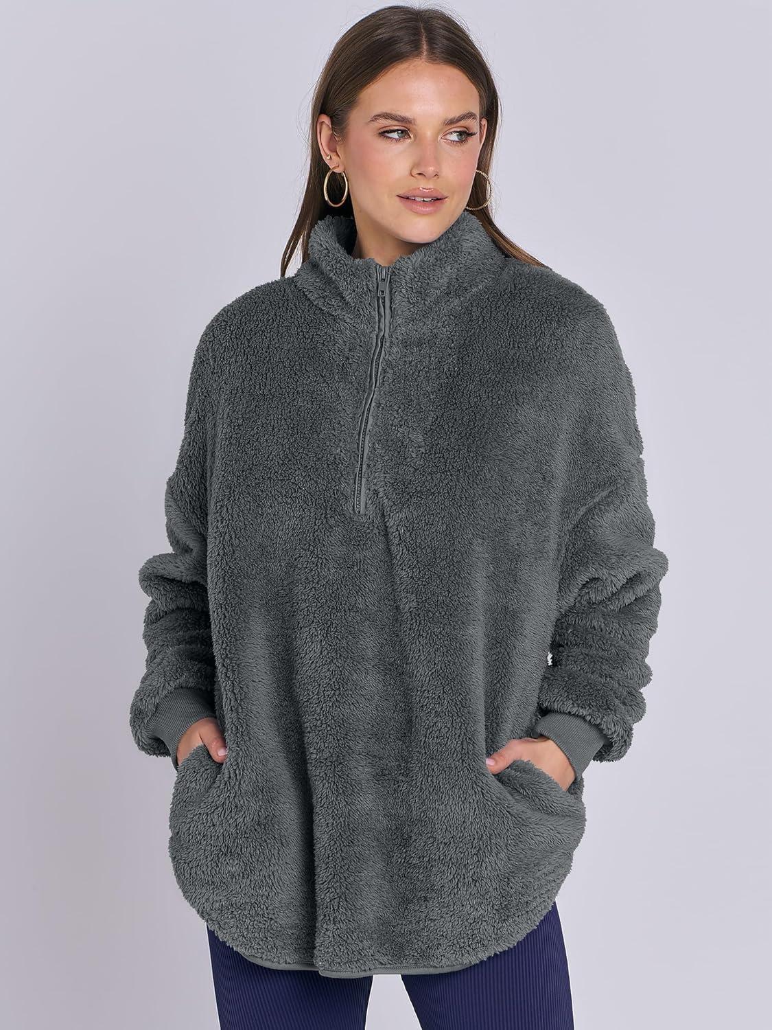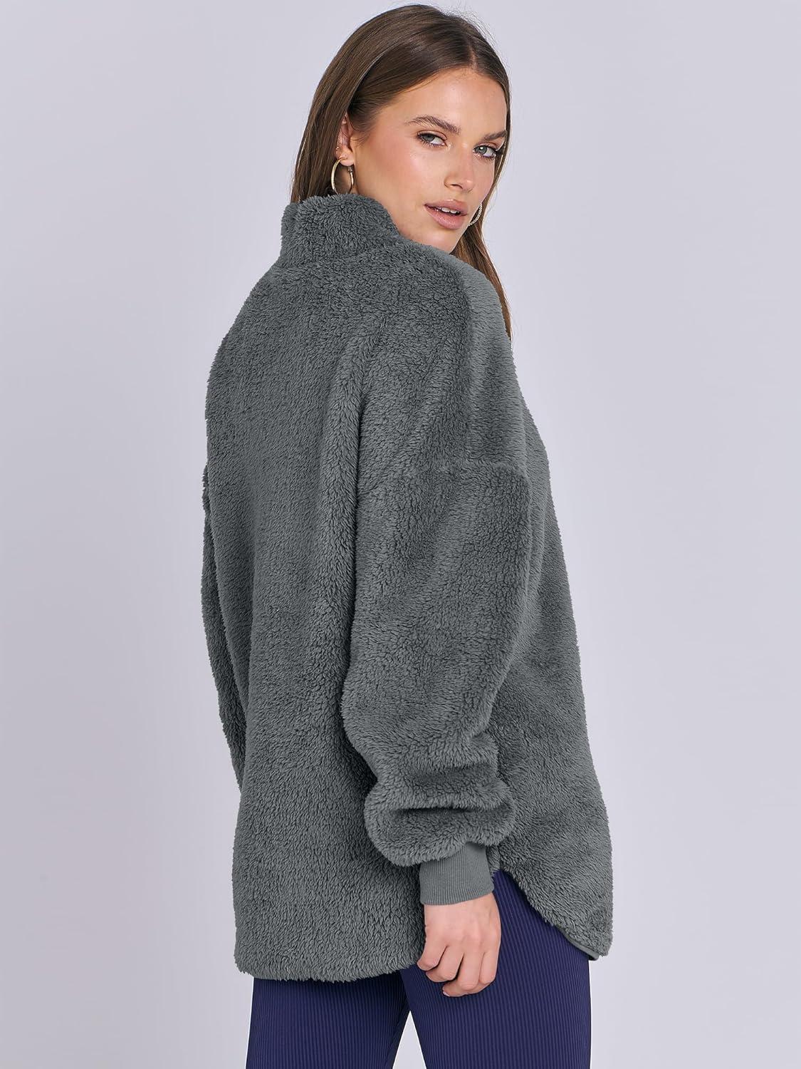 ANRABESS Women’s Sweatshirt Sherpa Fuzzy Fleece Zip Up Hoodies Cozy Pullover Soft Sweaters Tops 2025 Fall Trendy Clothes(Deep Grey)