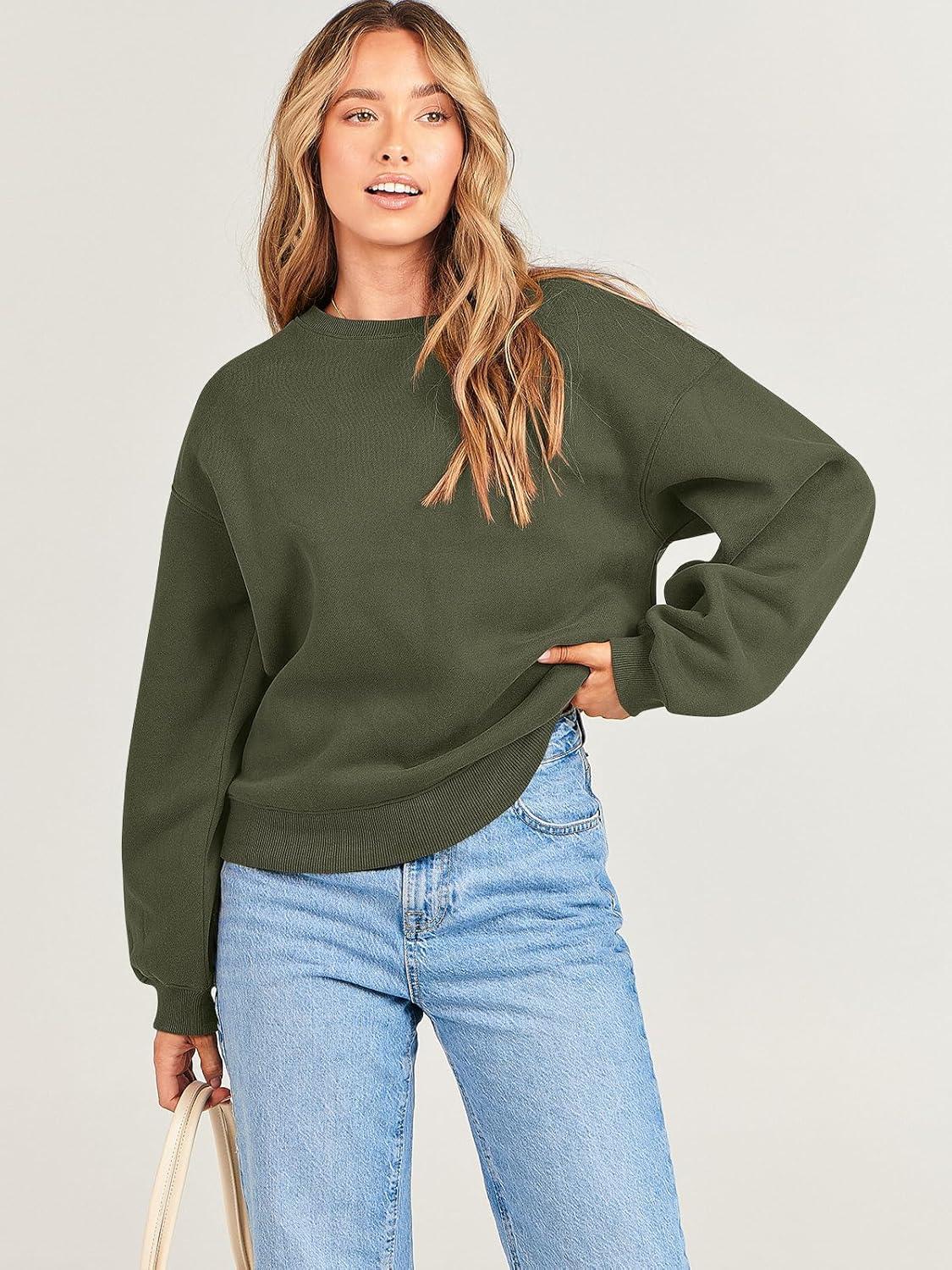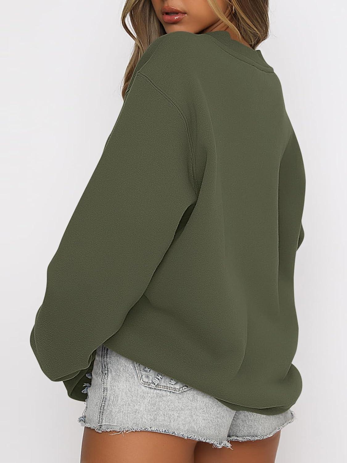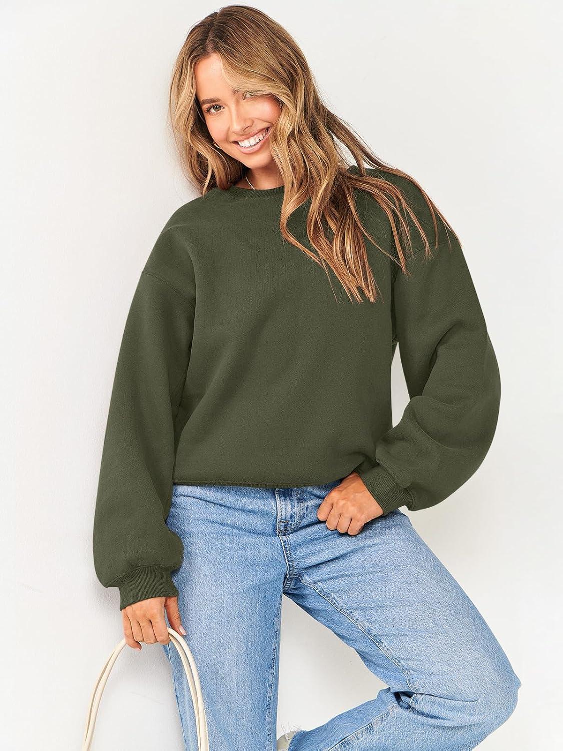 ANRABESS Womens Sweatshirts Crewneck Fleece Oversized Pullover Sweaters Fall Winter Cute Tops Teen Girls Preppy Clothes 2025(Army Green)