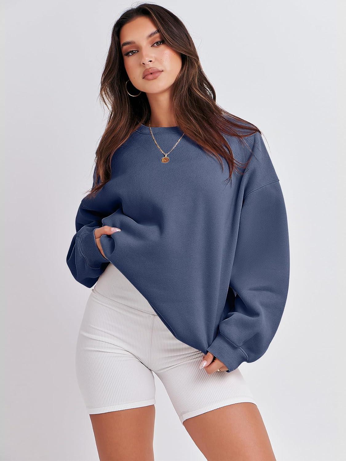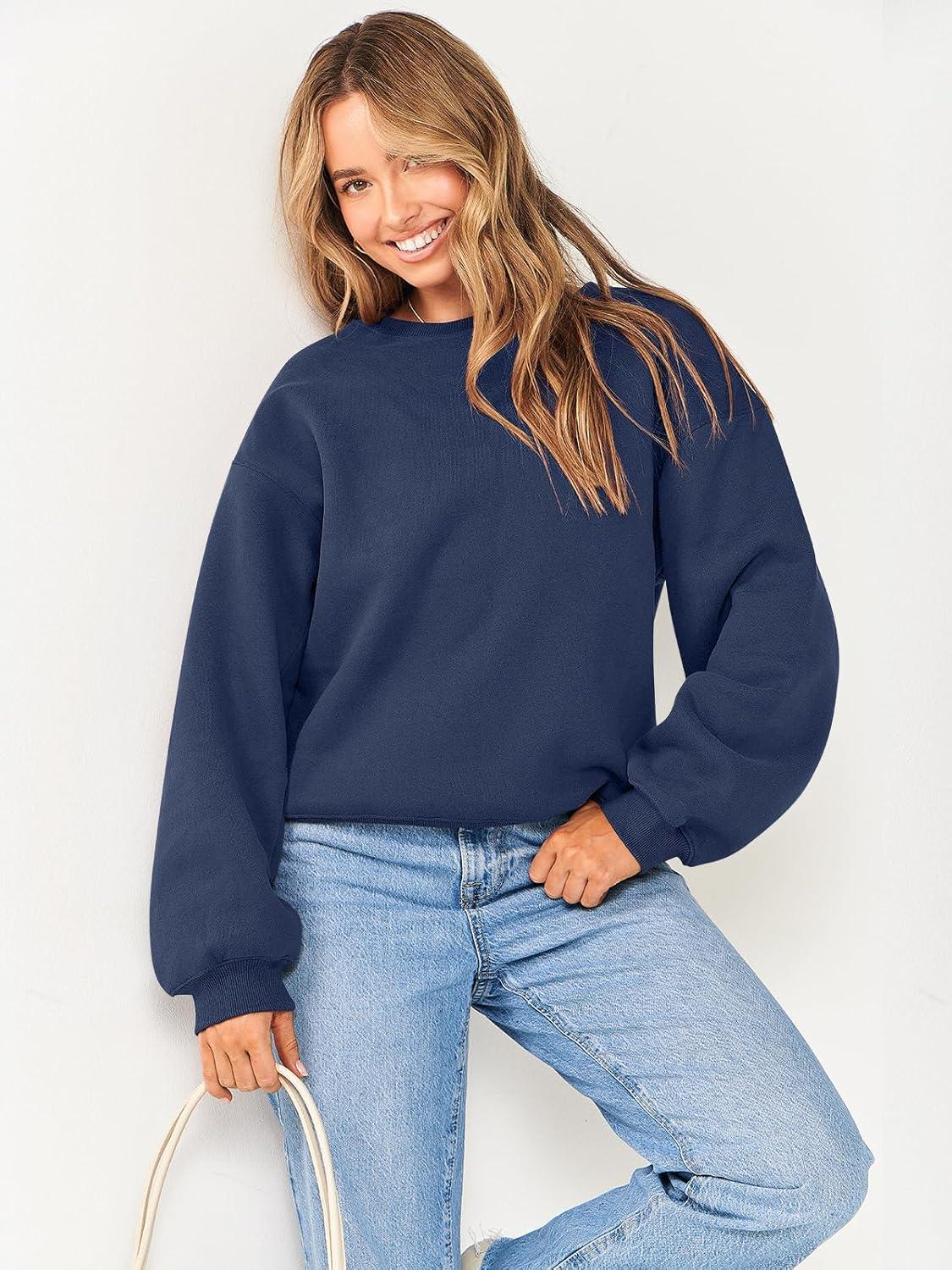 ANRABESS Womens Sweatshirts Crewneck Fleece Oversized Pullover Sweaters Fall Winter Cute Tops Teen Girls Preppy Clothes 2025(Dusty Blue)