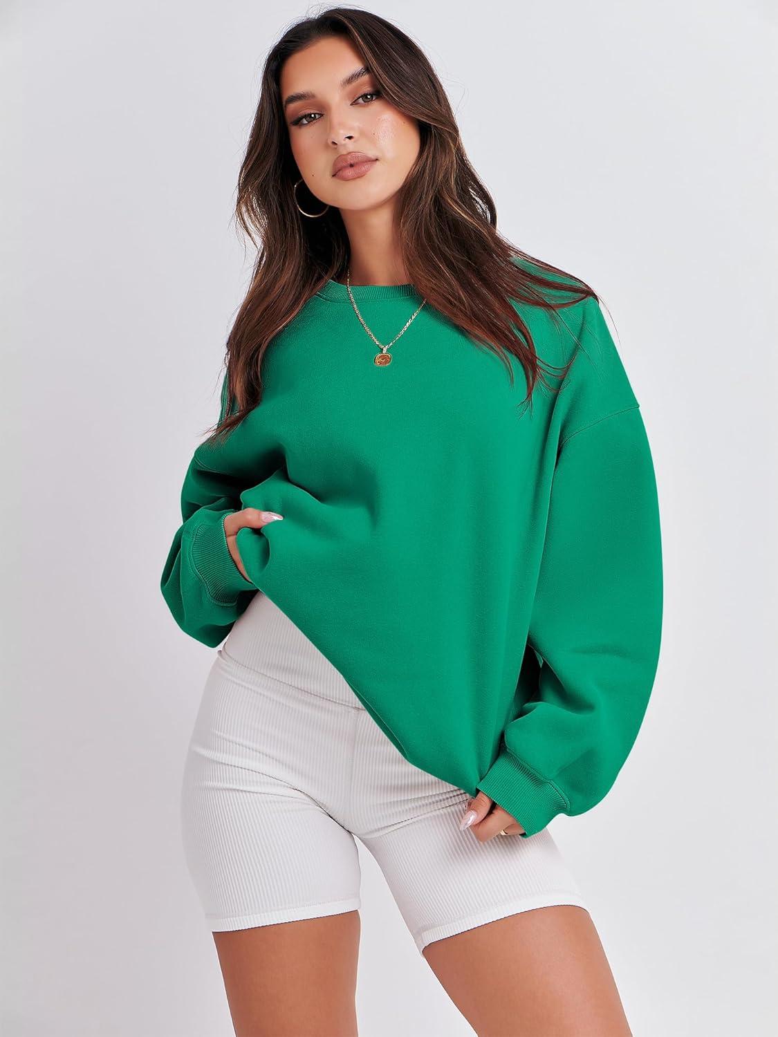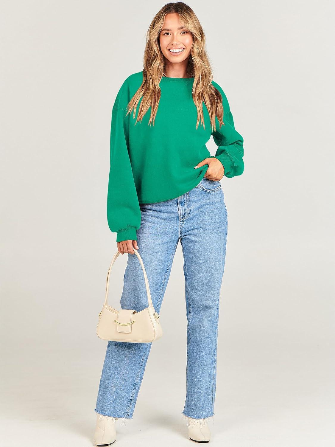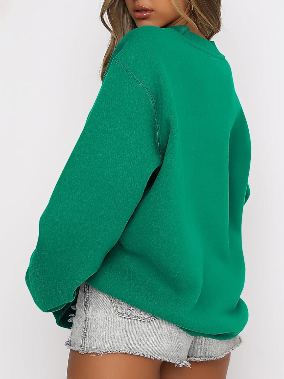 ANRABESS Womens Sweatshirts Crewneck Fleece Oversized Pullover Sweaters Fall Winter Cute Tops Teen Girls Preppy Clothes 2025(Green)