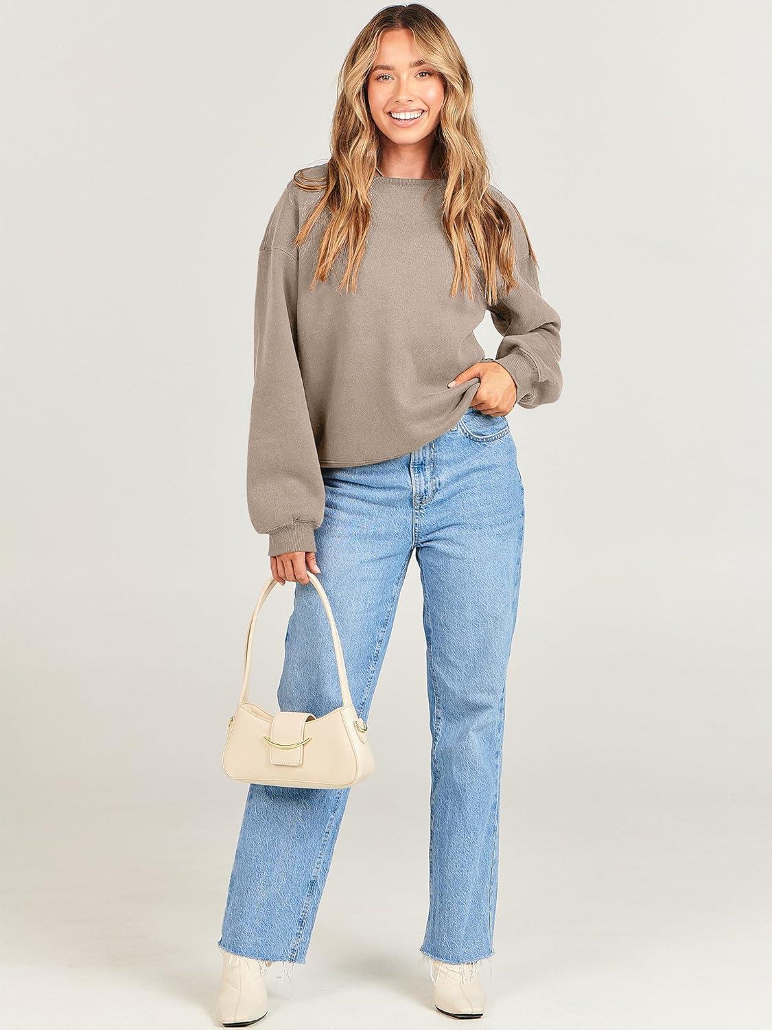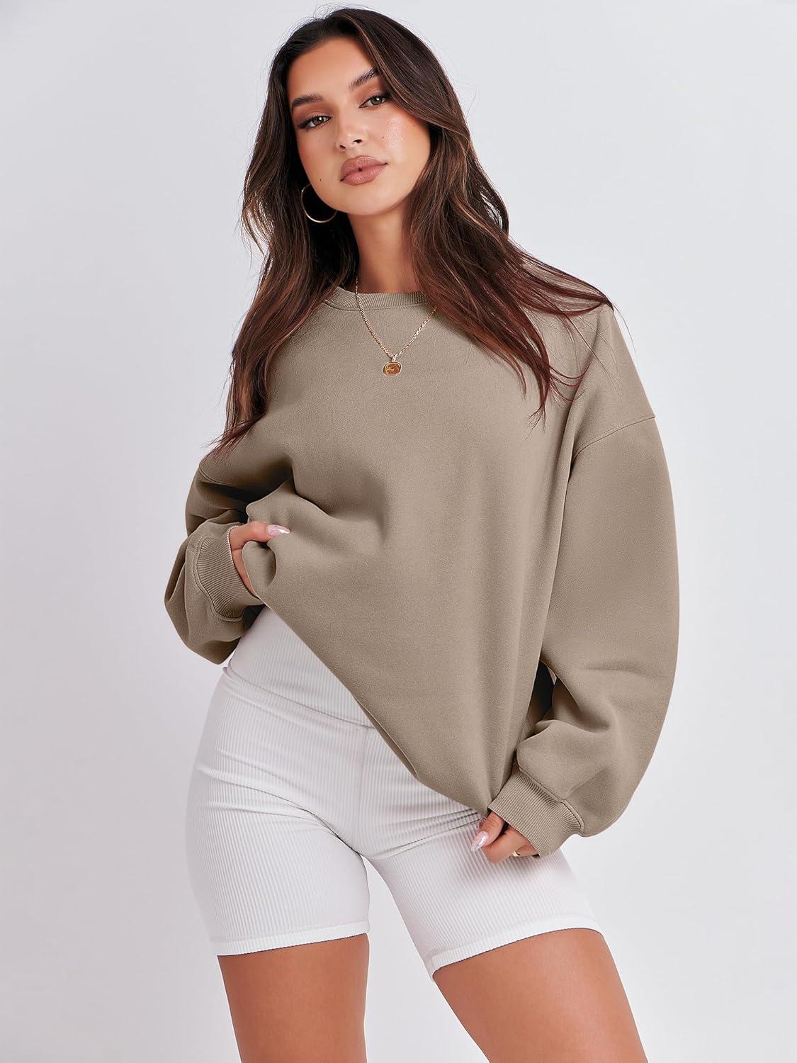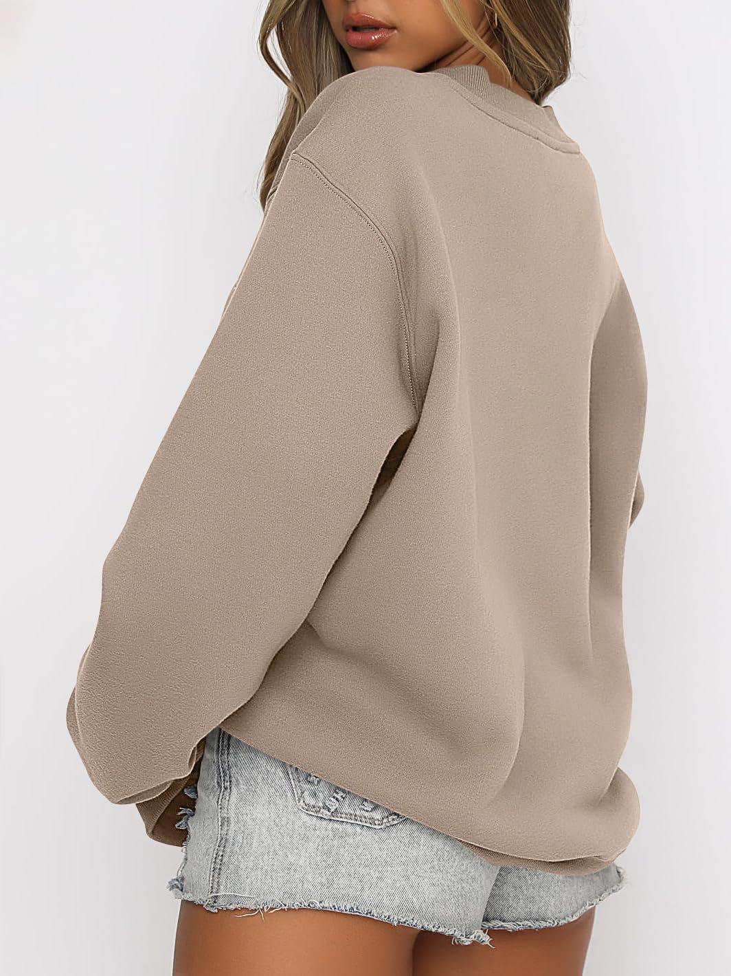 ANRABESS Womens Sweatshirts Crewneck Fleece Oversized Pullover Sweaters Fall Winter Cute Tops Teen Girls Preppy Clothes 2025(Khaki Brown)