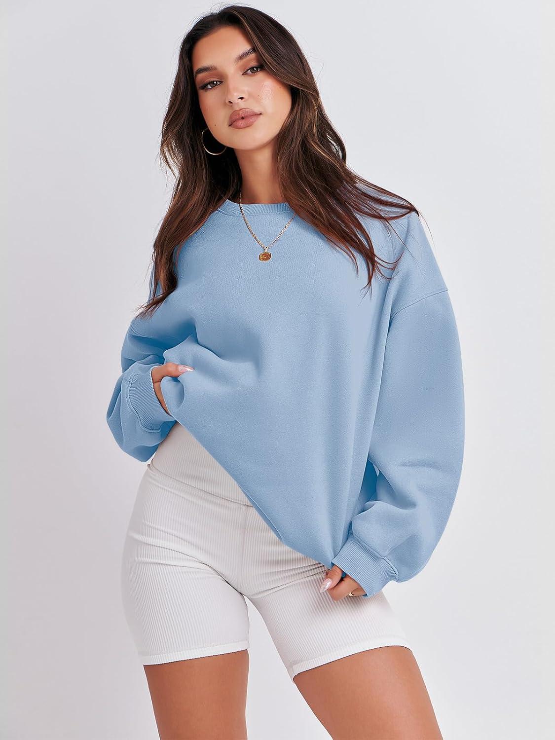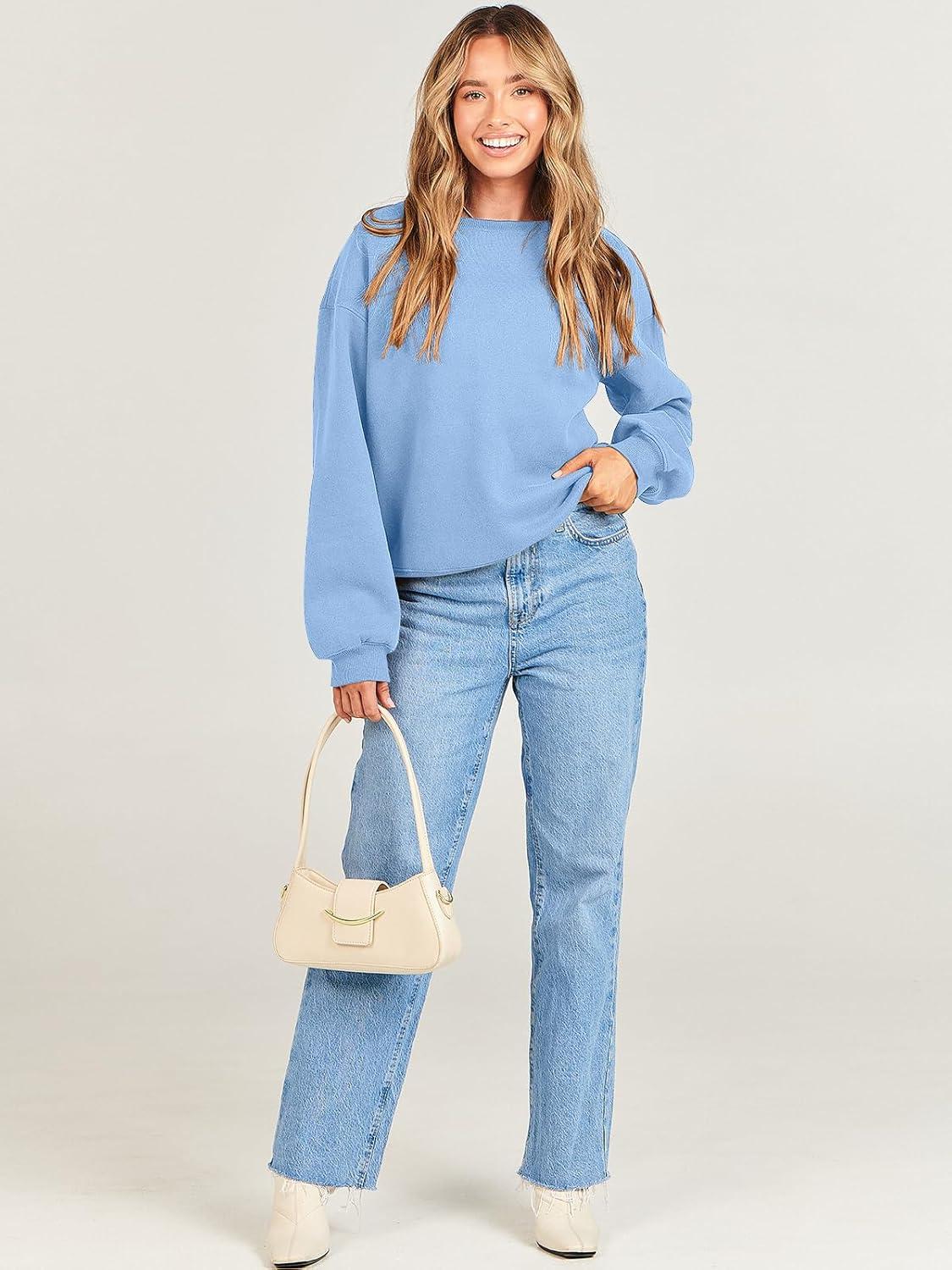 ANRABESS Womens Sweatshirts Crewneck Fleece Oversized Pullover Sweaters Fall Winter Cute Tops Teen Girls Preppy Clothes 2025(Light Blue)