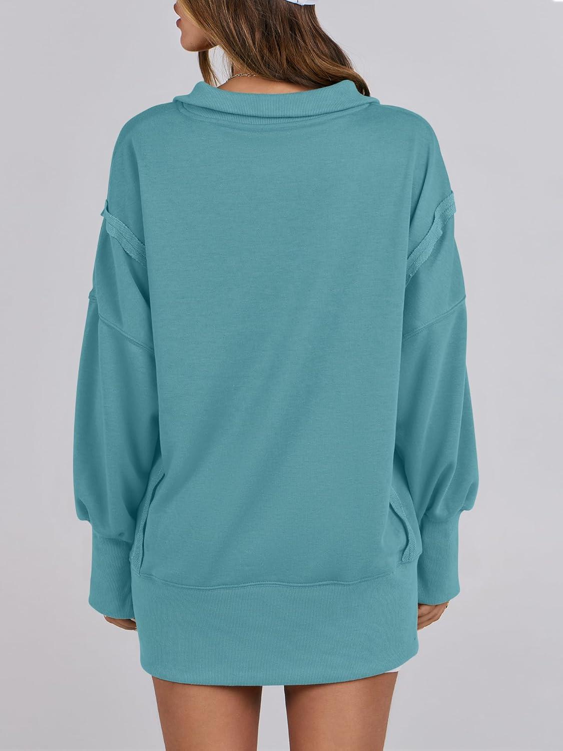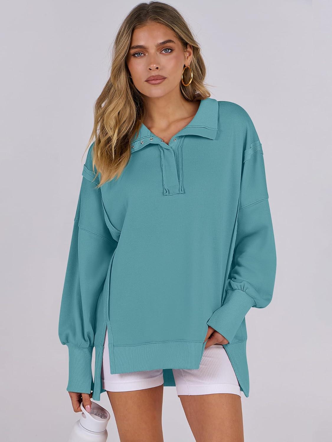 ANRABESS Women’s Sweatshirts Oversized Casual Loose Button Up Henley Pullover Top High Low Split 2025 Fall Fashion Outfits(Lake Green)