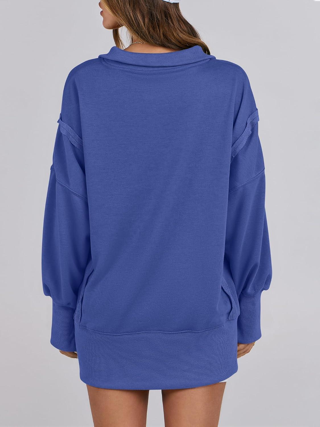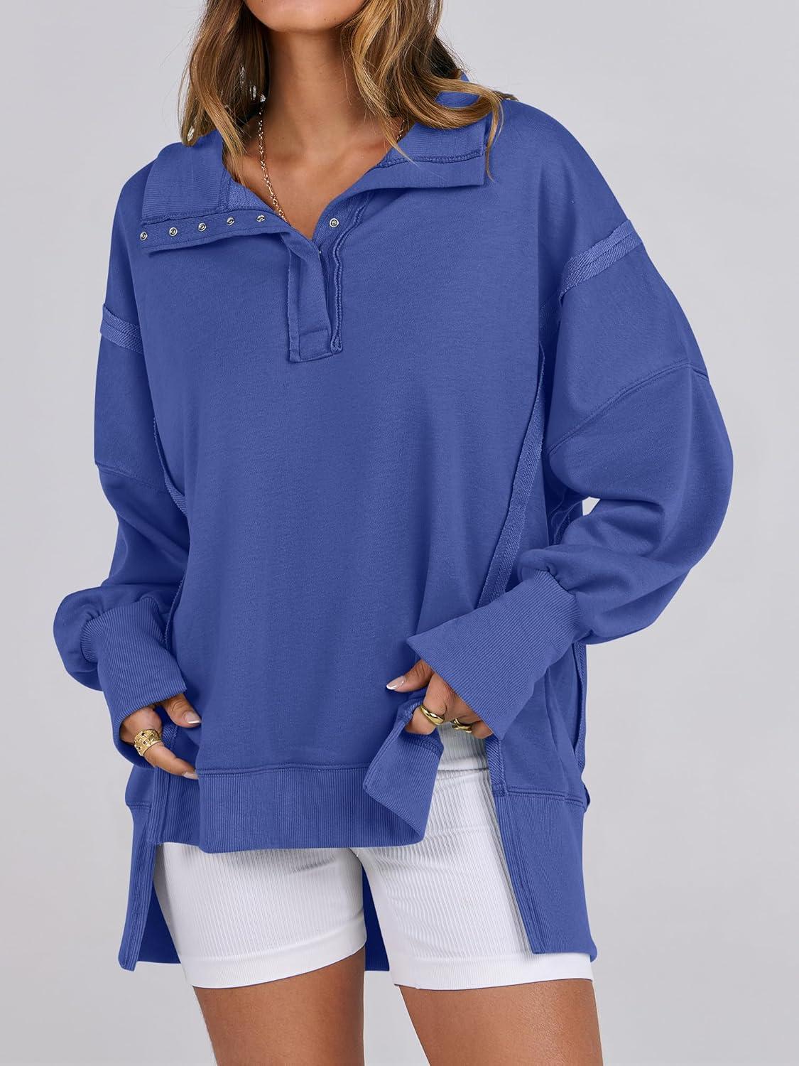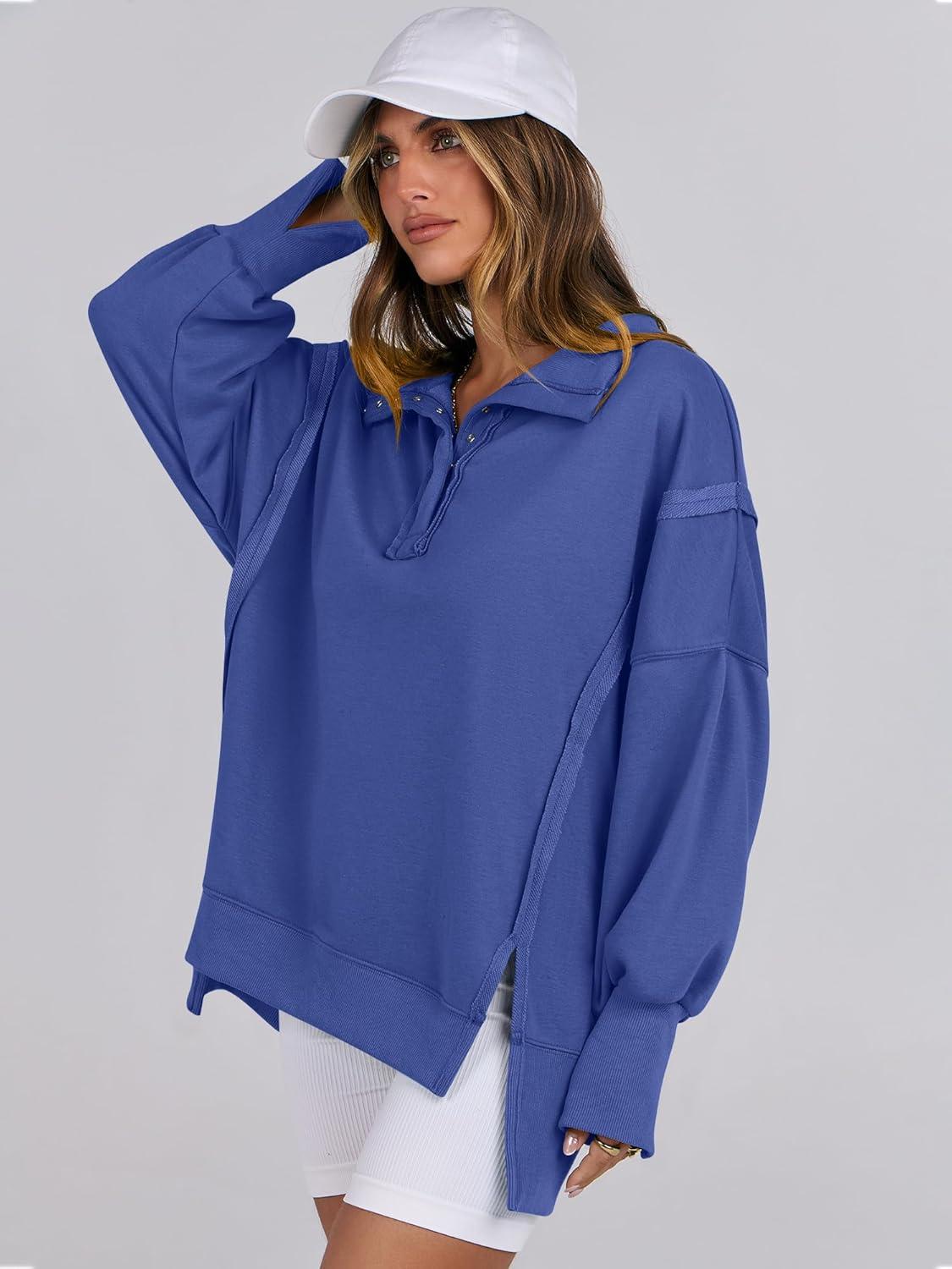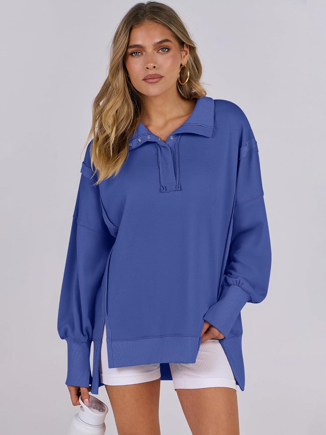 ANRABESS Women’s Sweatshirts Oversized Casual Loose Button Up Henley Pullover Top High Low Split 2025 Fall Fashion Outfits(Royal Blue)