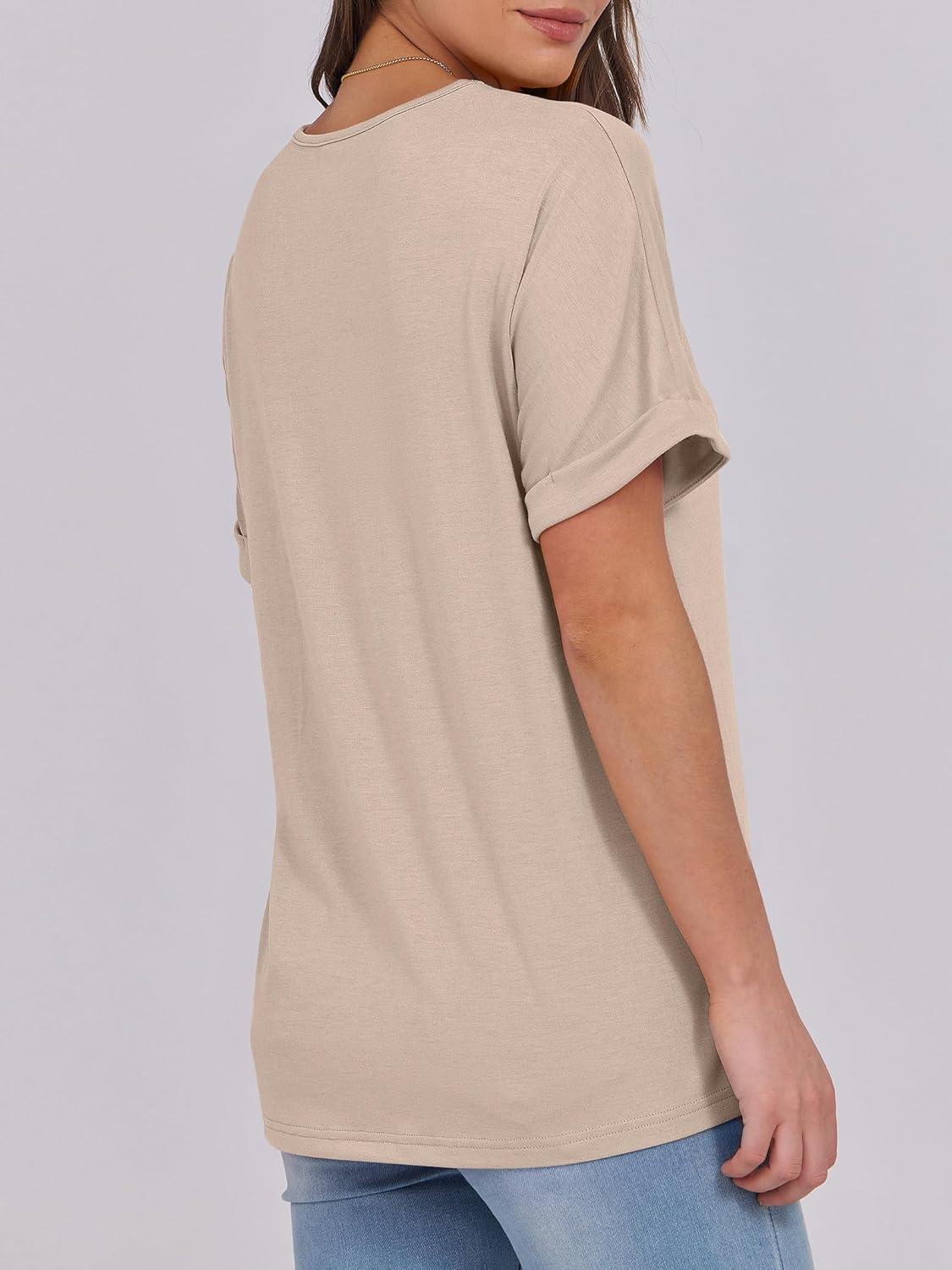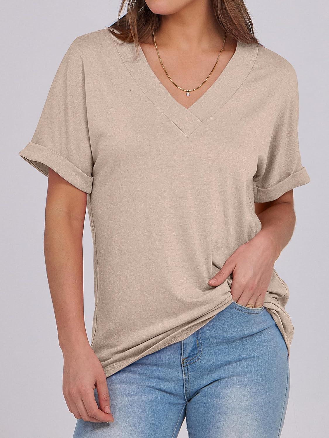 ANRABESS Womens T Shirts Short Sleeve V Neck Shirts Summer Loose Fit Dressy Tops Business Casual Blouses 2025 Basic Tees(Almond)