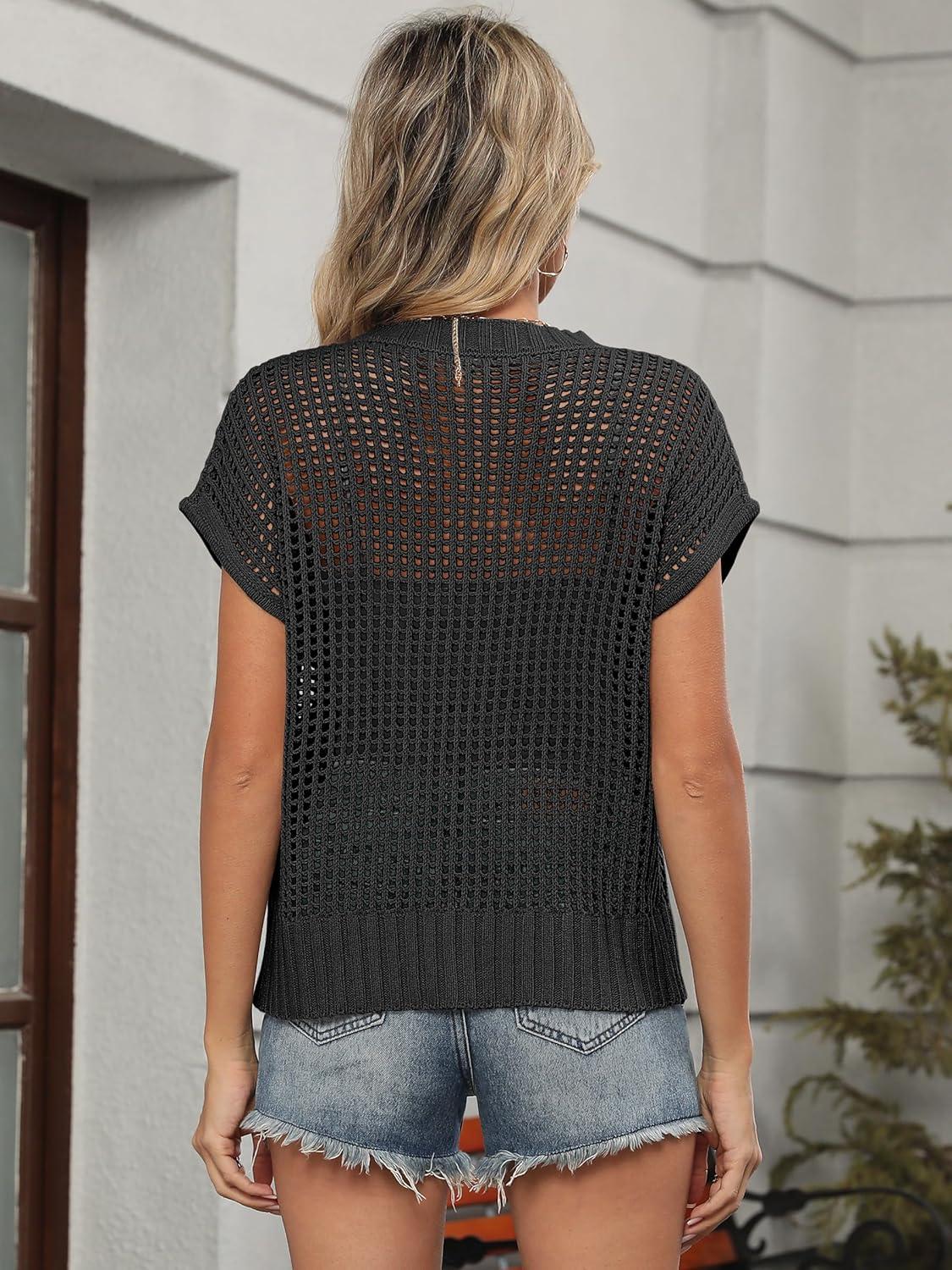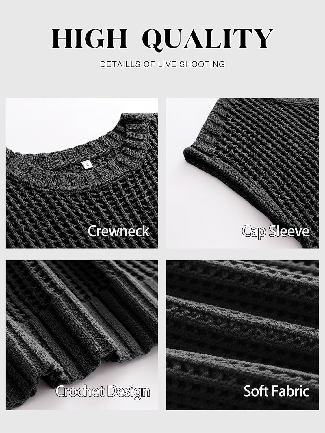 ANRABESS Womens Tops 2026 Trendy Summer Shirts Crochet Cap Sleeve Knitted Sweater Beach Vacation Clothes Fall Fashion Outfits(Black)
