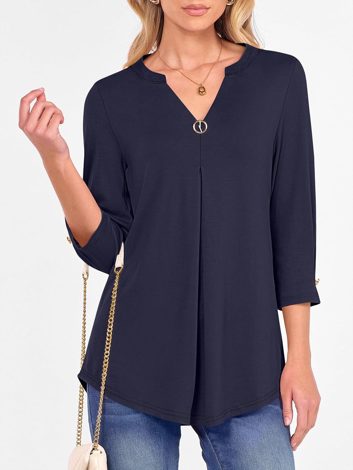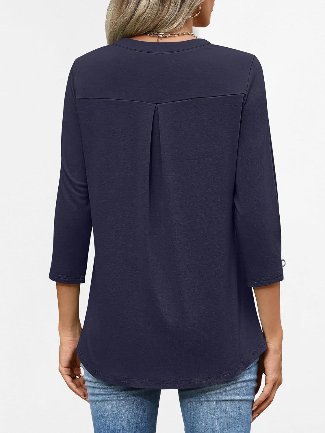 ANRABESS Womens Tops 3/4 Length Sleeve Shirts Business Casual Dressy Blouses 2025 Fall Work Tunic Tee TShirts Office Outfits(Navy Blue)