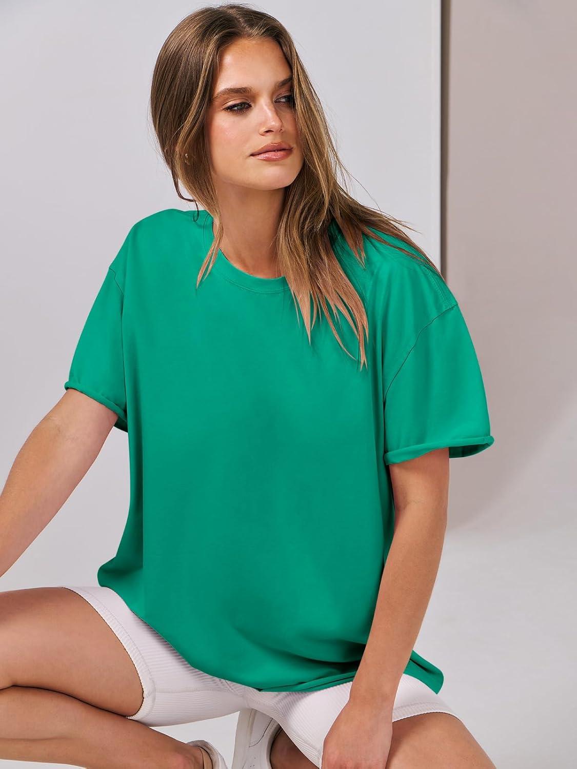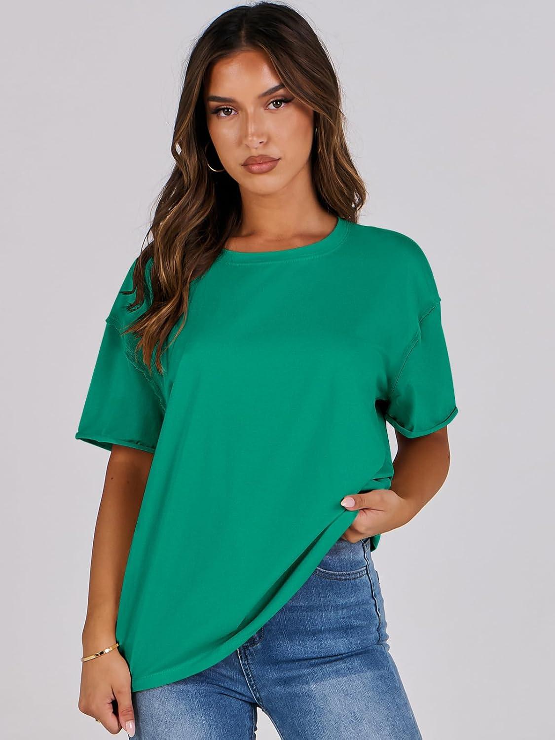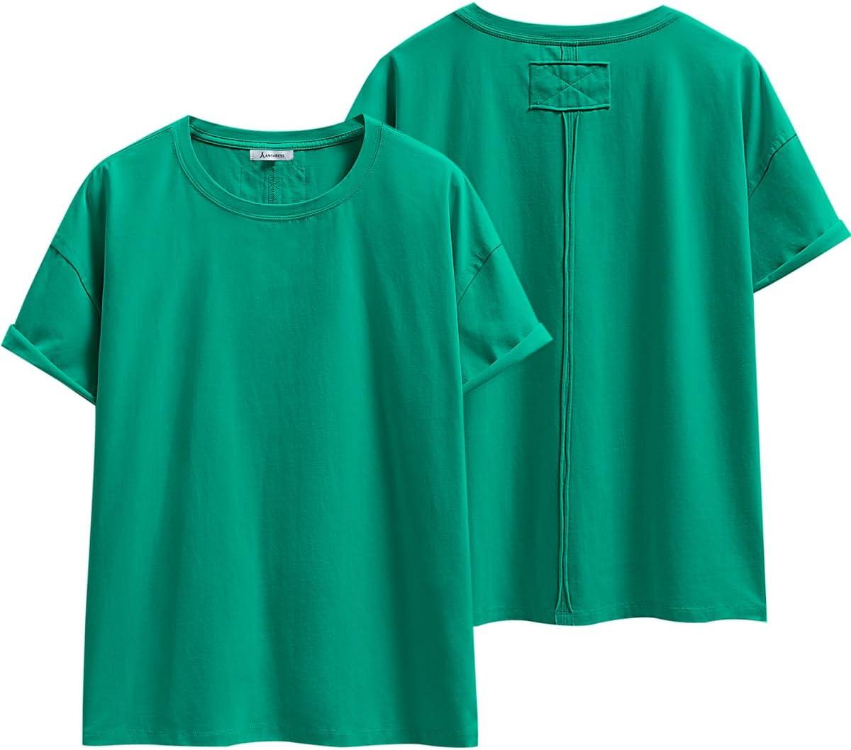 ANRABESS Womens Tops Oversized T Shirts Loose Fit Short Sleeve Crewneck Summer Casual 2025 Trendy Boxy Tee Blouse(Green)