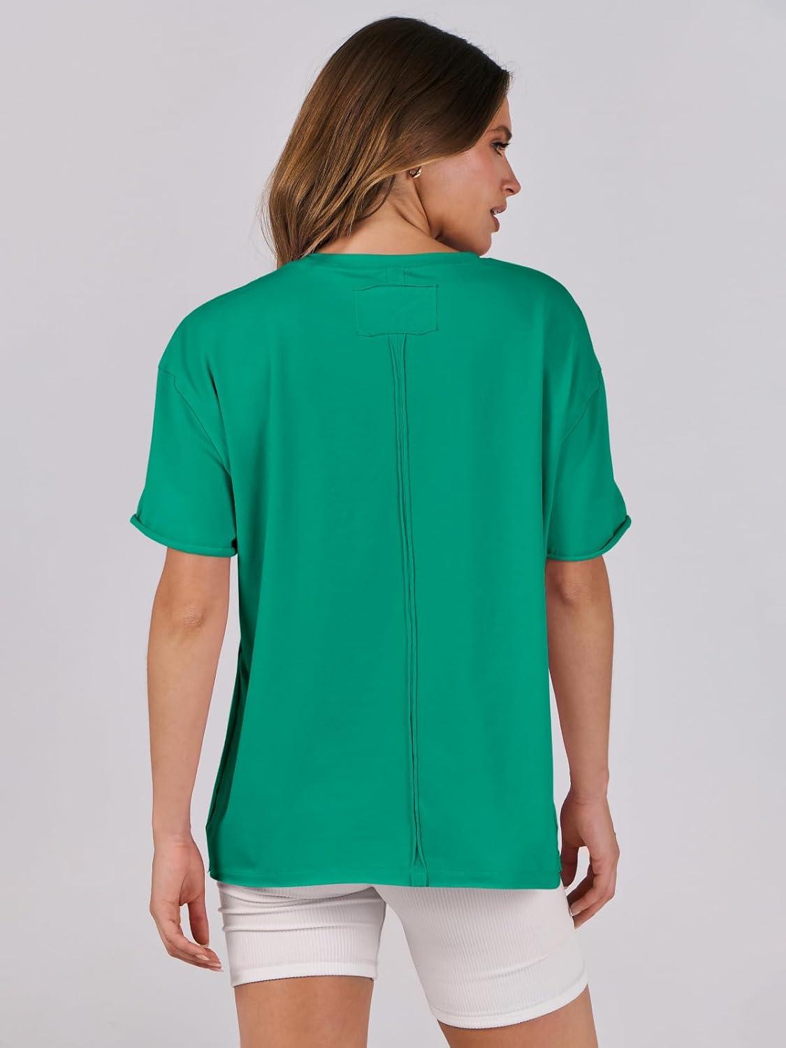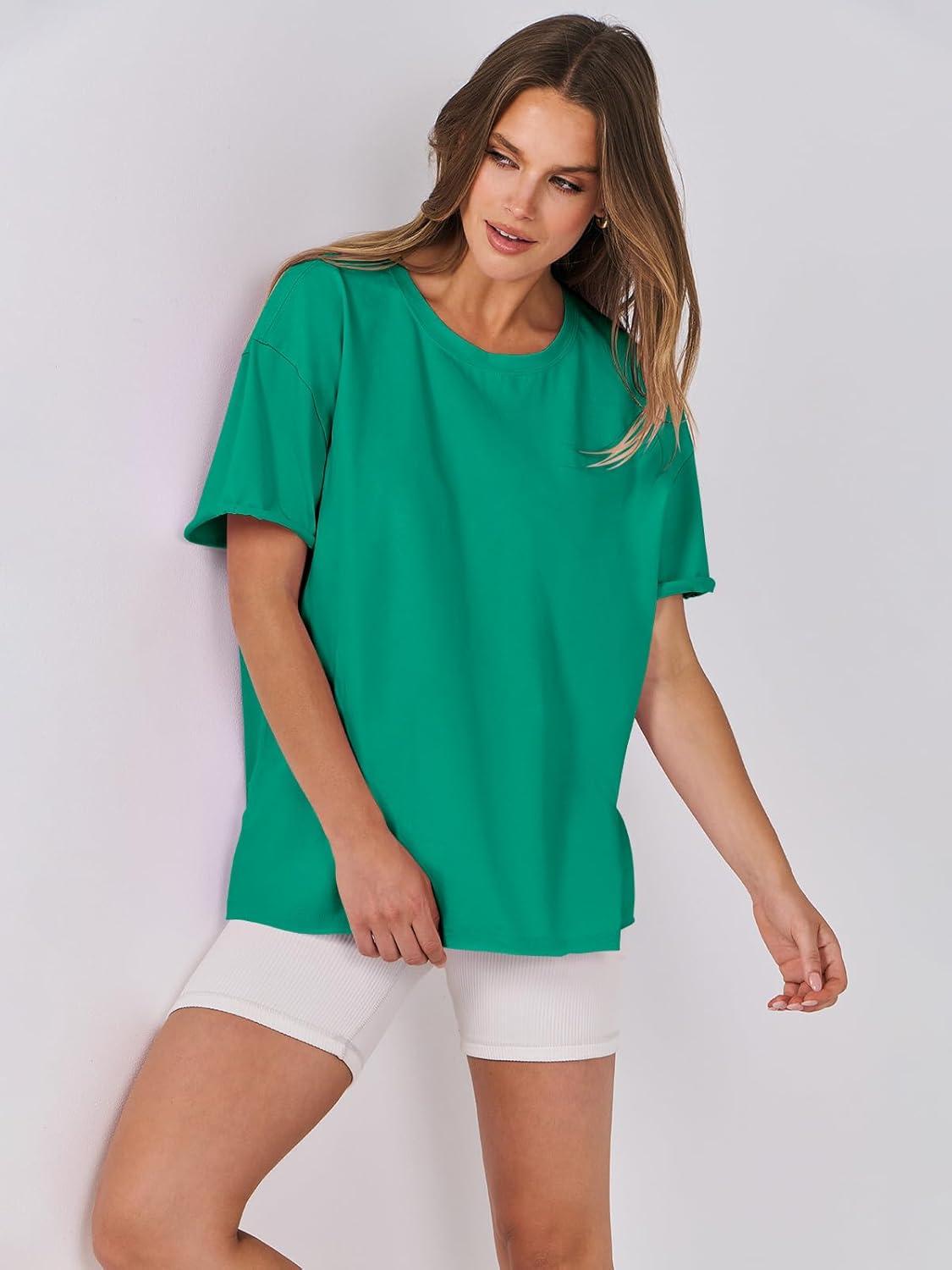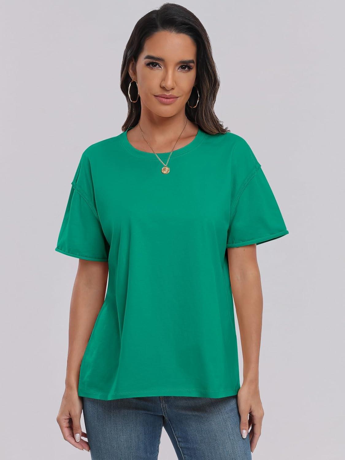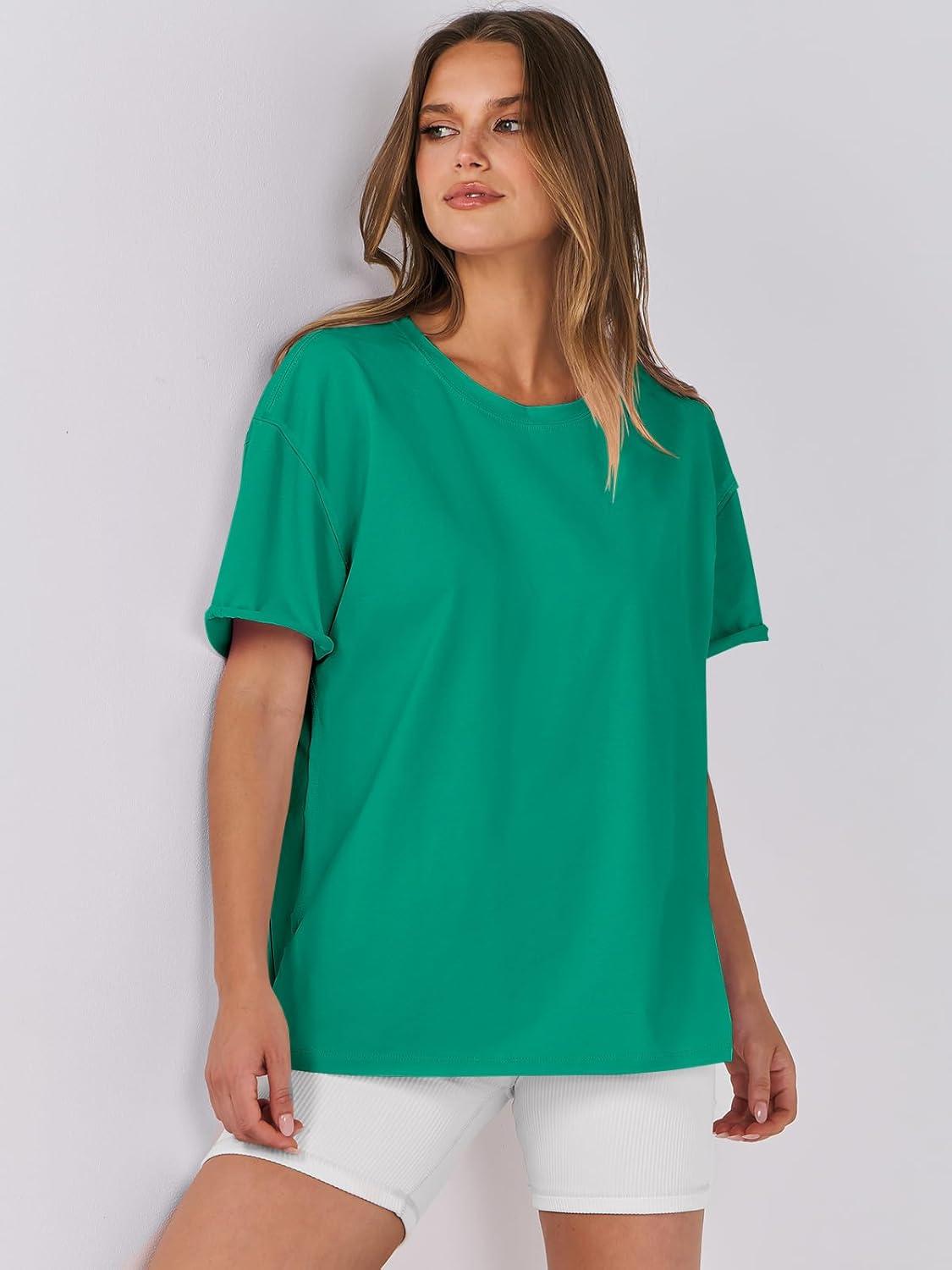 ANRABESS Womens Tops Oversized T Shirts Loose Fit Short Sleeve Crewneck Summer Casual 2025 Trendy Boxy Tee Blouse(Green)