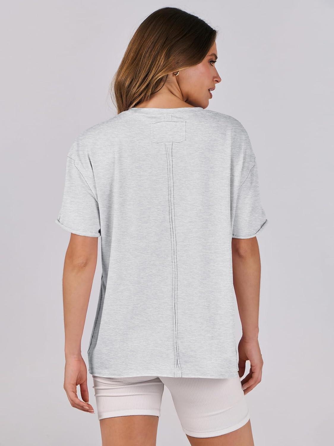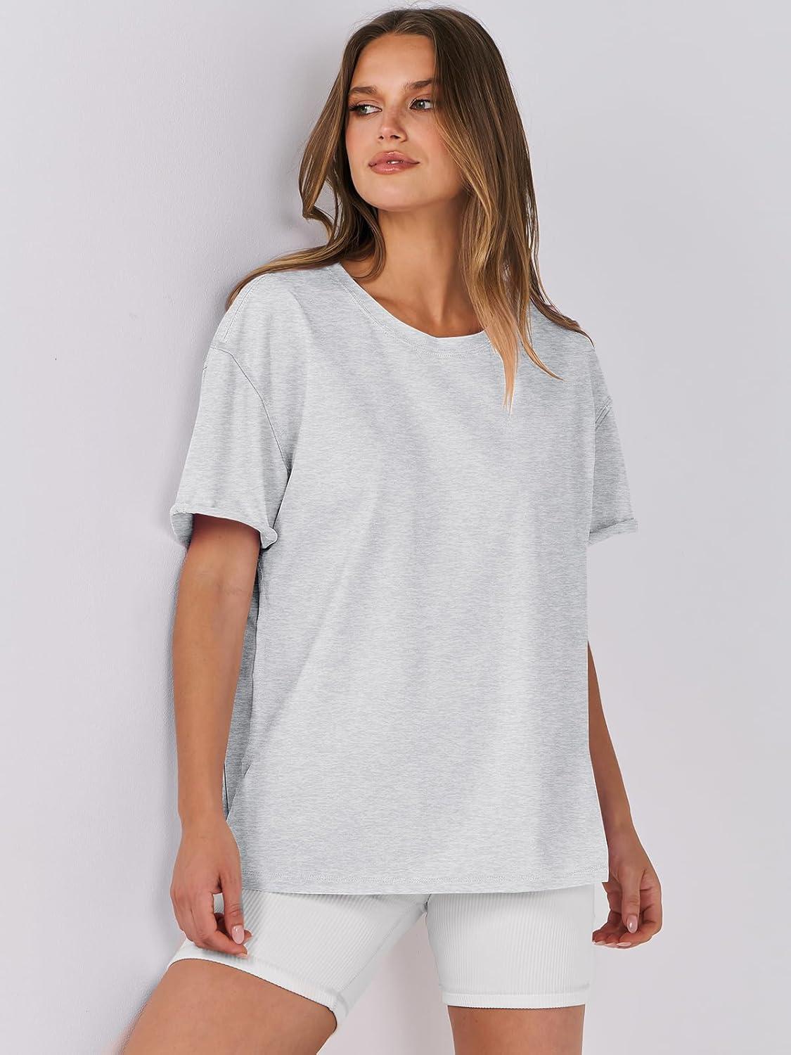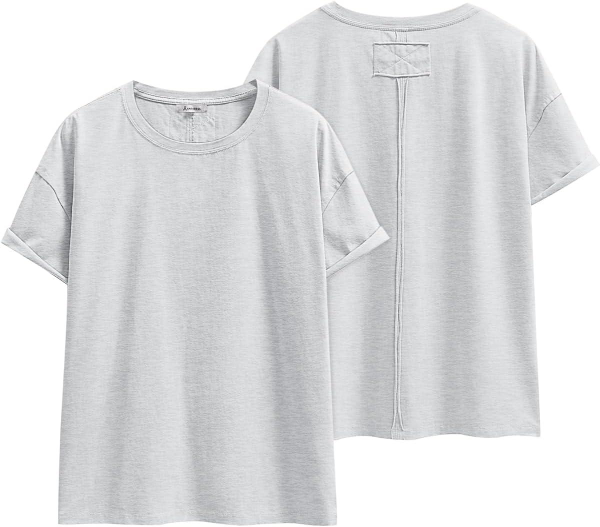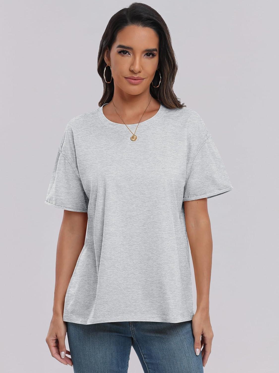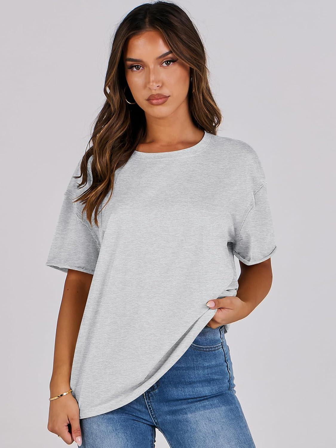 ANRABESS Womens Tops Oversized T Shirts Loose Fit Short Sleeve Crewneck Summer Casual 2025 Trendy Boxy Tee Blouse(Light Grey)