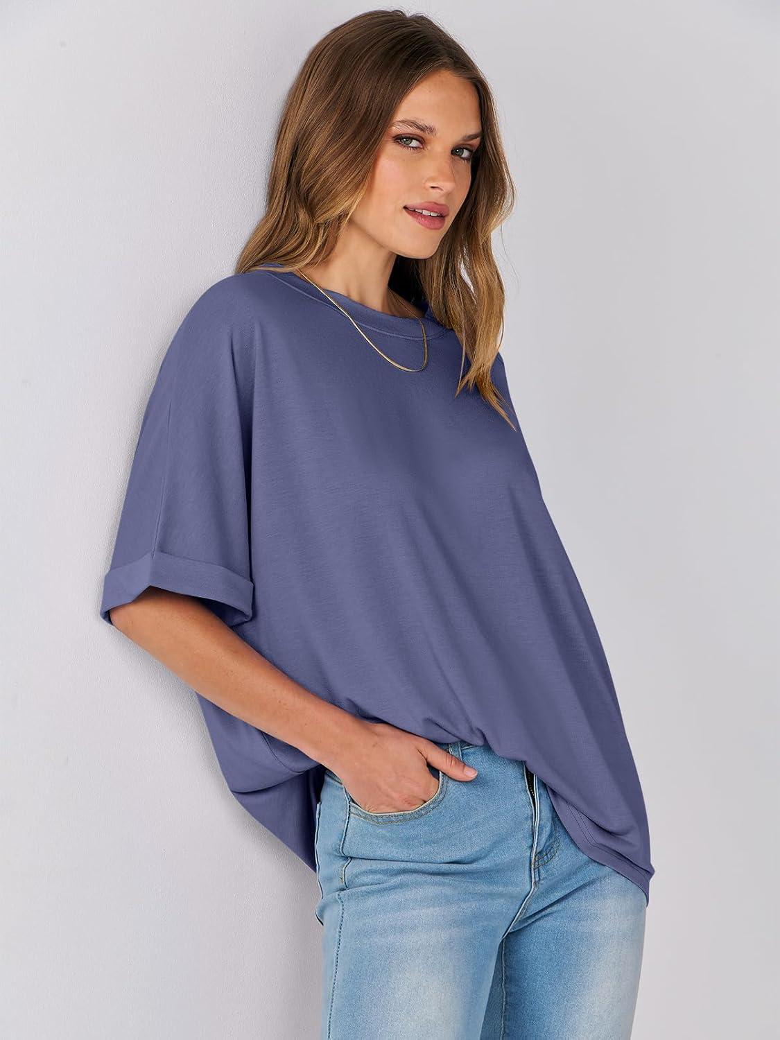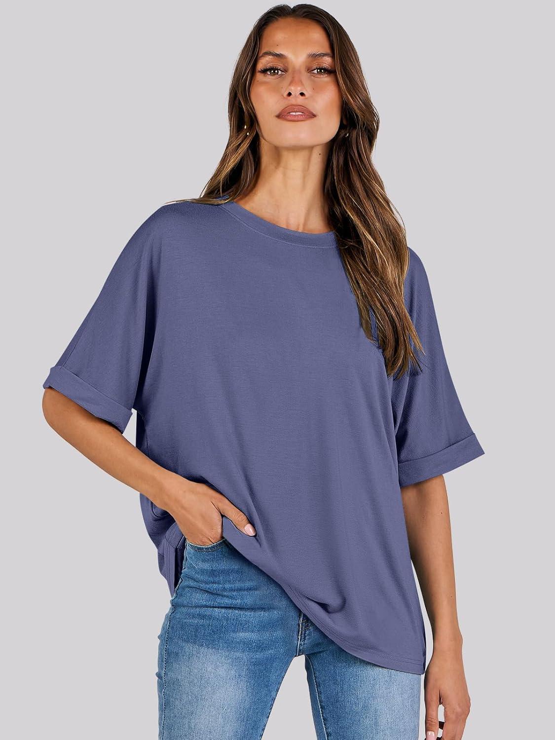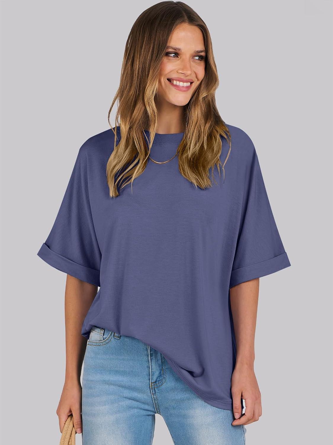 ANRABESS Womens Tops Oversized T Shirts Short Sleeve Crewneck Summer Casual Loose Basic Tee Shirt 2025 Trendy Fashion Clothes(Blue Gray)
