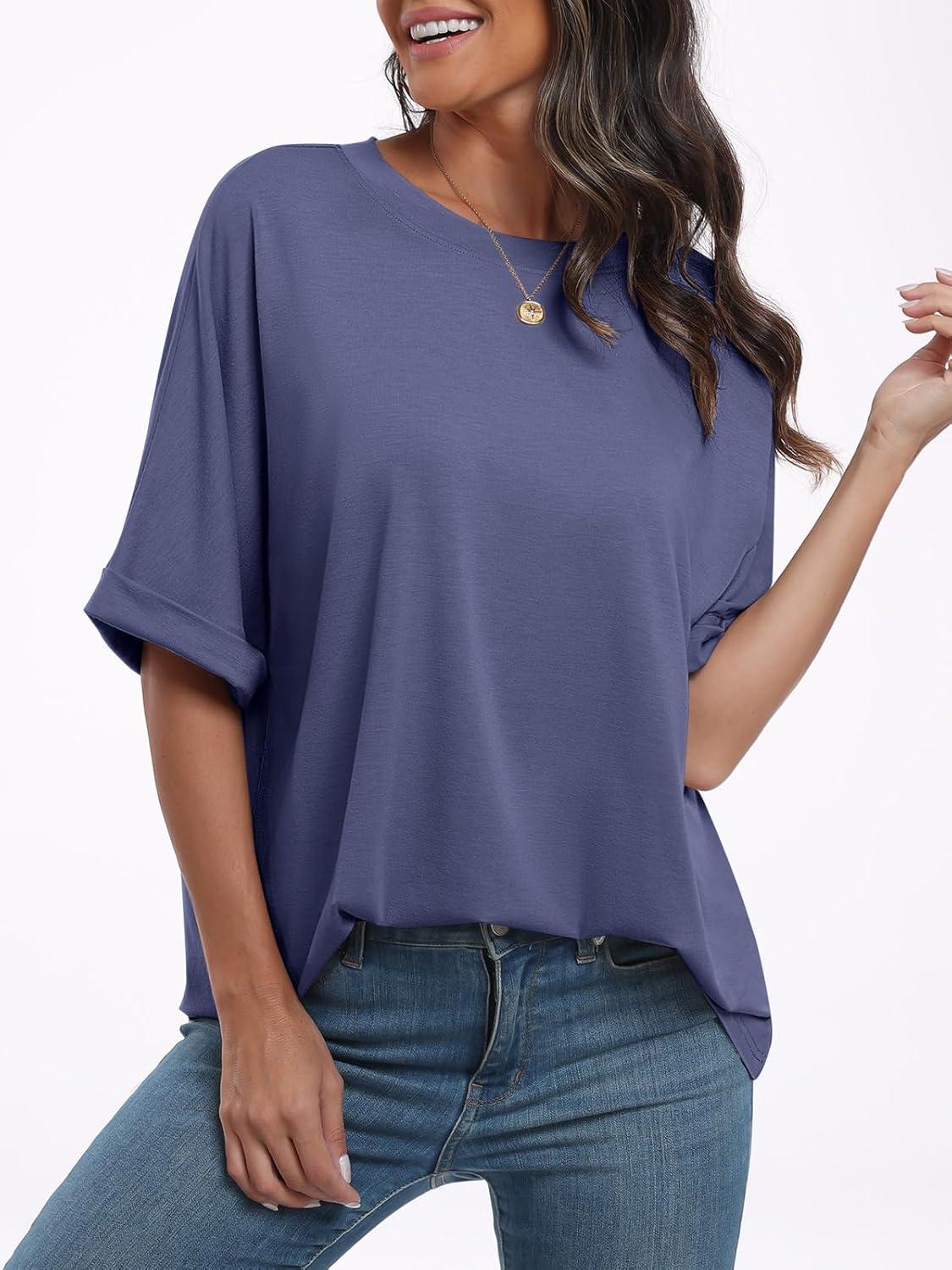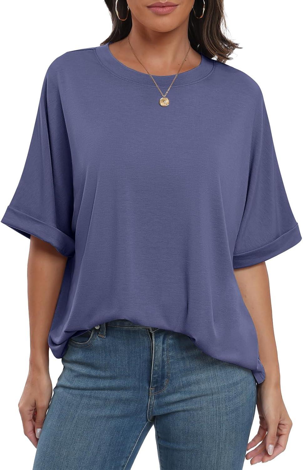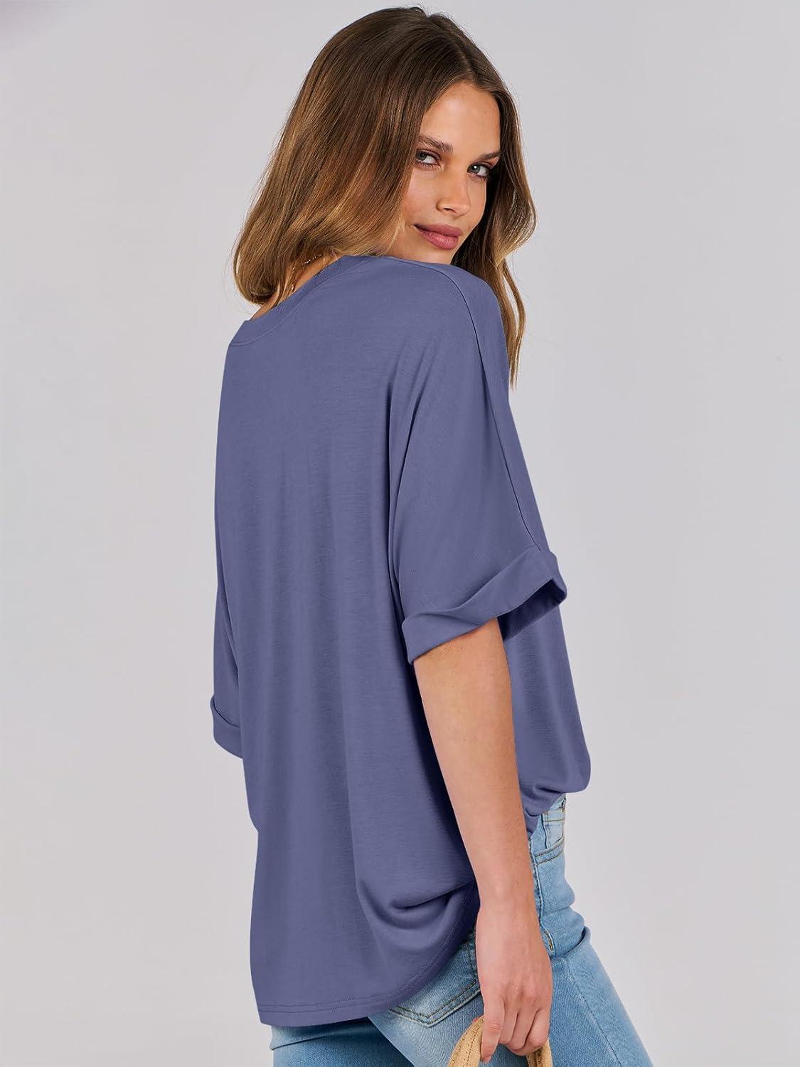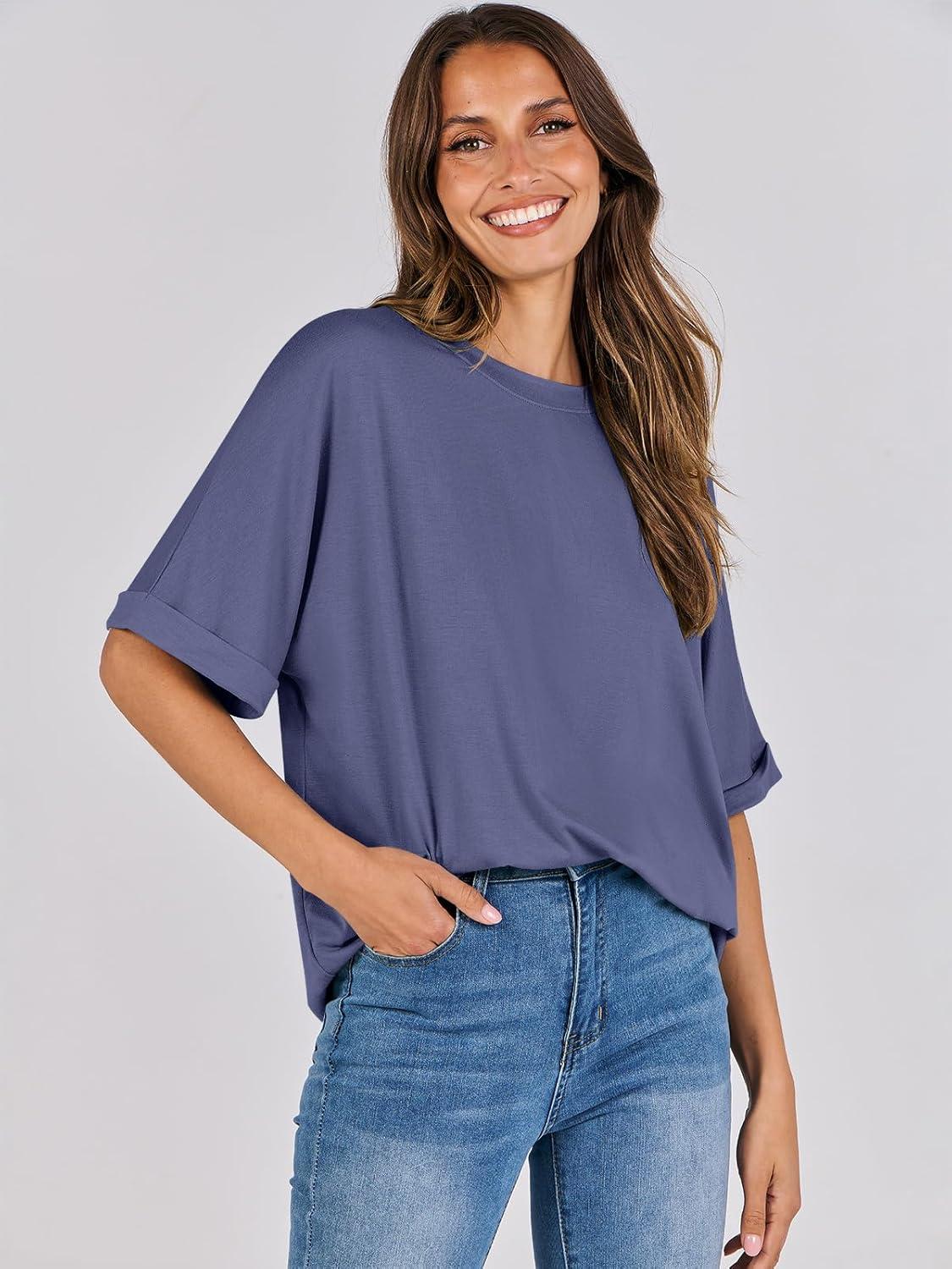 ANRABESS Womens Tops Oversized T Shirts Short Sleeve Crewneck Summer Casual Loose Basic Tee Shirt 2025 Trendy Fashion Clothes(Blue Gray)