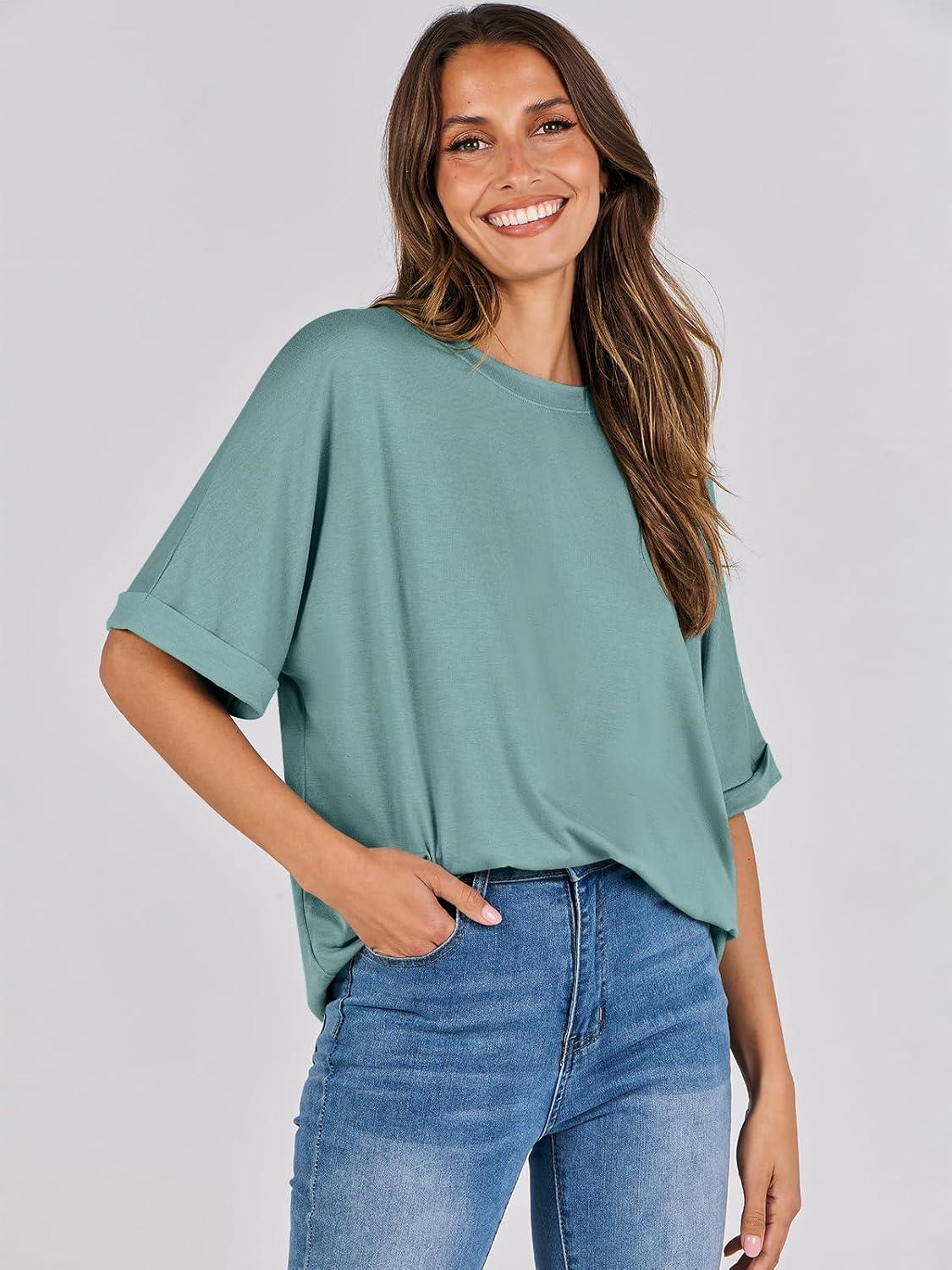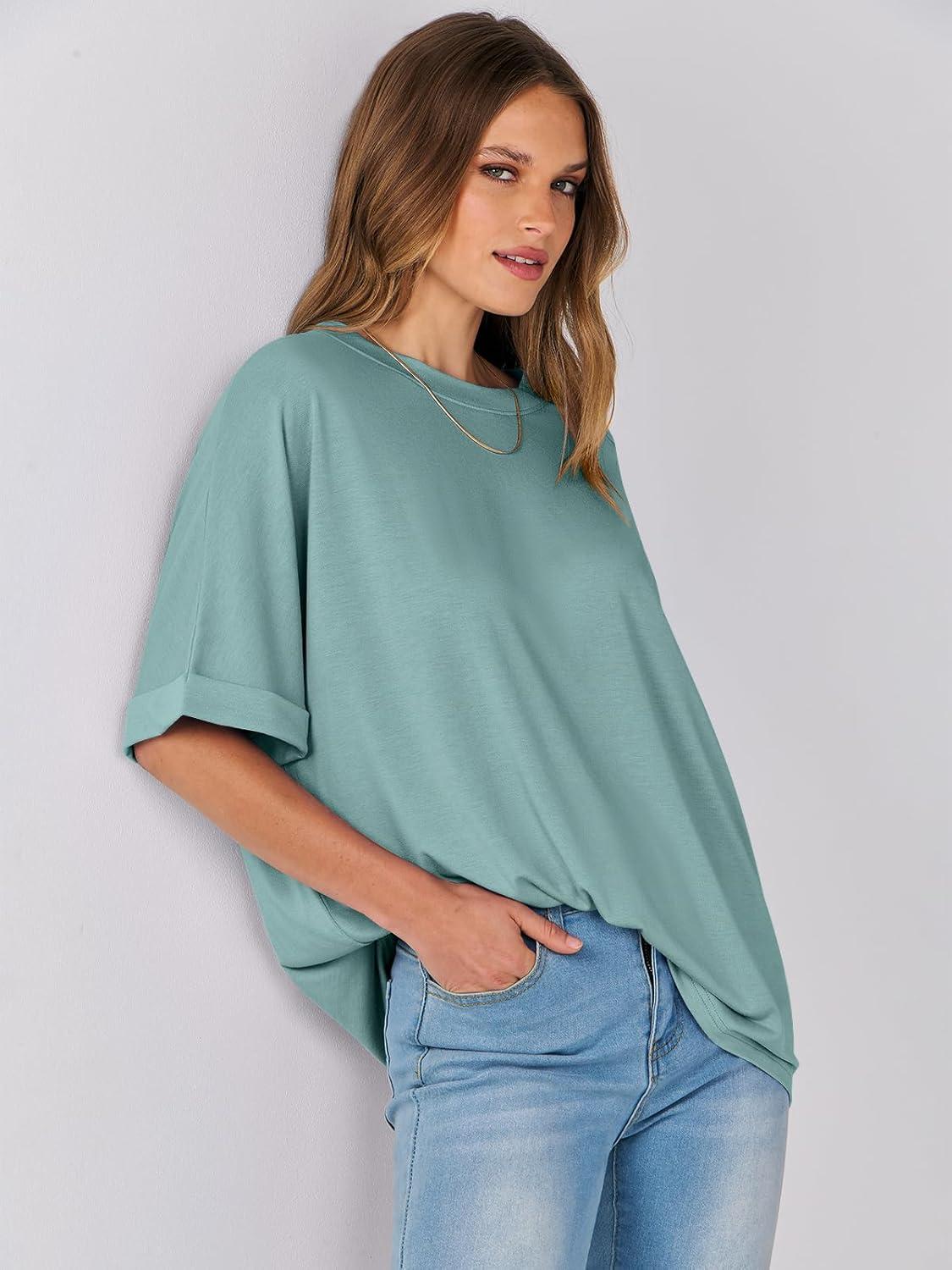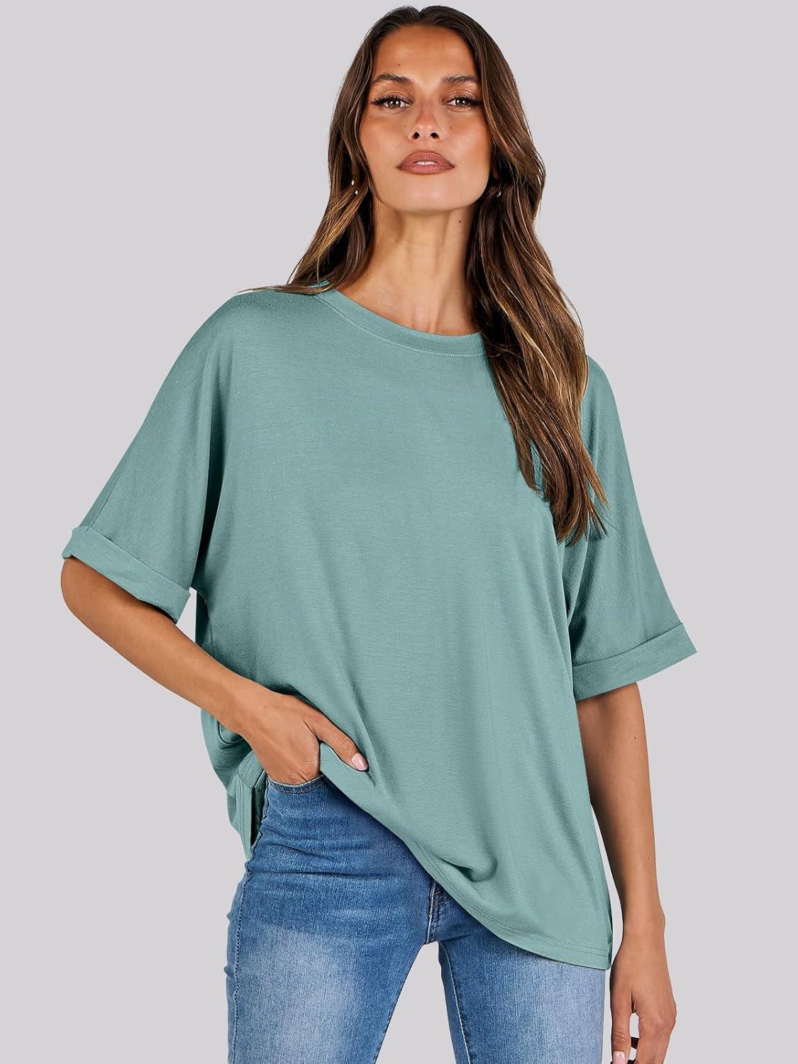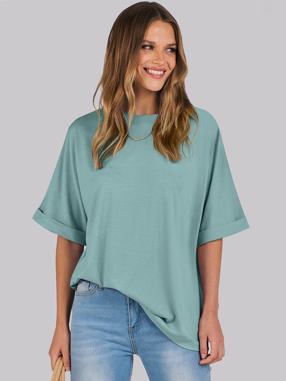 ANRABESS Womens Tops Oversized T Shirts Short Sleeve Crewneck Summer Casual Loose Basic Tee Shirt 2025 Trendy Fashion Clothes(Cadet Blue)