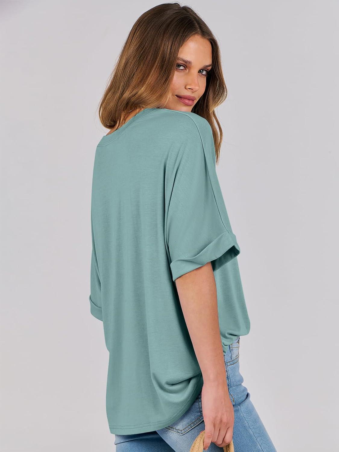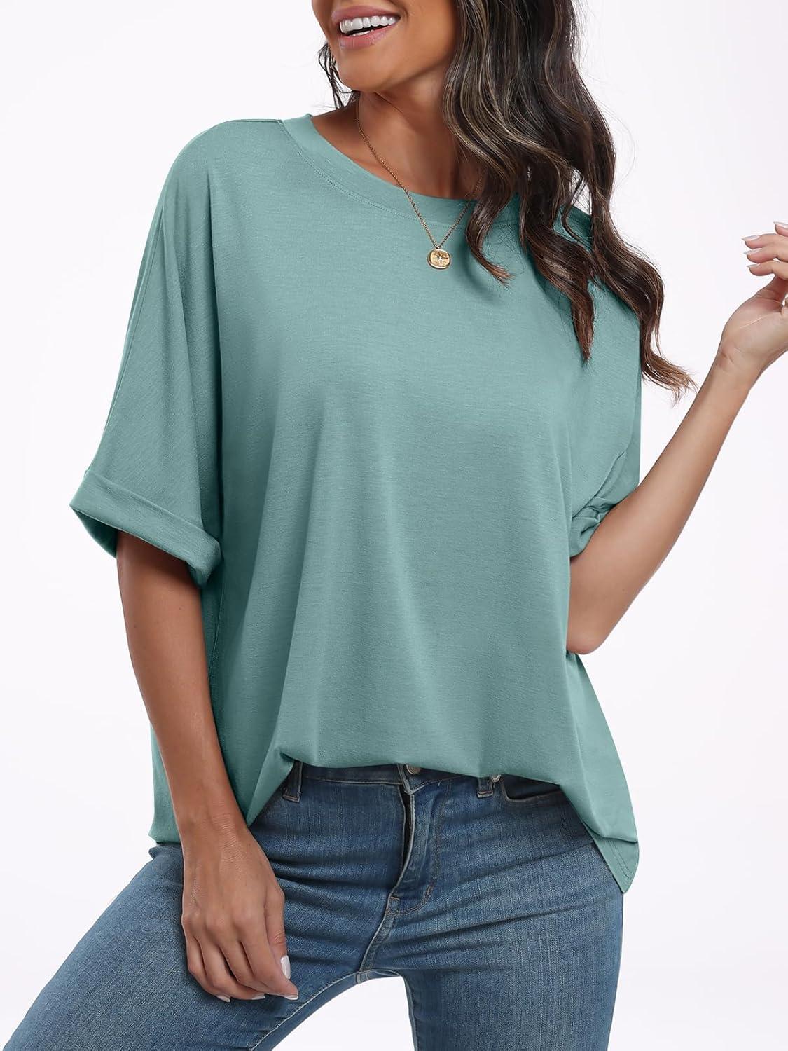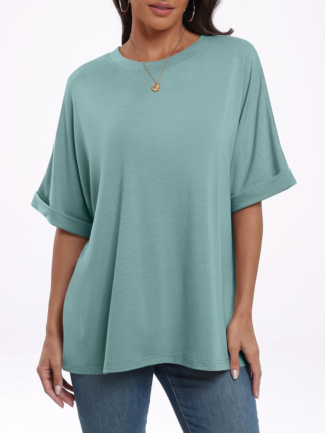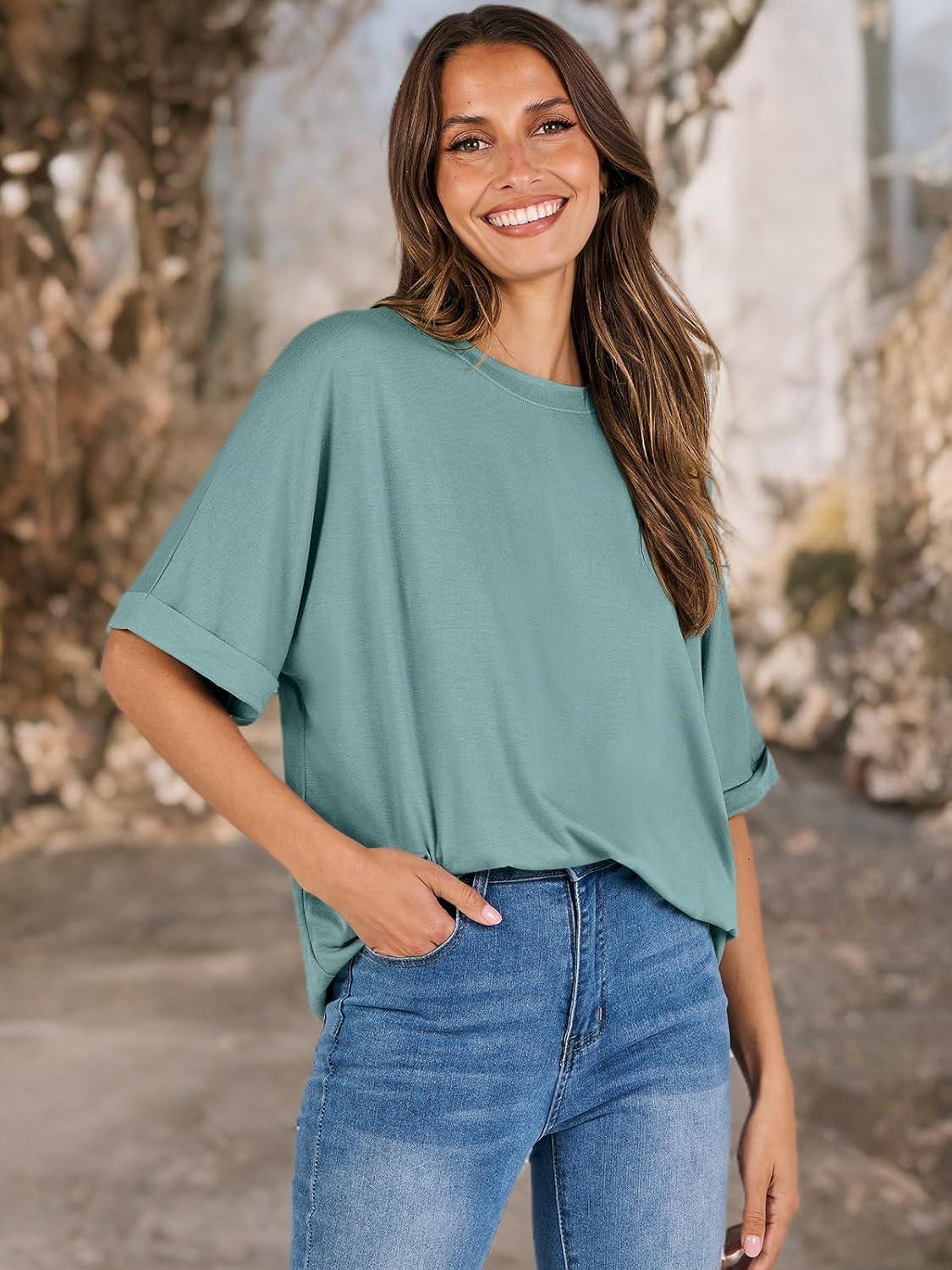 ANRABESS Womens Tops Oversized T Shirts Short Sleeve Crewneck Summer Casual Loose Basic Tee Shirt 2025 Trendy Fashion Clothes(Cadet Blue)
