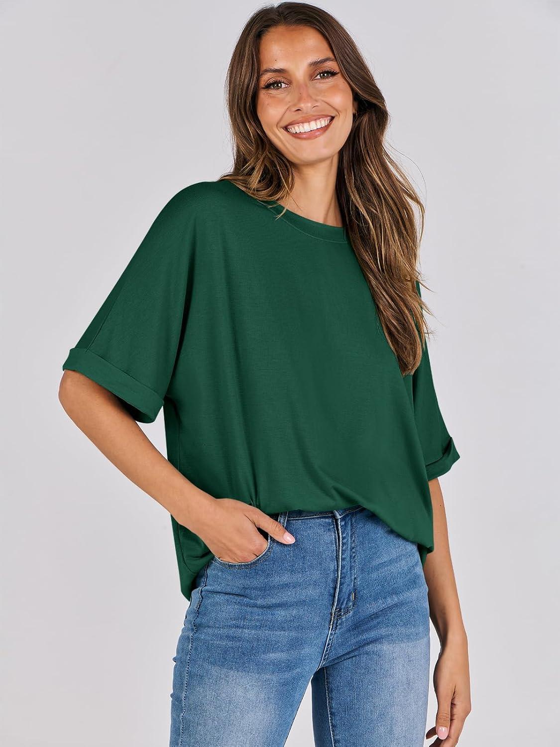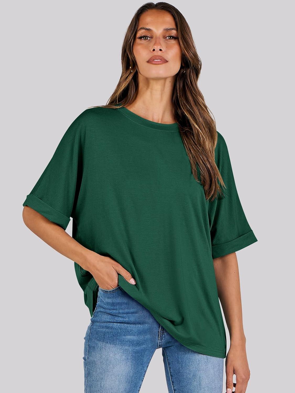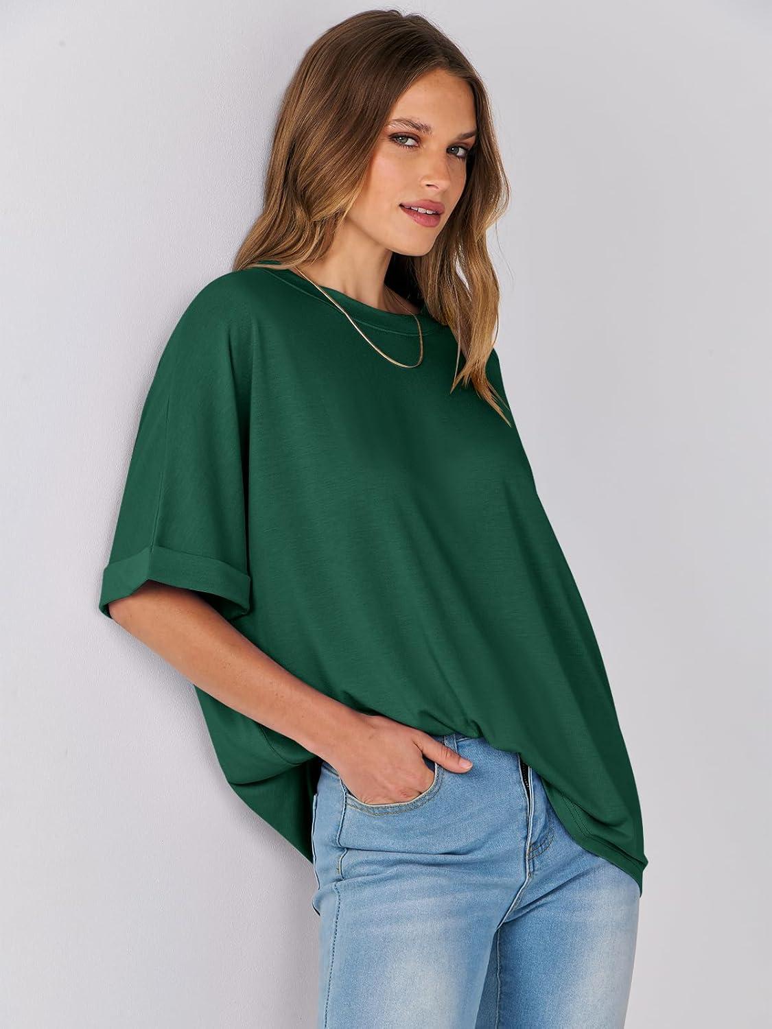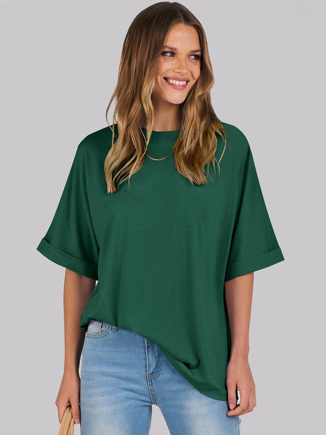 ANRABESS Womens Tops Oversized T Shirts Short Sleeve Crewneck Summer Casual Loose Basic Tee Shirt 2025 Trendy Fashion Clothes(Dark Green)