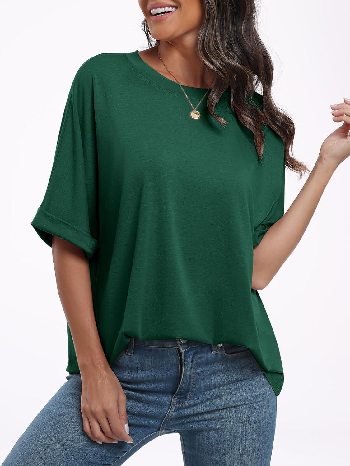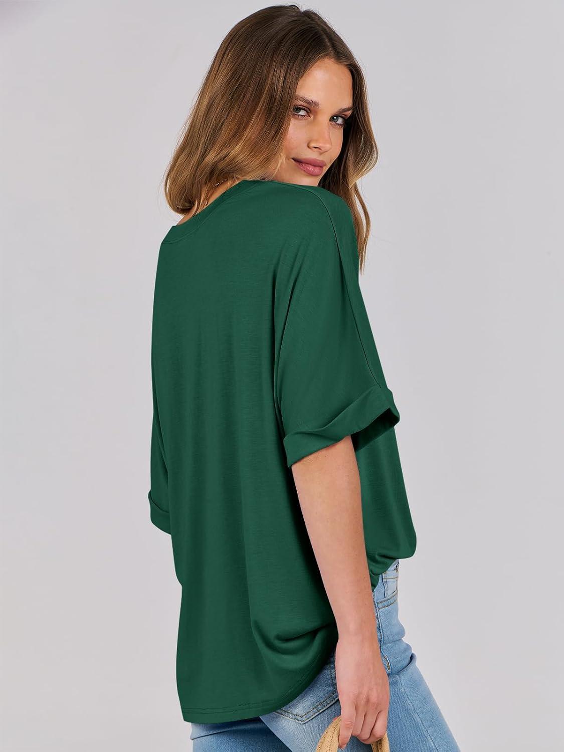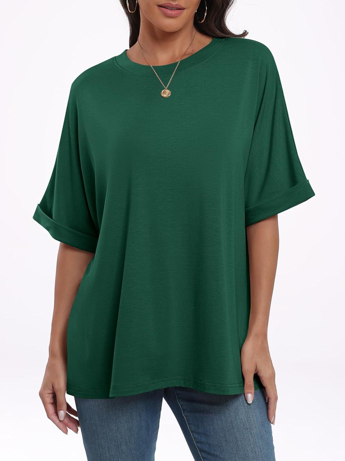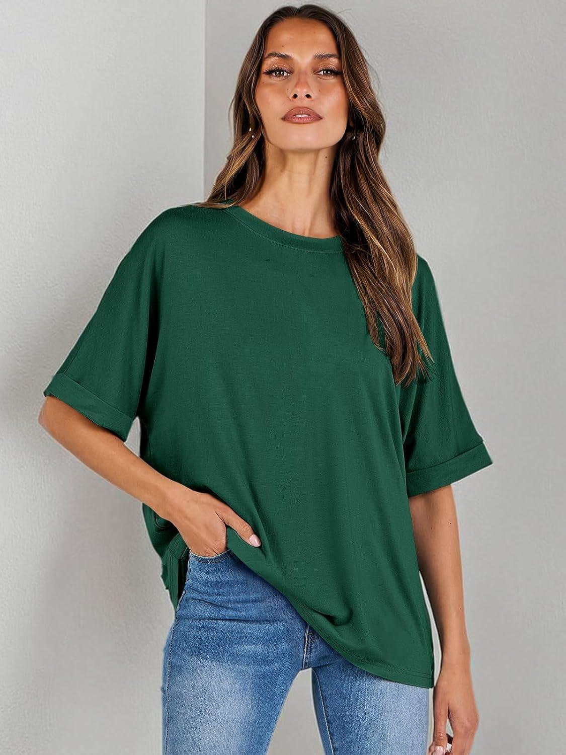 ANRABESS Womens Tops Oversized T Shirts Short Sleeve Crewneck Summer Casual Loose Basic Tee Shirt 2025 Trendy Fashion Clothes(Dark Green)