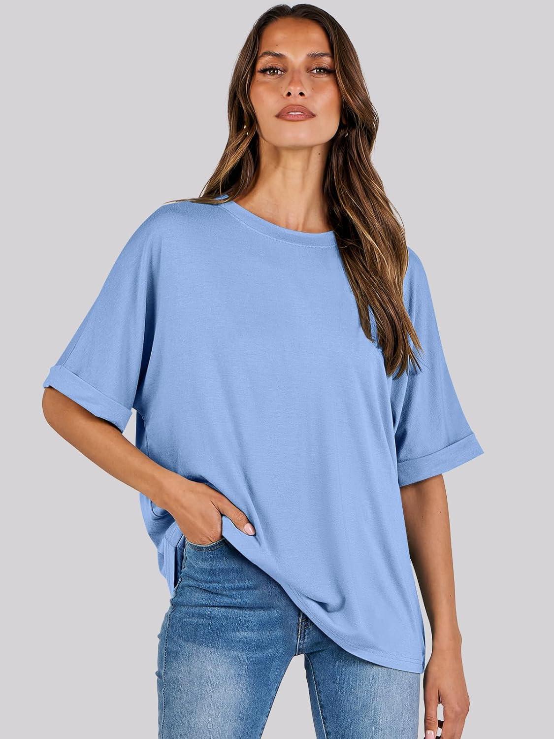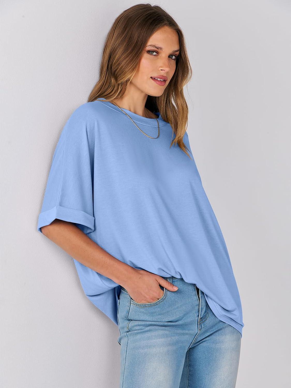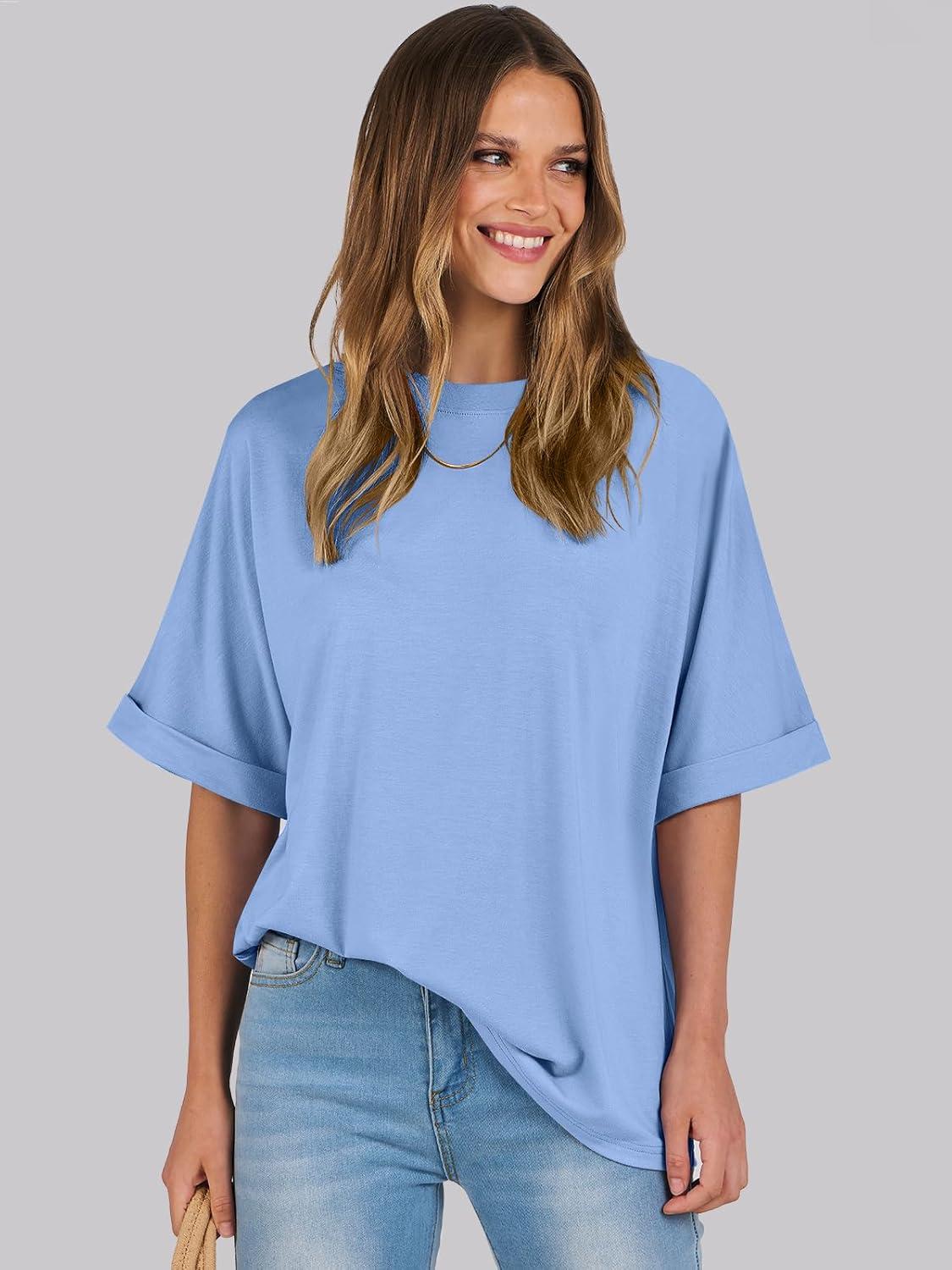 ANRABESS Womens Tops Oversized T Shirts Short Sleeve Crewneck Summer Casual Loose Basic Tee Shirt 2025 Trendy Fashion Clothes(Sky Blue)