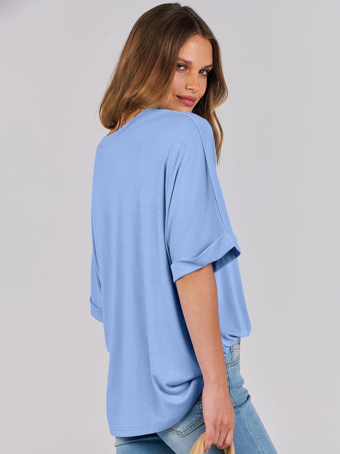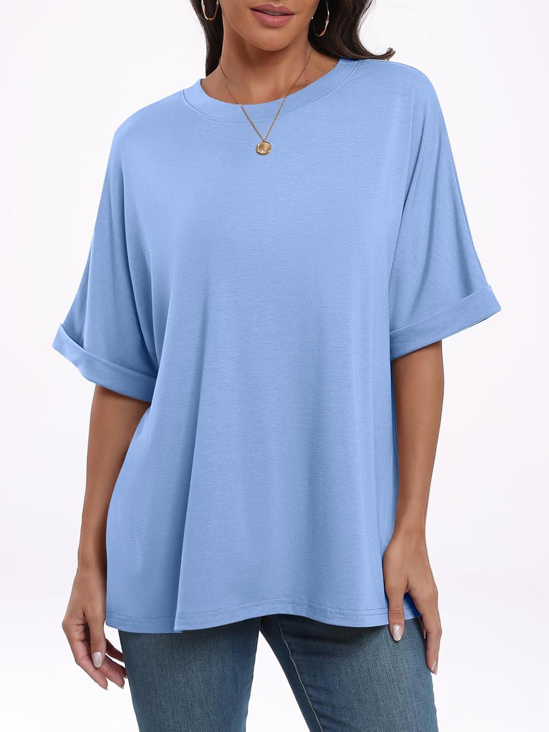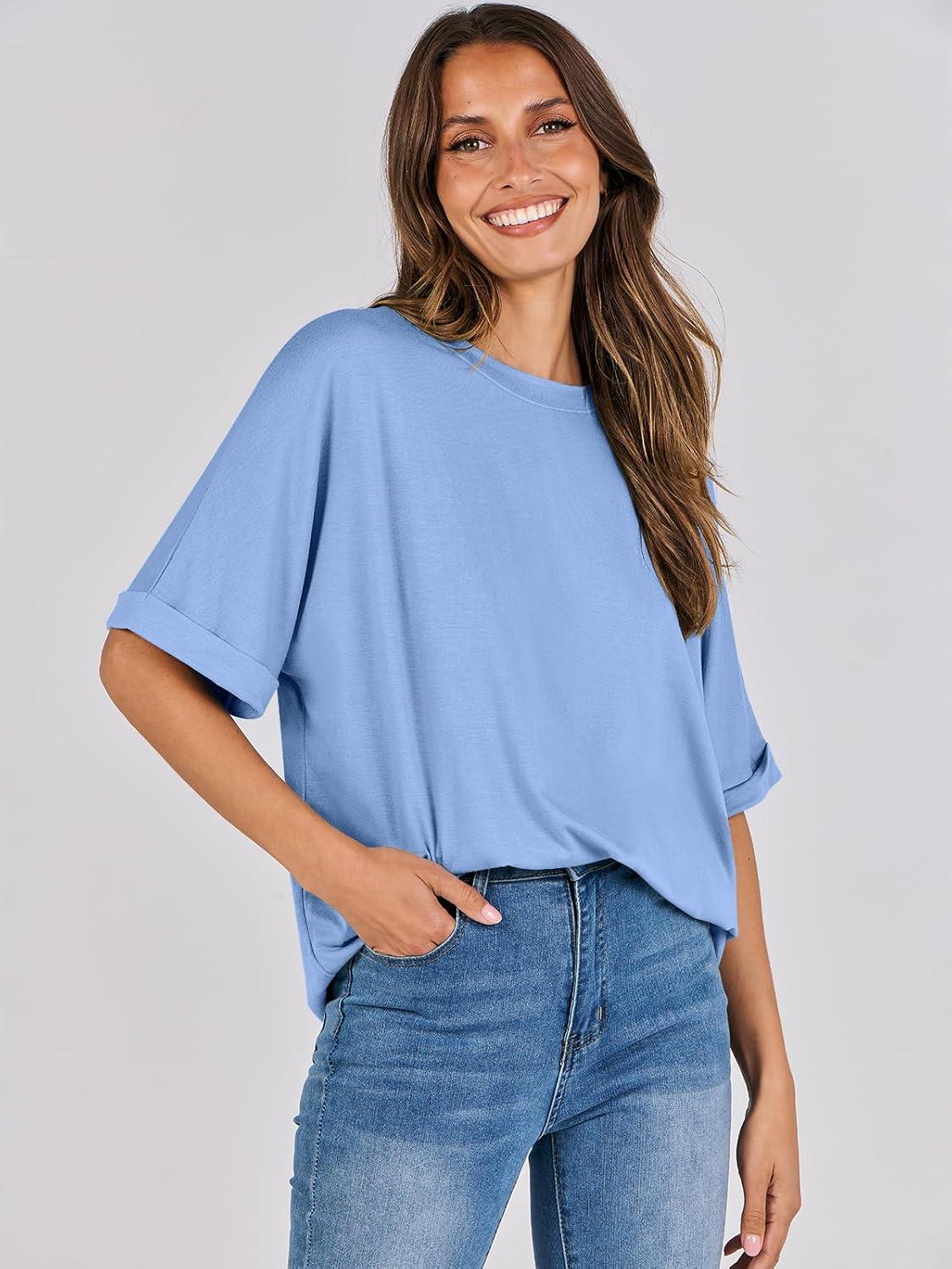 ANRABESS Womens Tops Oversized T Shirts Short Sleeve Crewneck Summer Casual Loose Basic Tee Shirt 2025 Trendy Fashion Clothes(Sky Blue)