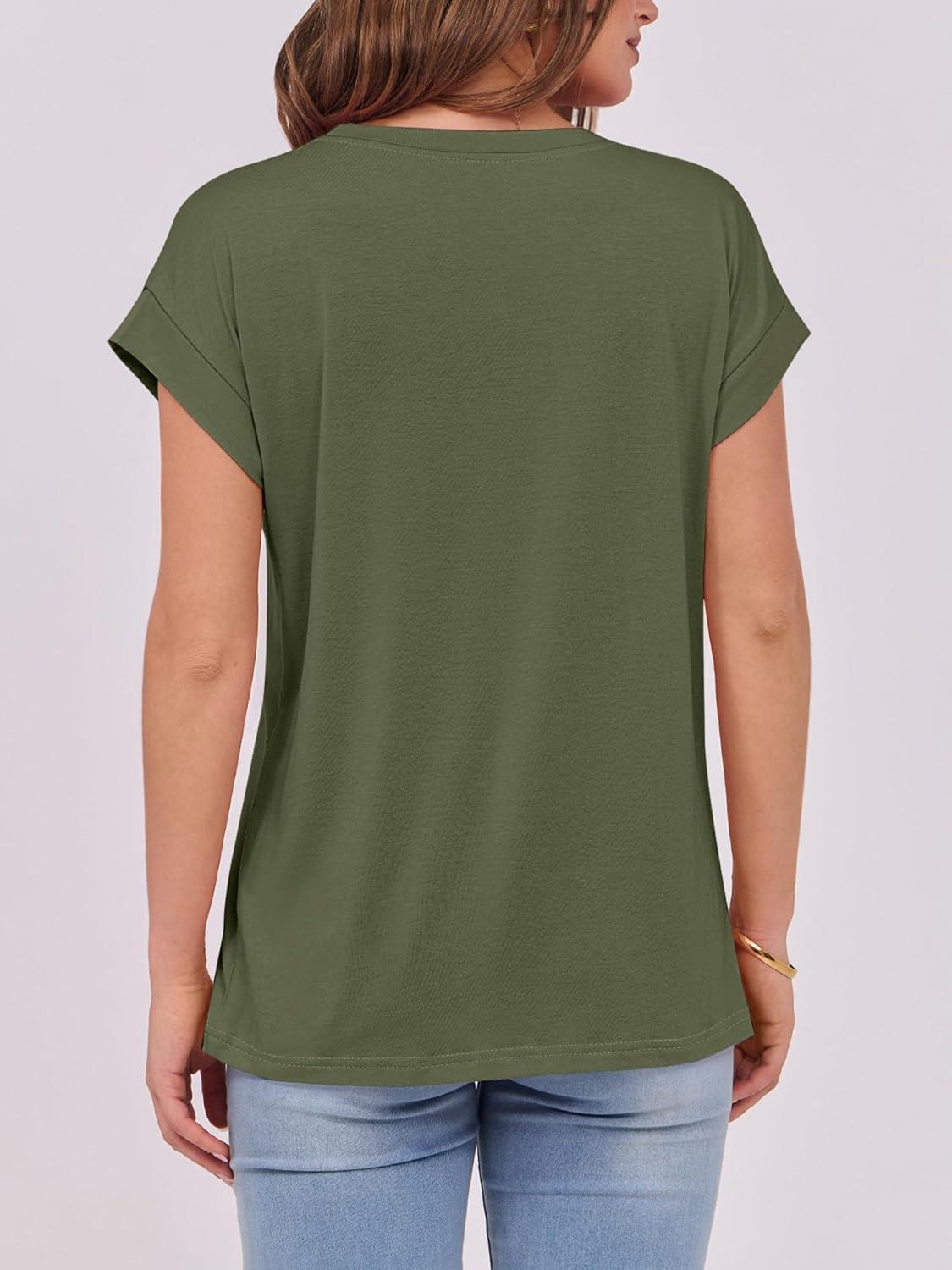 ANRABESS Womens Tops Summer Cap Sleeve Basic Tee Shirts 2025 Trendy Loose Fit Casual Dressy Business Work Tshirts Clothes(Army Green)