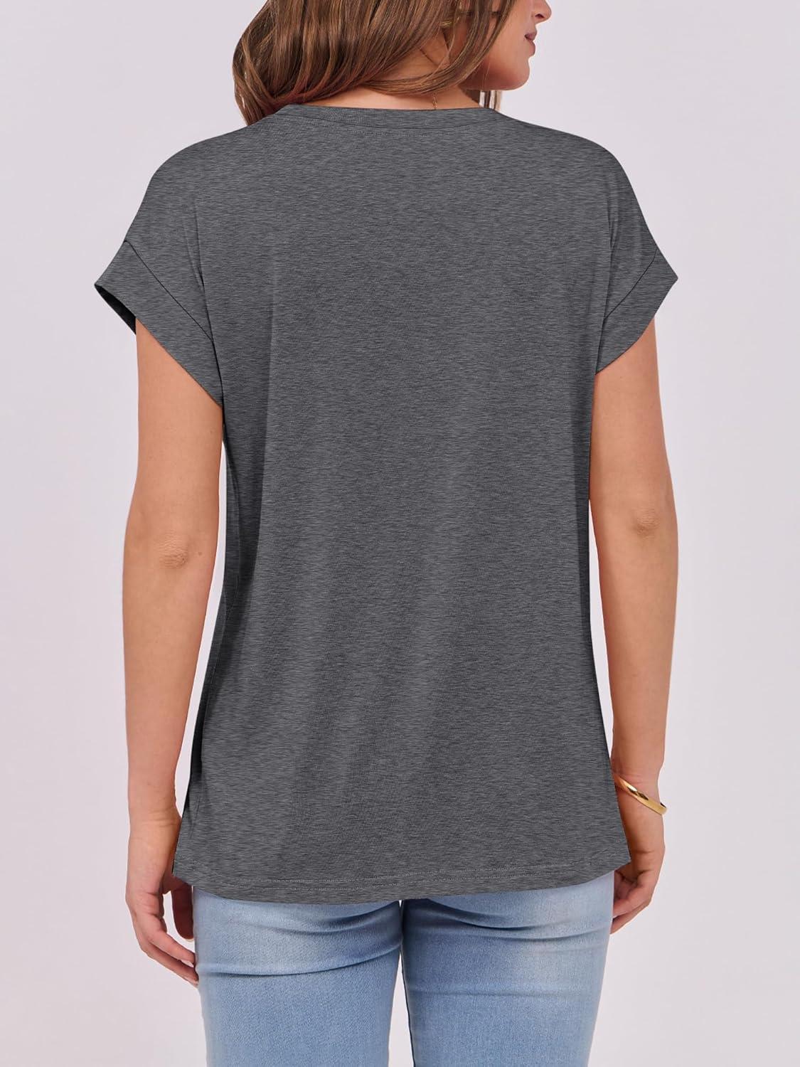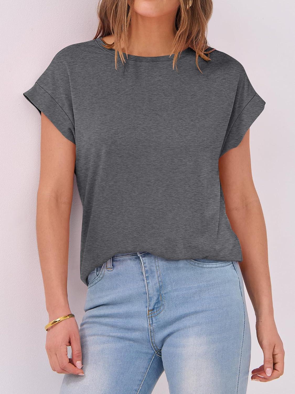 ANRABESS Womens Tops Summer Cap Sleeve Basic Tee Shirts 2025 Trendy Loose Fit Casual Dressy Business Work Tshirts Clothes(Dark Grey)