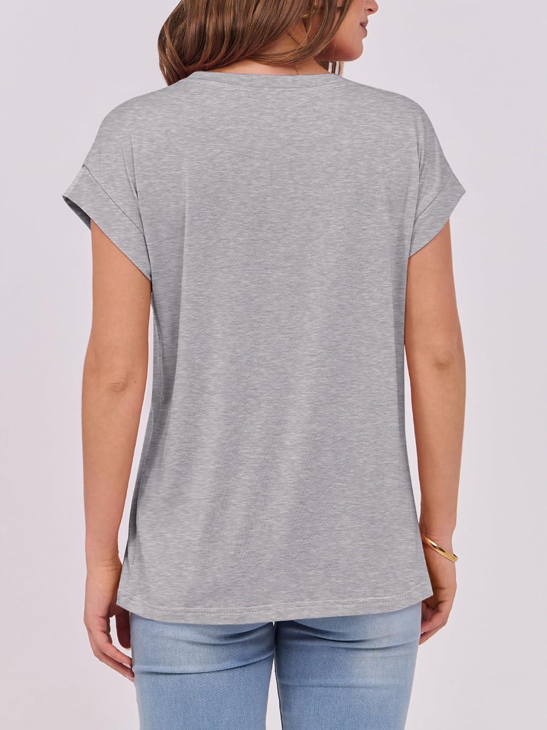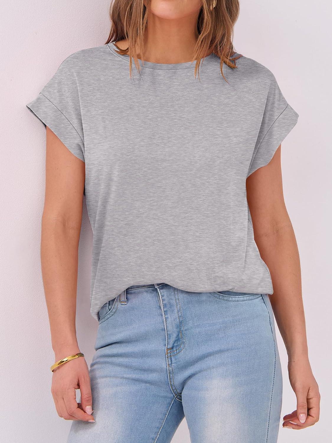 ANRABESS Womens Tops Summer Cap Sleeve Basic Tee Shirts 2025 Trendy Loose Fit Casual Dressy Business Work Tshirts Clothes(Grey)