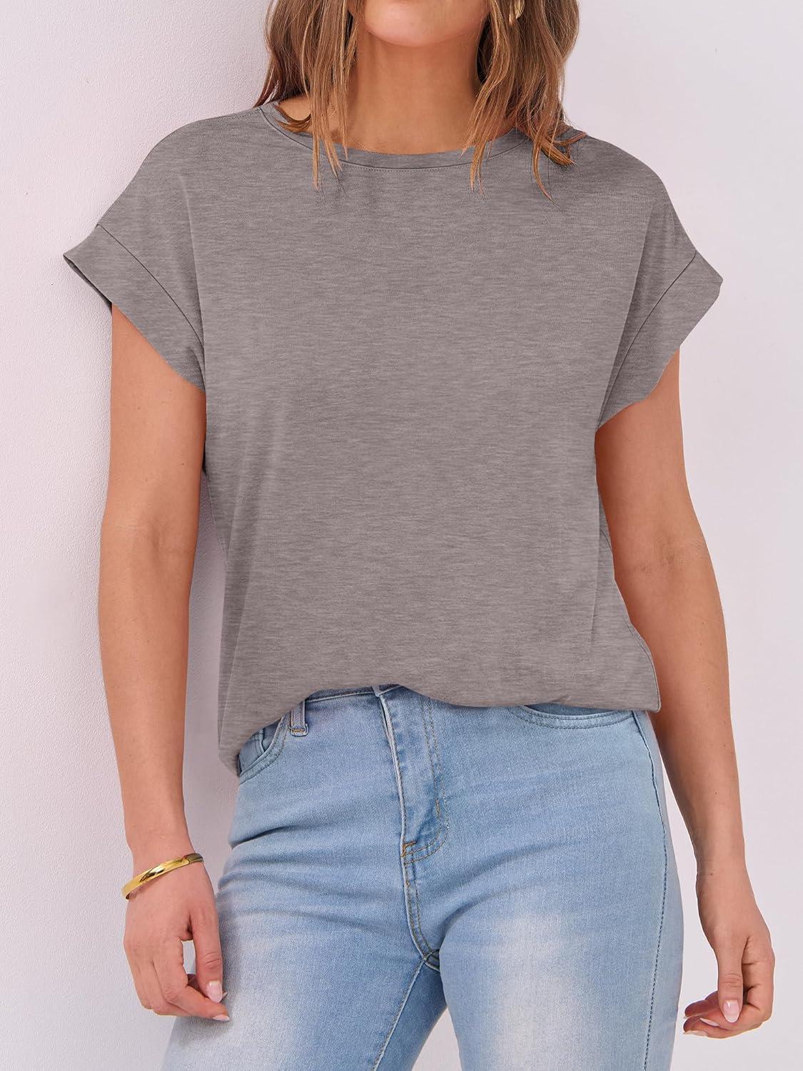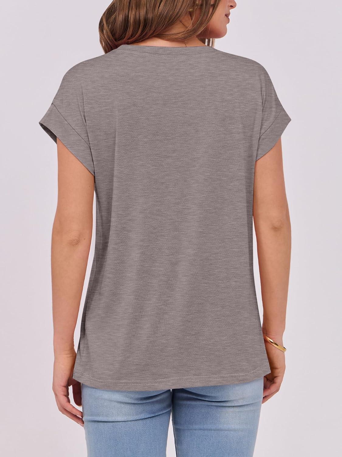 ANRABESS Womens Tops Summer Cap Sleeve Basic Tee Shirts 2025 Trendy Loose Fit Casual Dressy Business Work Tshirts Clothes(Greyish Brown)