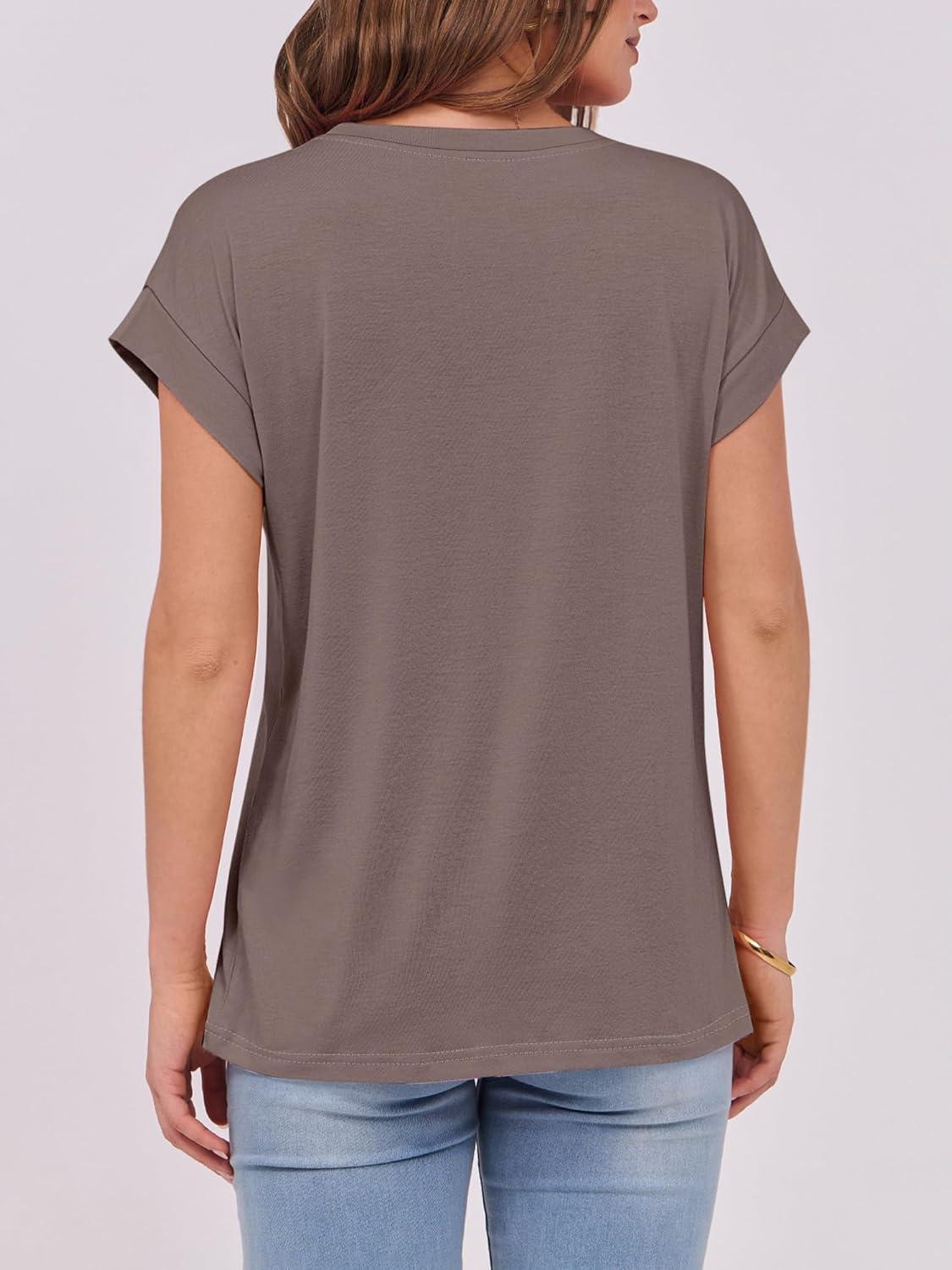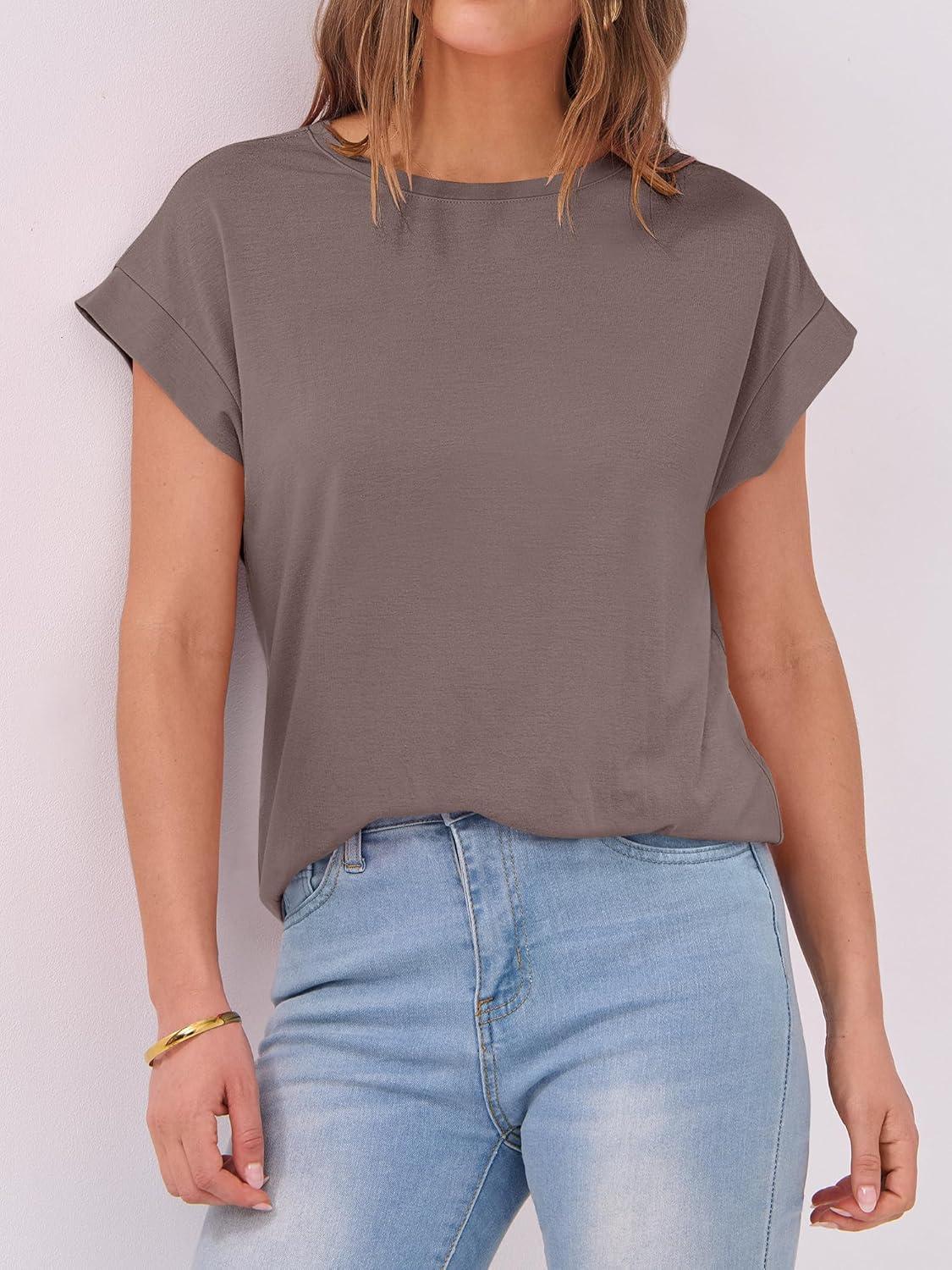 ANRABESS Womens Tops Summer Cap Sleeve Basic Tee Shirts 2025 Trendy Loose Fit Casual Dressy Business Work Tshirts Clothes(Light Brown)