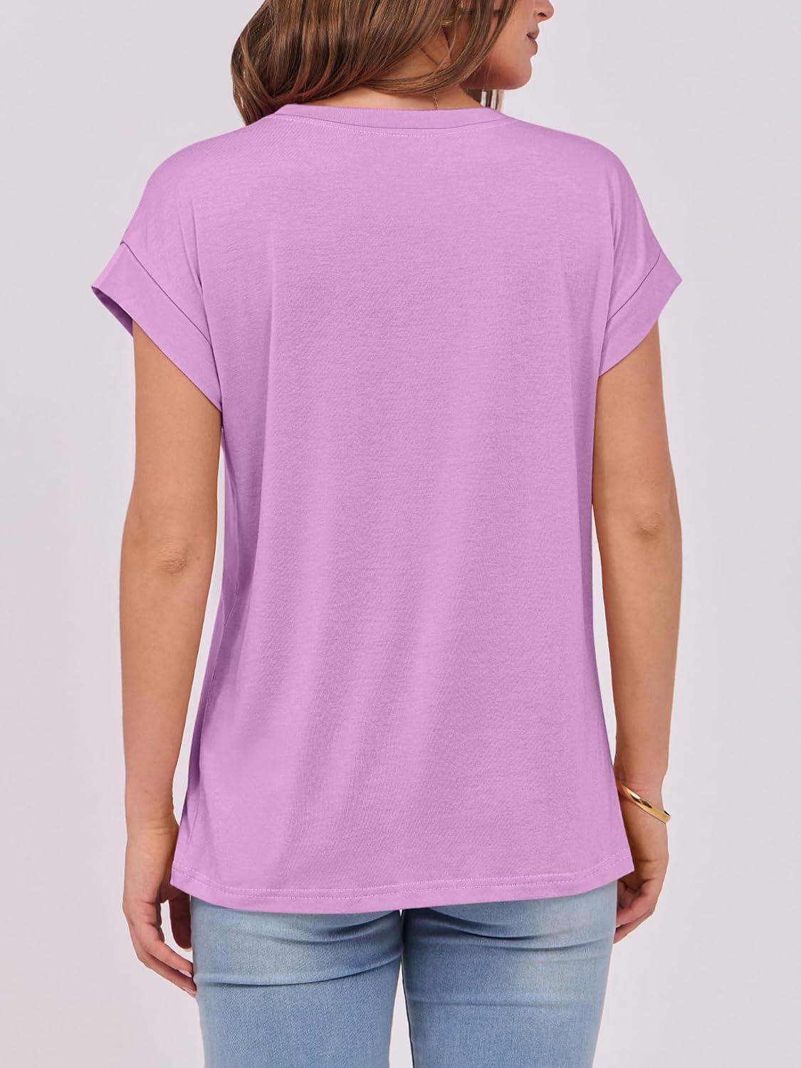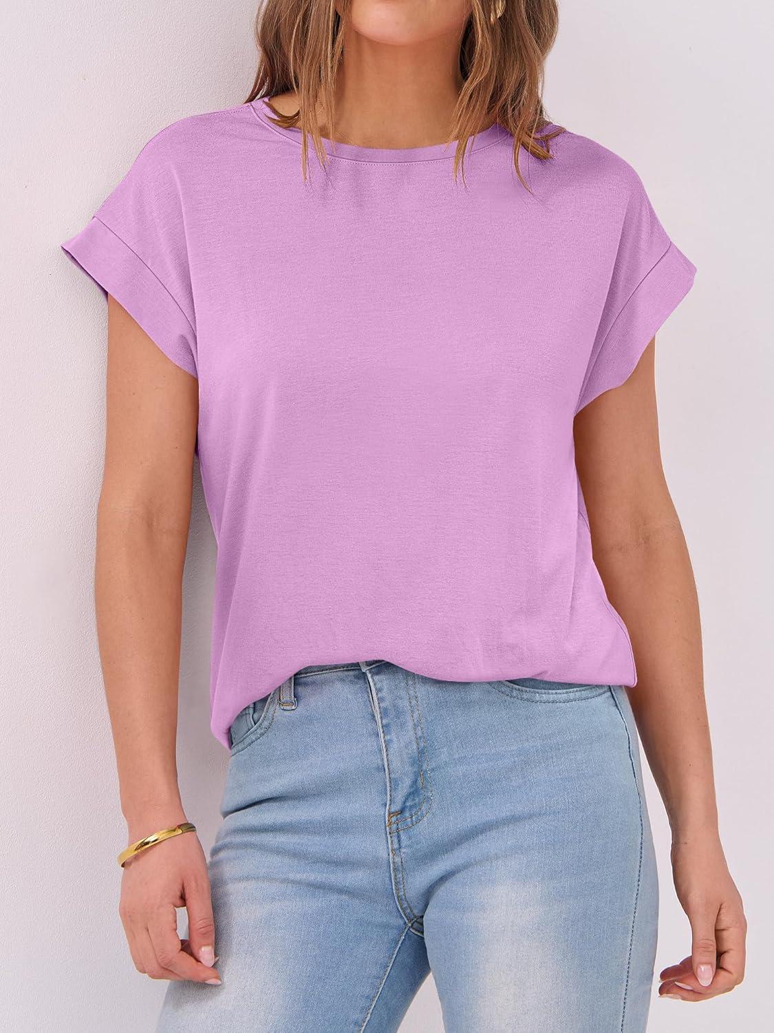 ANRABESS Womens Tops Summer Cap Sleeve Basic Tee Shirts 2025 Trendy Loose Fit Casual Dressy Business Work Tshirts Clothes(Lilac)