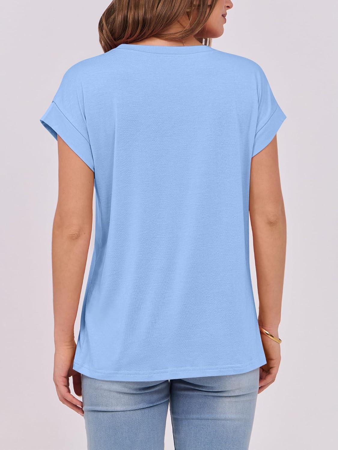 ANRABESS Womens Tops Summer Cap Sleeve Basic Tee Shirts 2025 Trendy Loose Fit Casual Dressy Business Work Tshirts Clothes(Sky Blue)