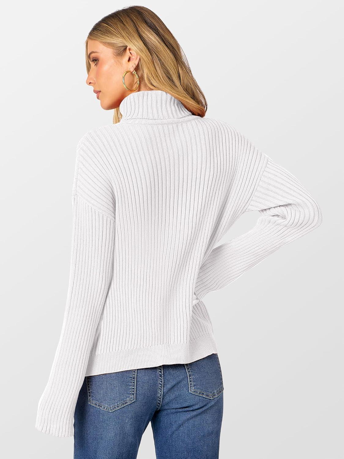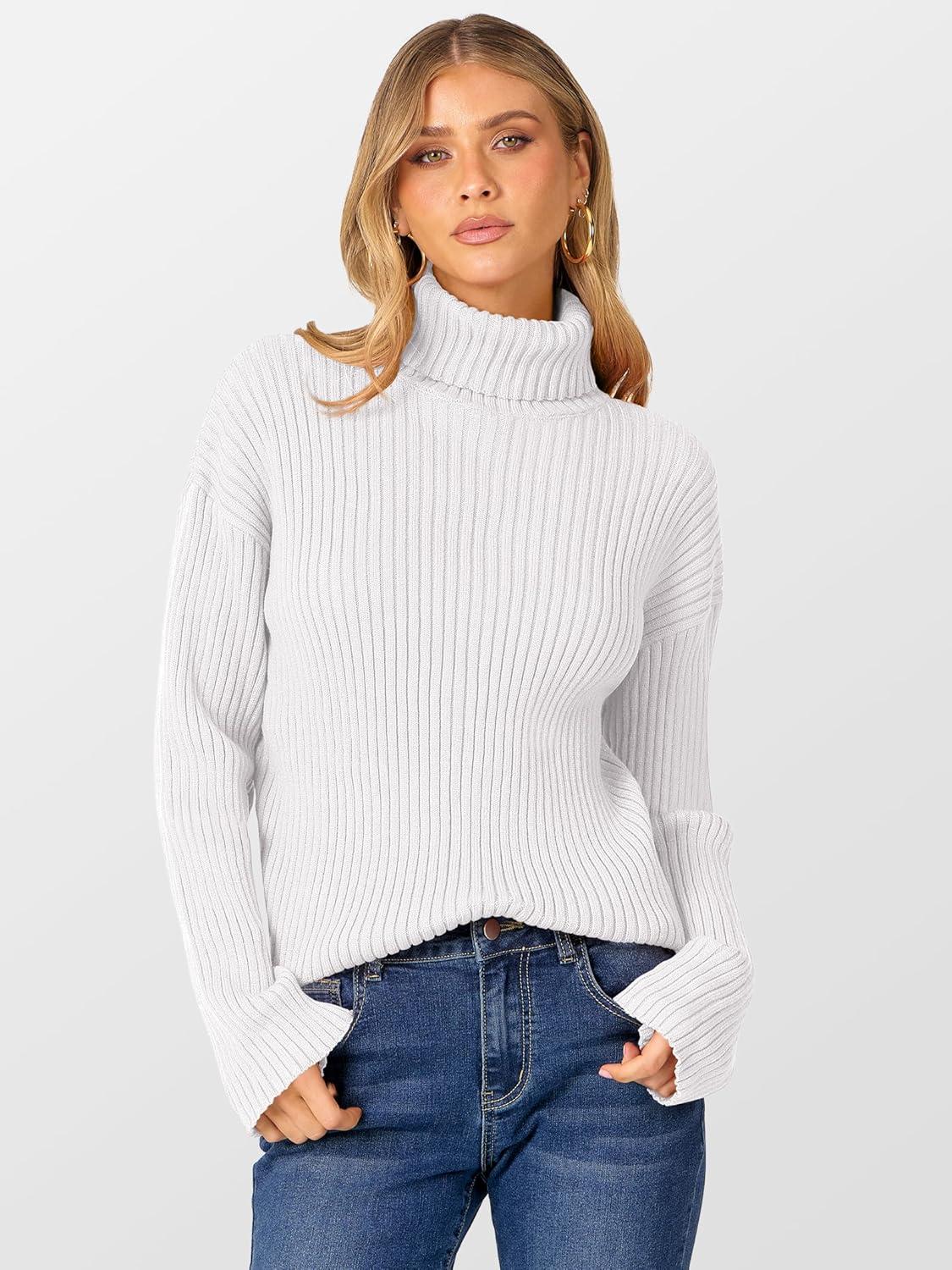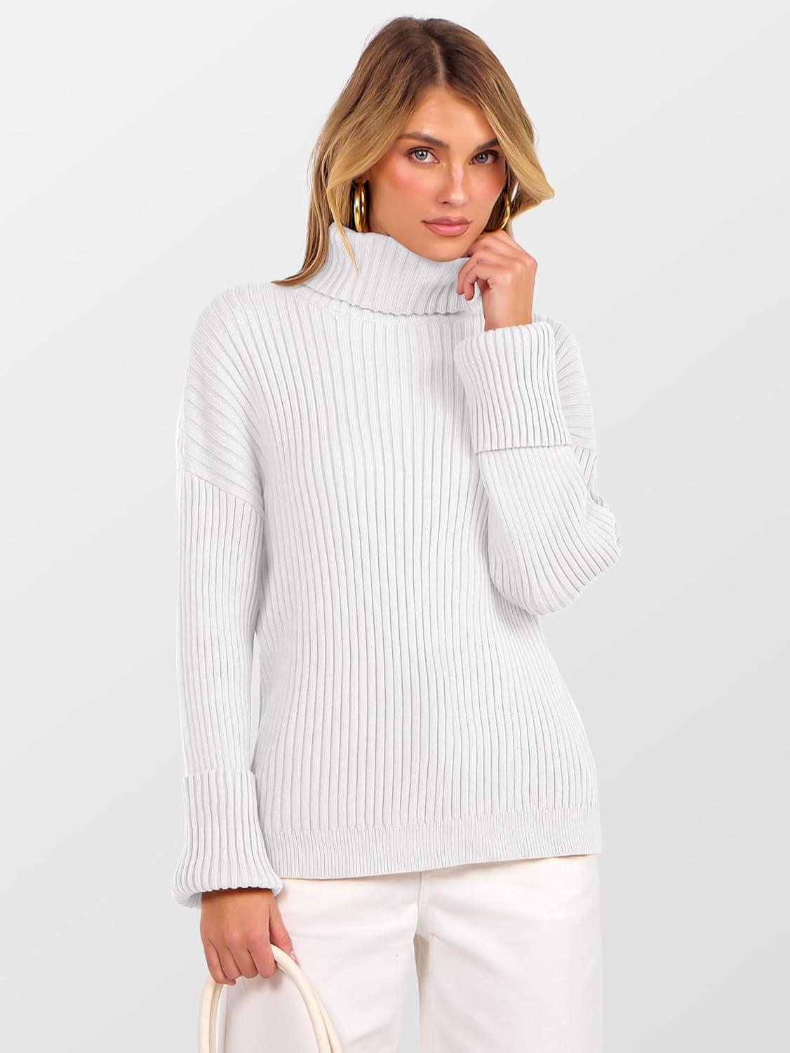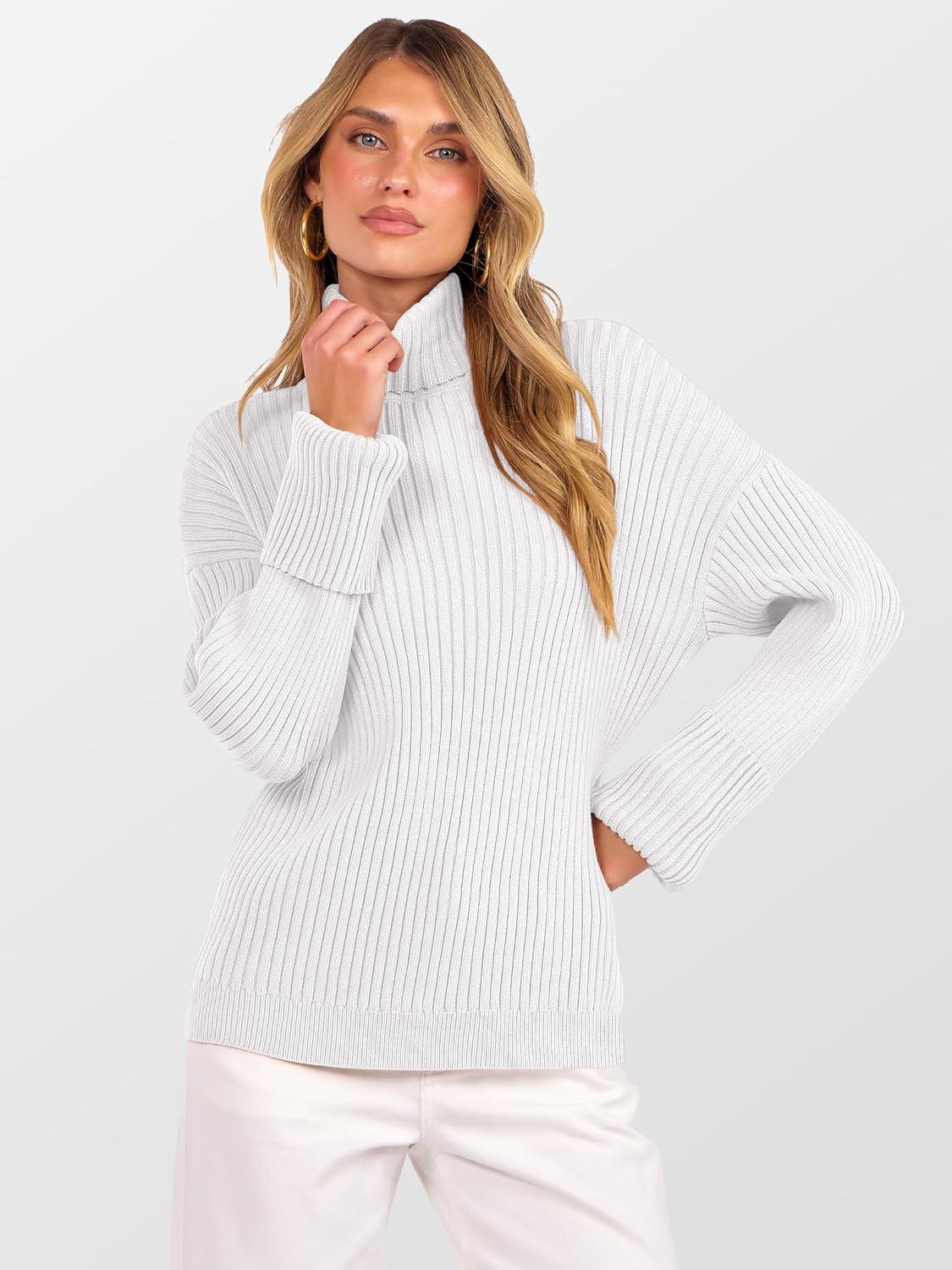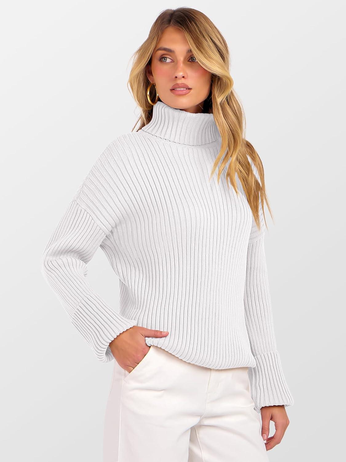 ANRABESS Womens Turtleneck Sweater 2025 Long Sleeve Ribbed Chunky Knit Fall Pullover Sweater Top(White)