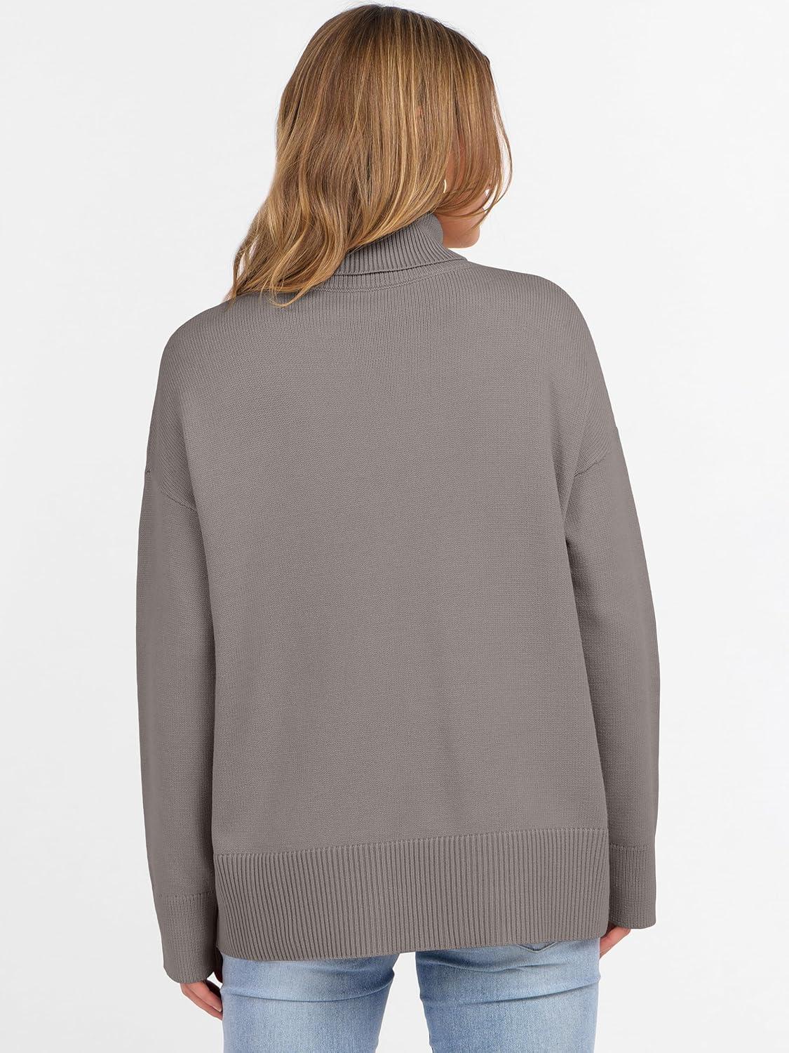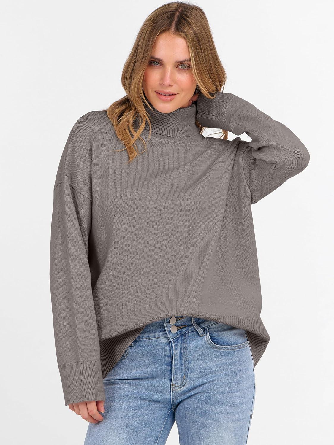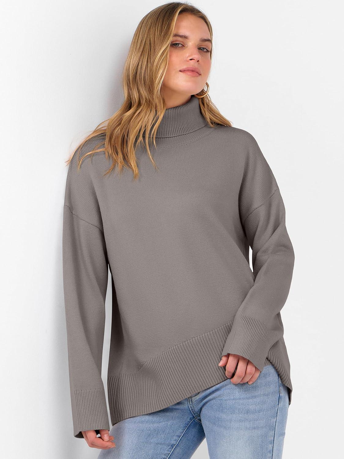 ANRABESS Womens Turtleneck Sweaters Oversized Chunky Long Sleeve Knit High Low Hem Pullover Top 2025 Fall Winter Fashion(Grey Khaki)