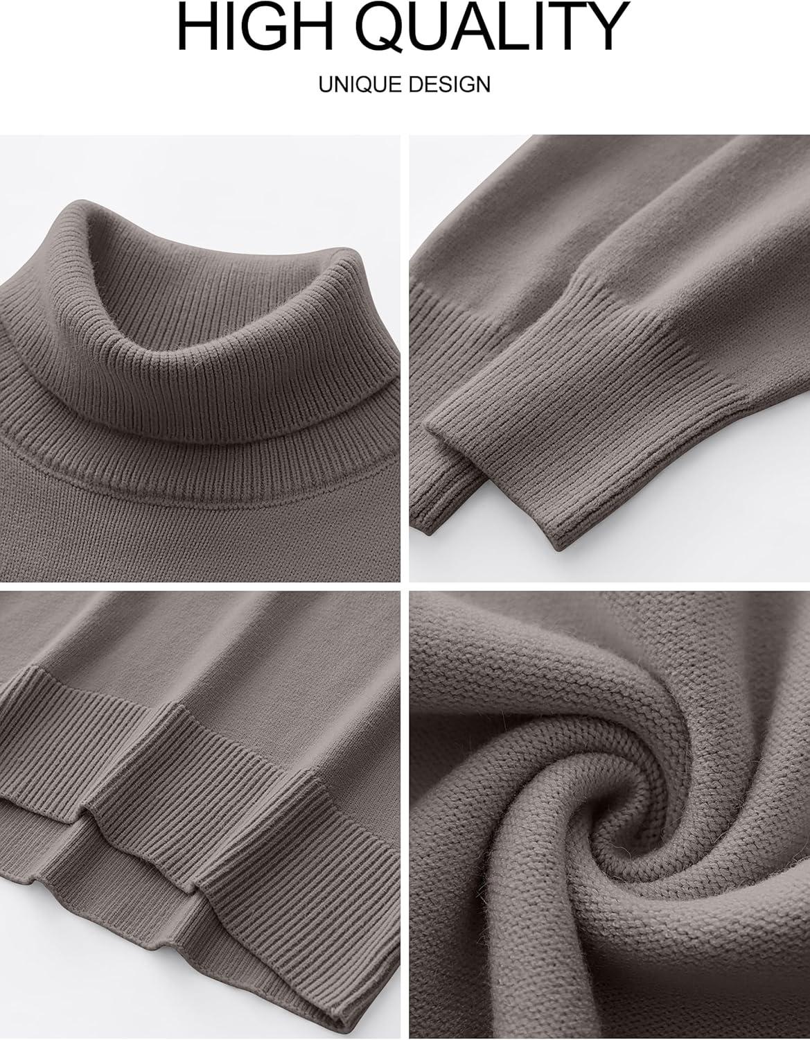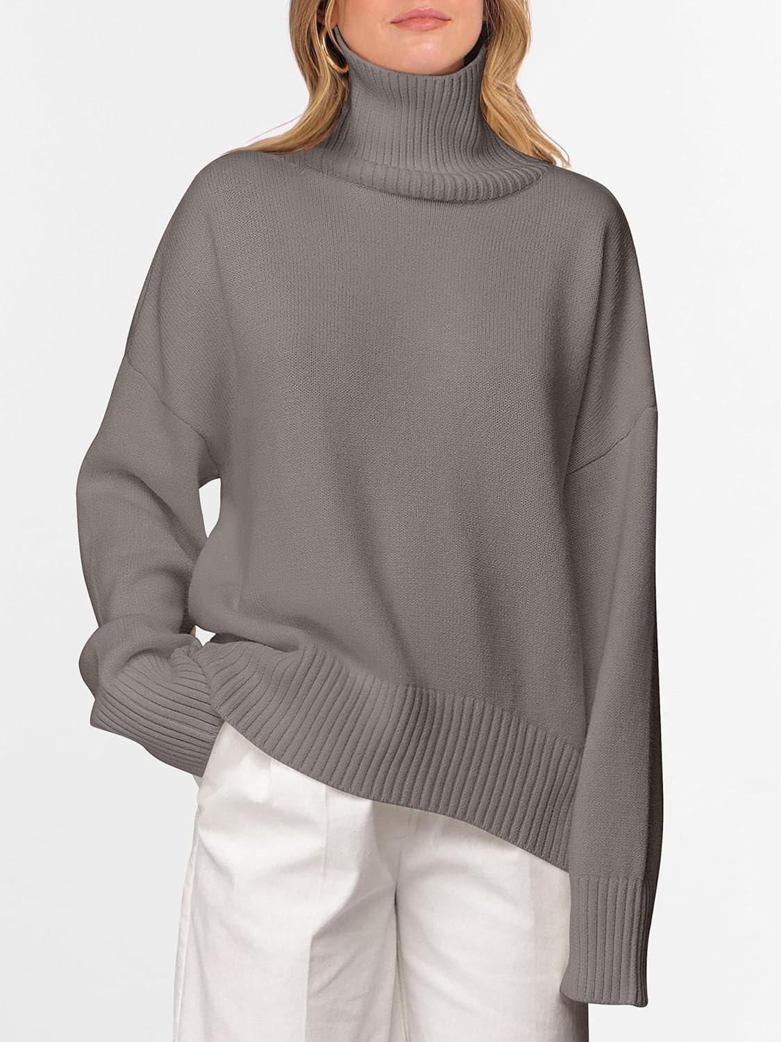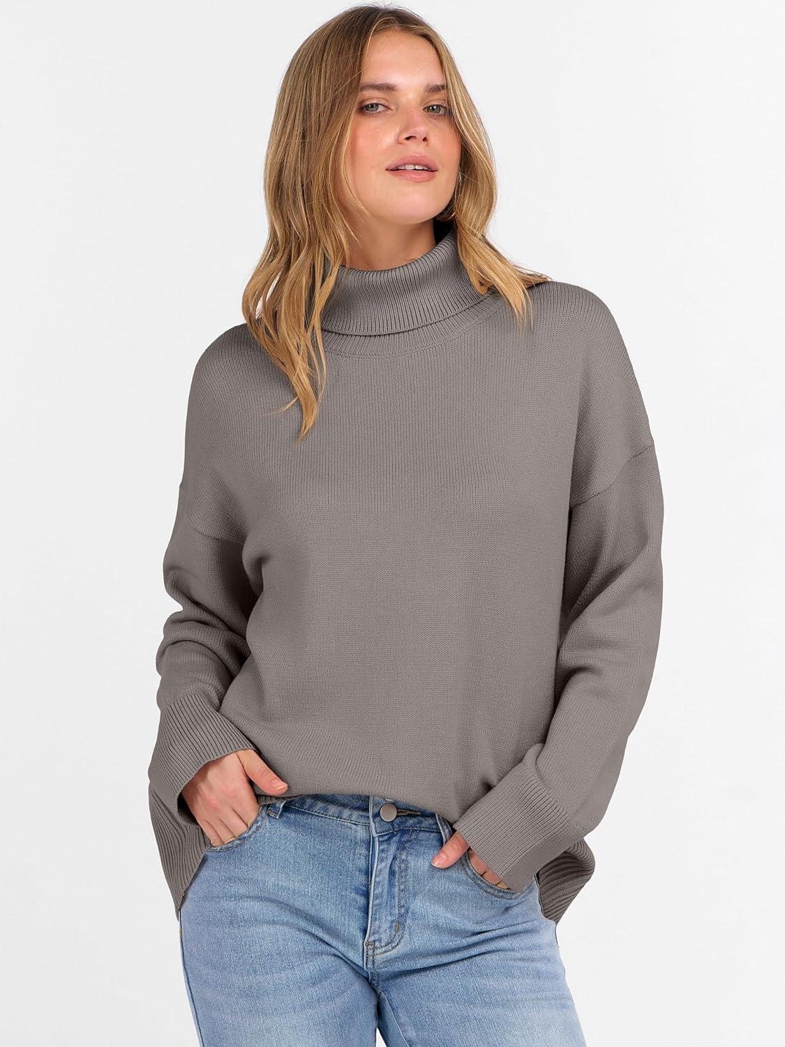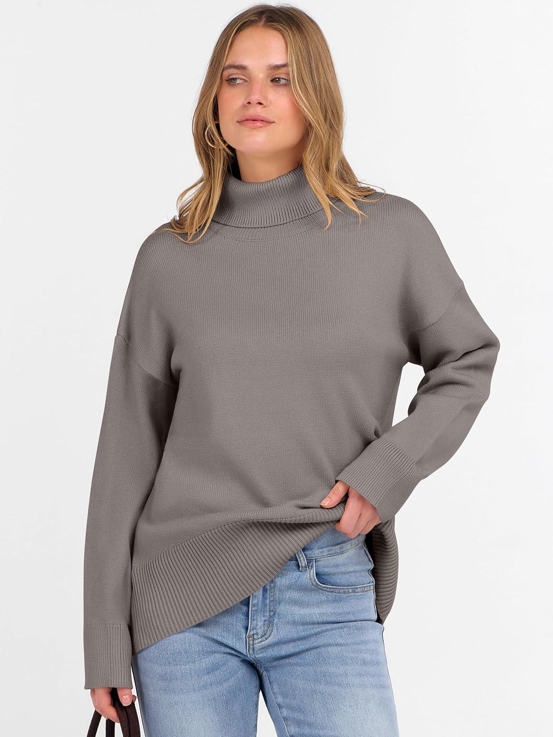 ANRABESS Womens Turtleneck Sweaters Oversized Chunky Long Sleeve Knit High Low Hem Pullover Top 2025 Fall Winter Fashion(Grey Khaki)