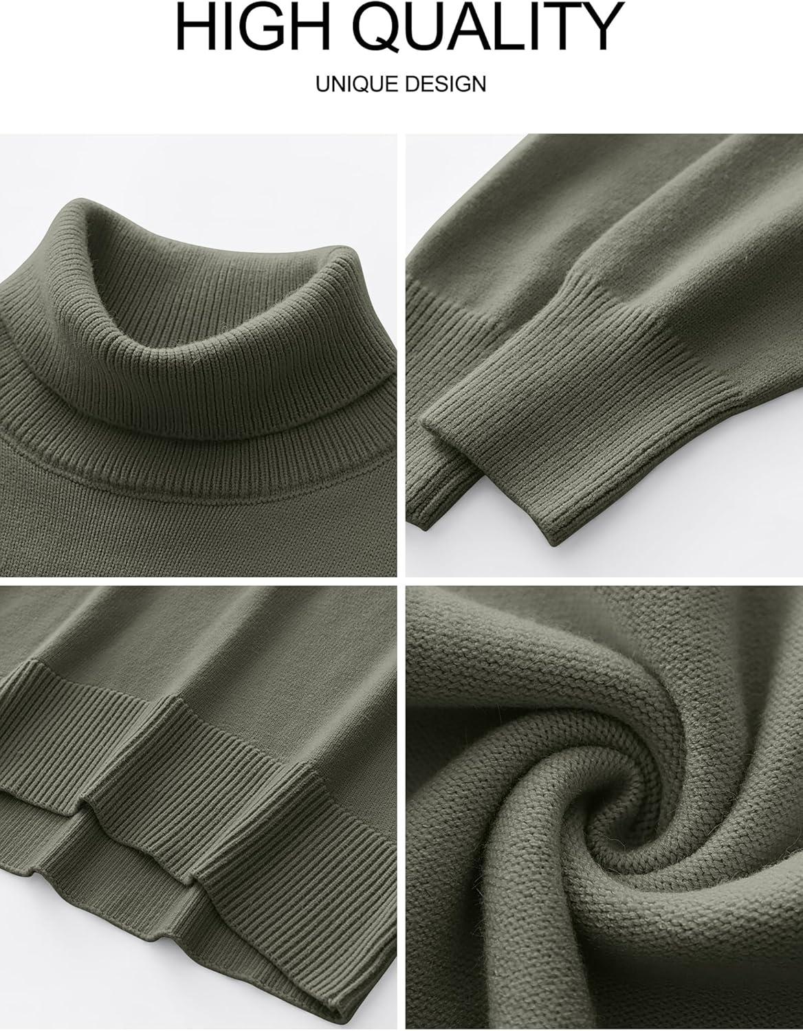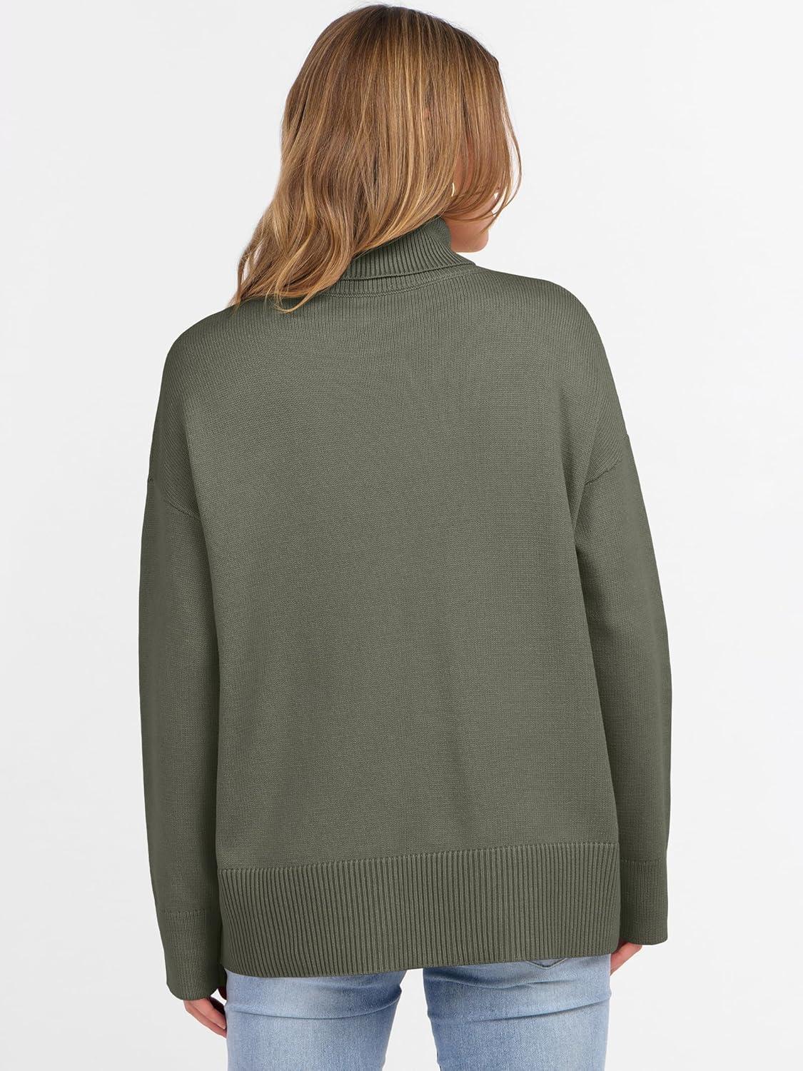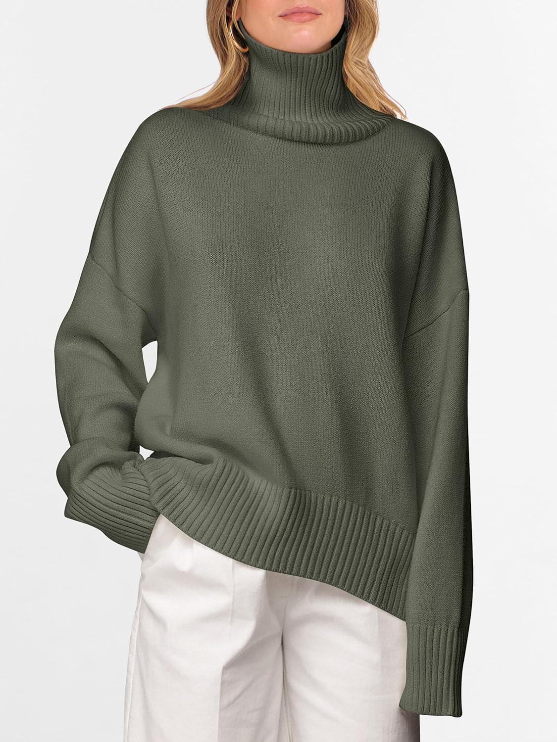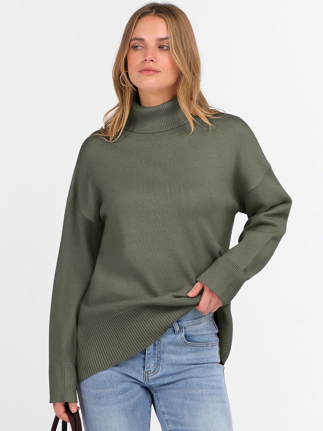 ANRABESS Womens Turtleneck Sweaters Oversized Chunky Long Sleeve Knit High Low Hem Pullover Top 2025 Fall Winter Fashion(Olive Green)